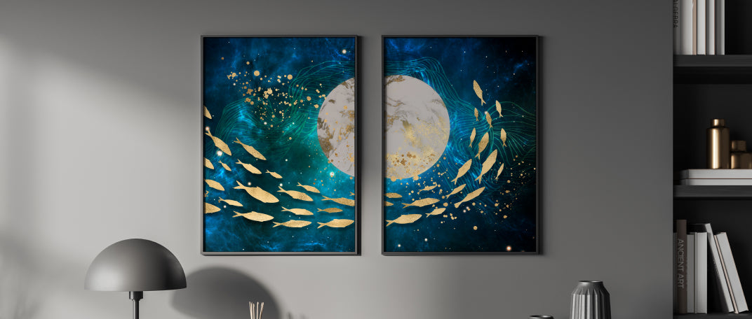 Each panel complements the other, yet they stand strong individually making this duo versatile for creative placements. It’s ideal for those who appreciate artistic expression with a touch of cosmic elegance. Let your walls speak the language of the stars and elevate your space with this luxurious and contemporary wall art set.