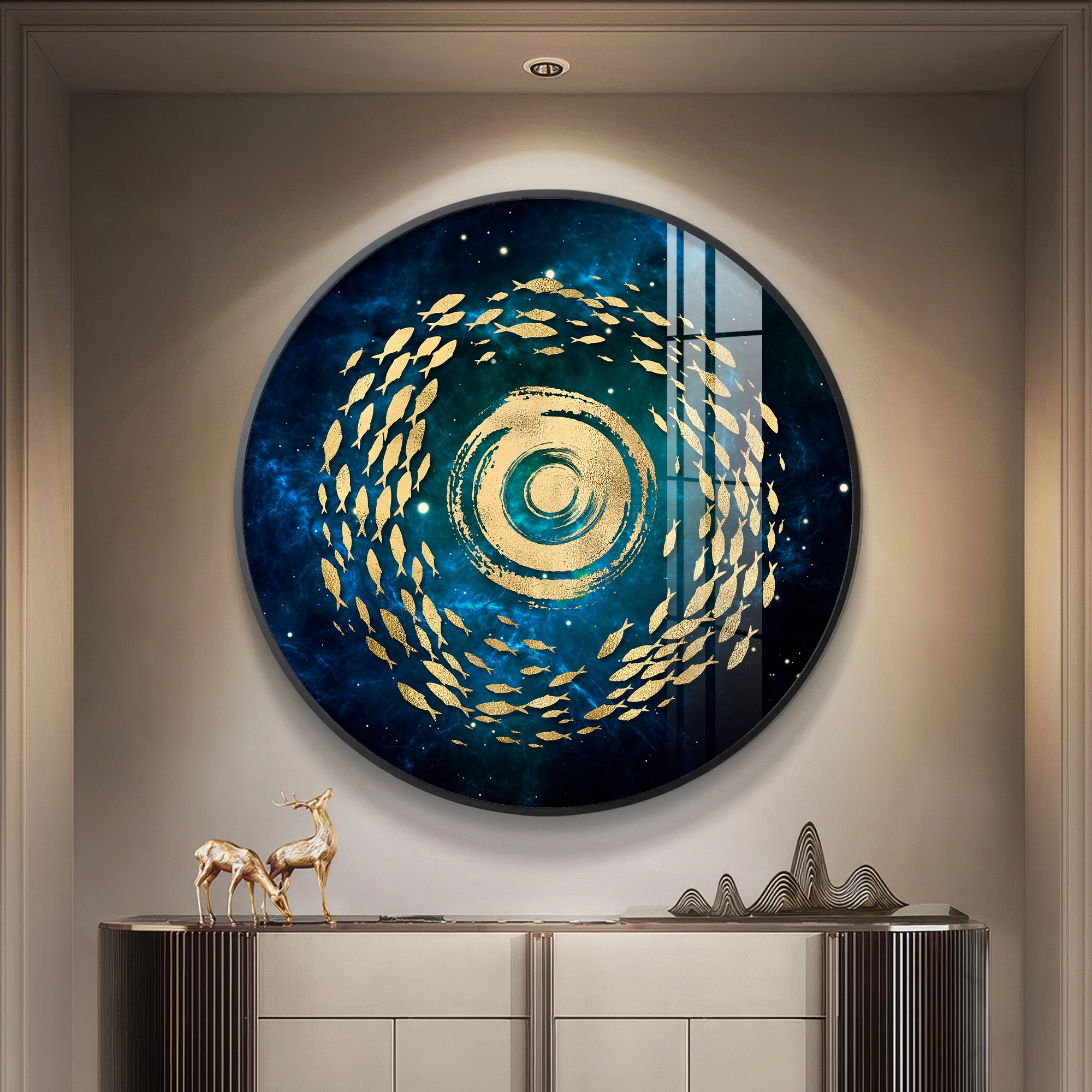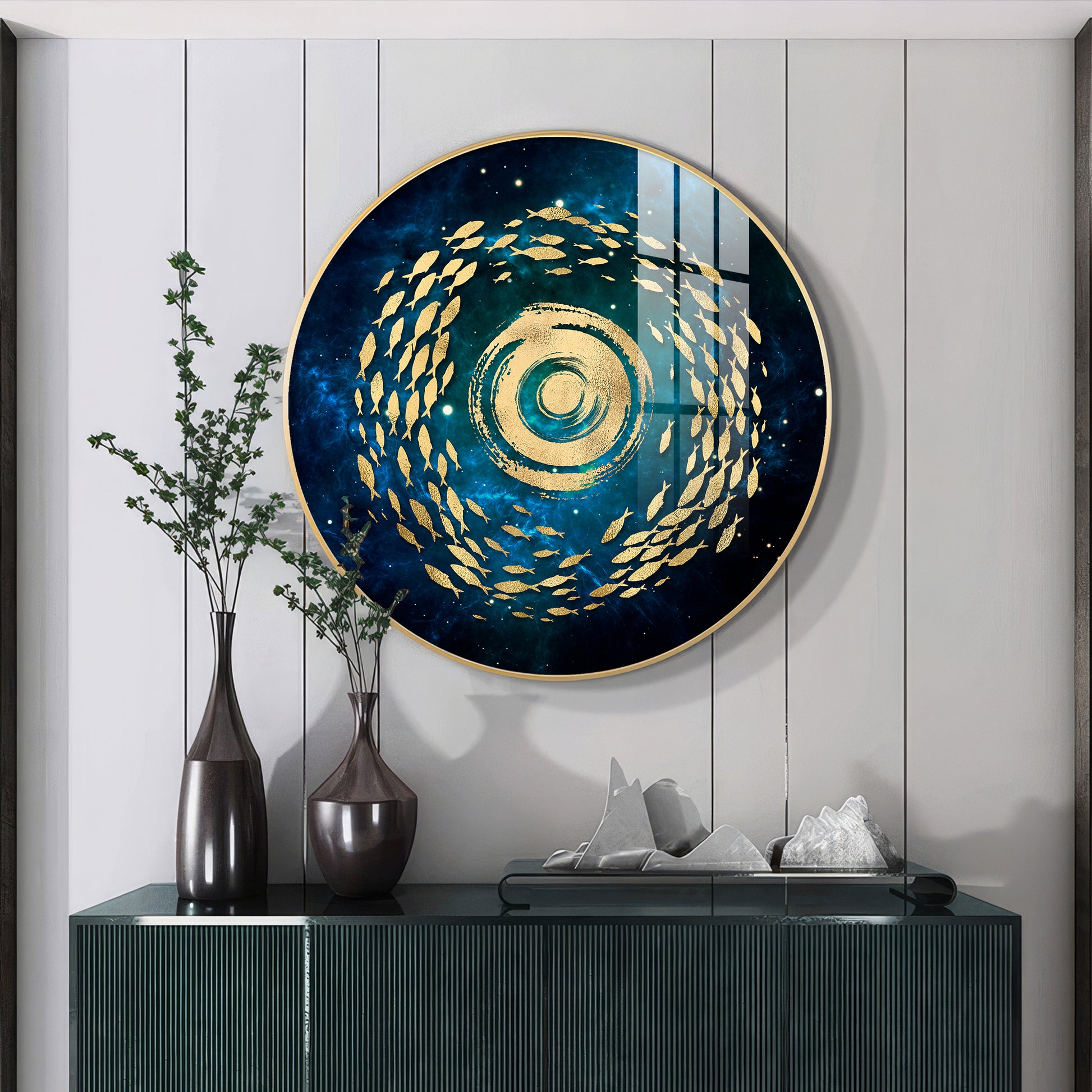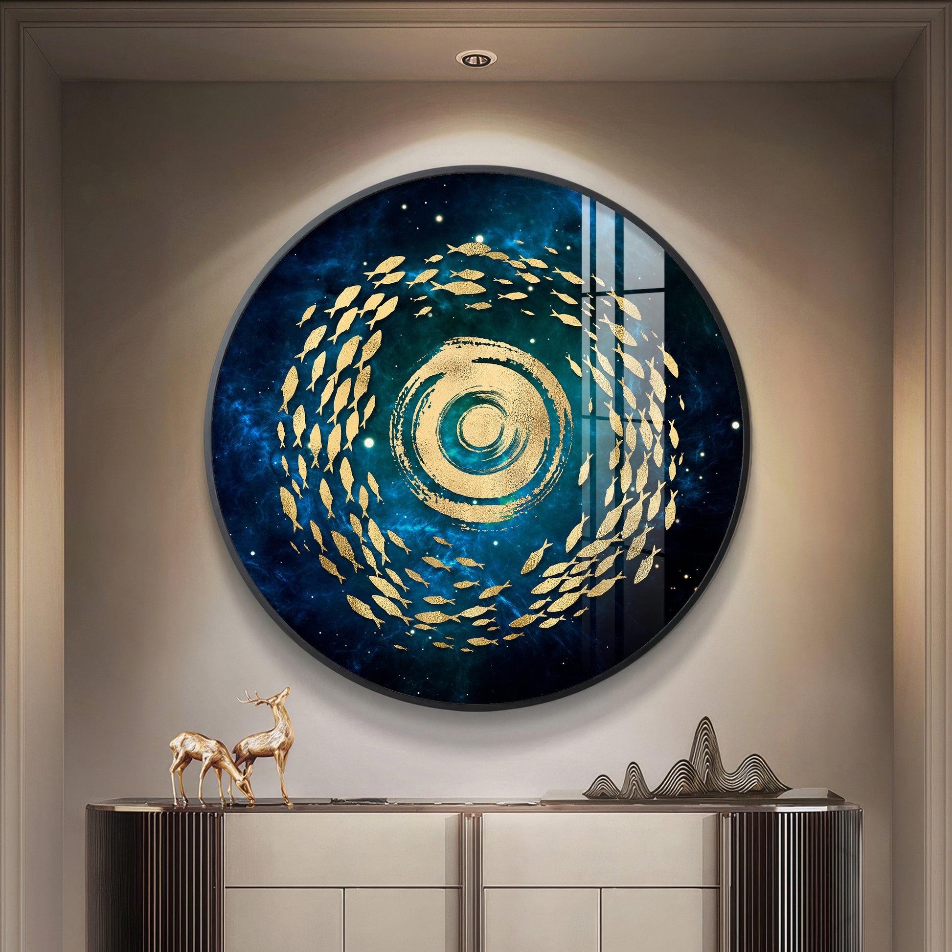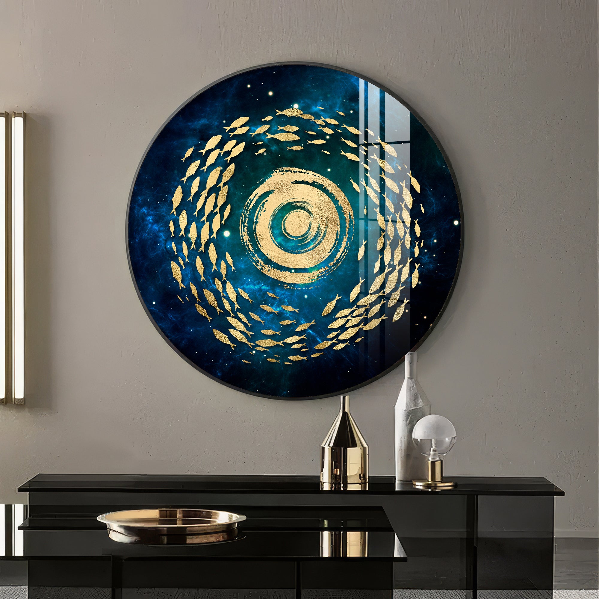 Fish Flow Mosaic Premium Acrylic Round Wall Art