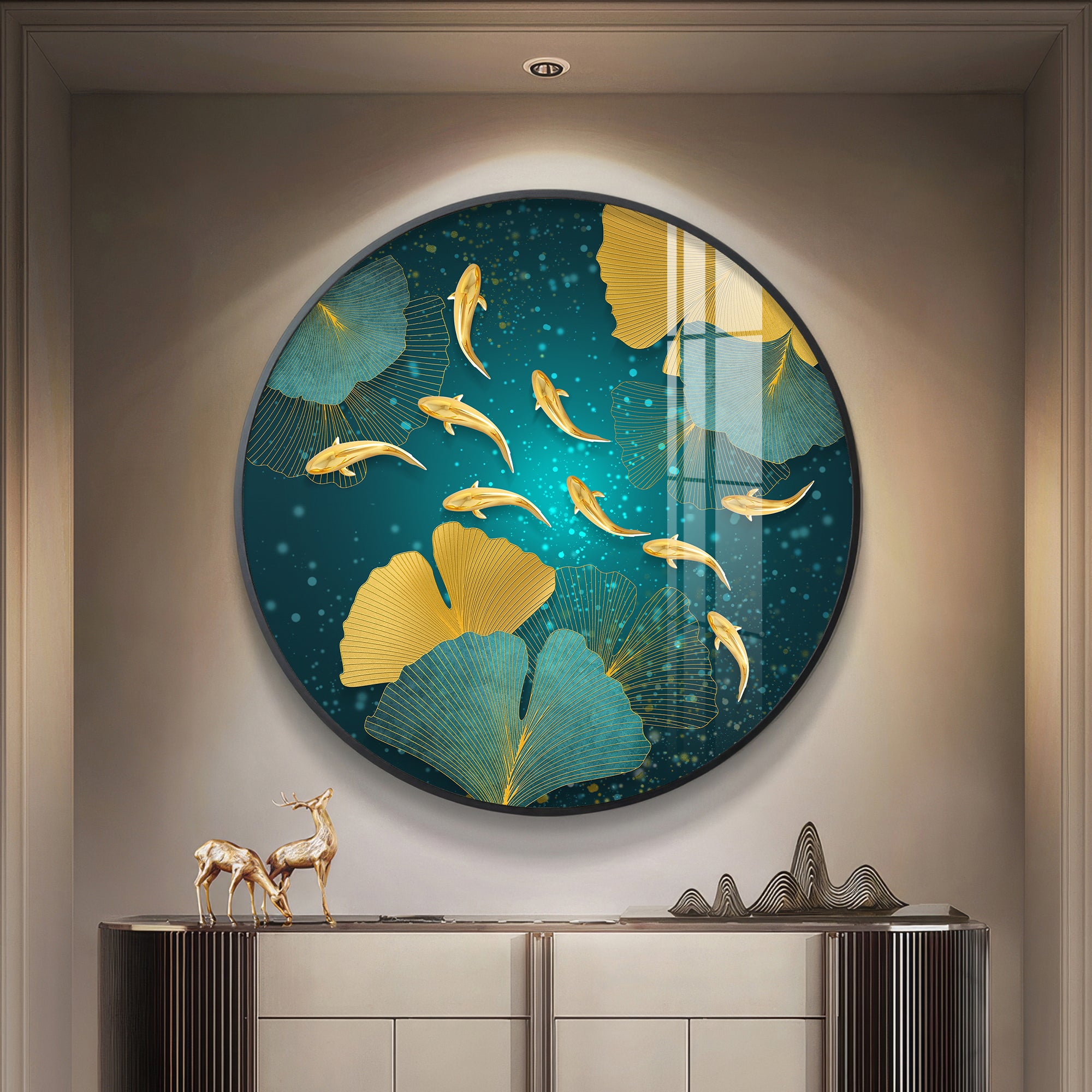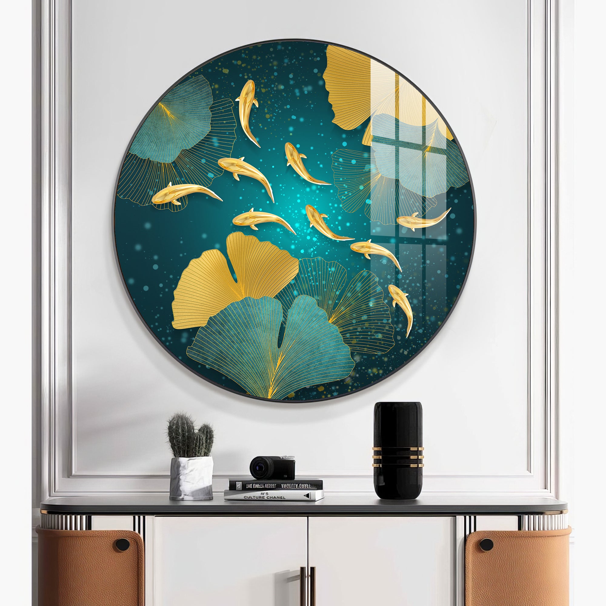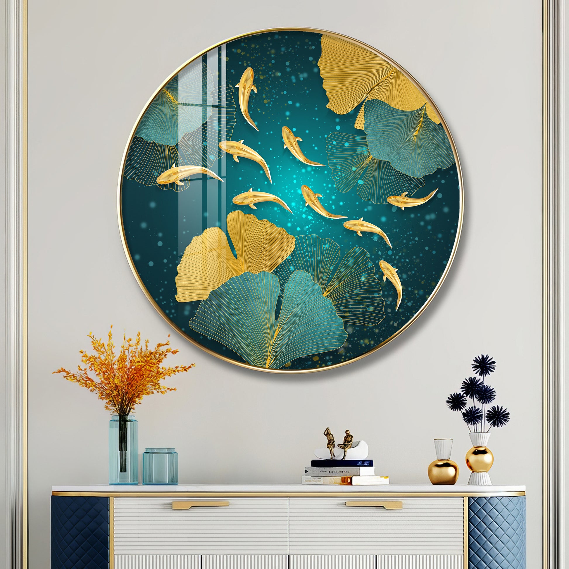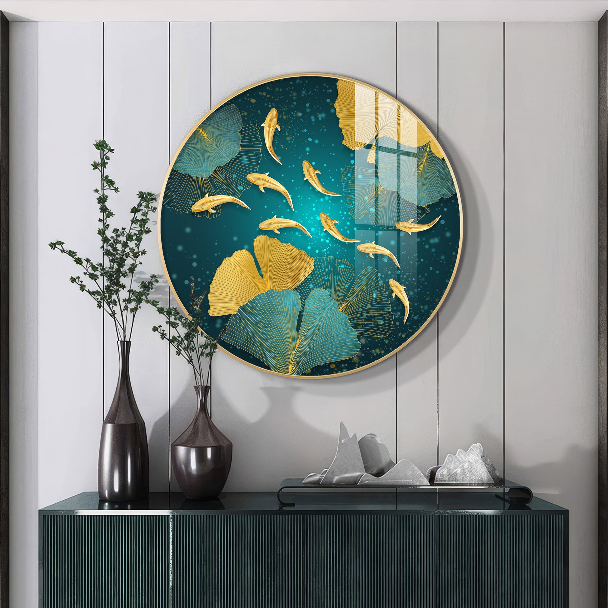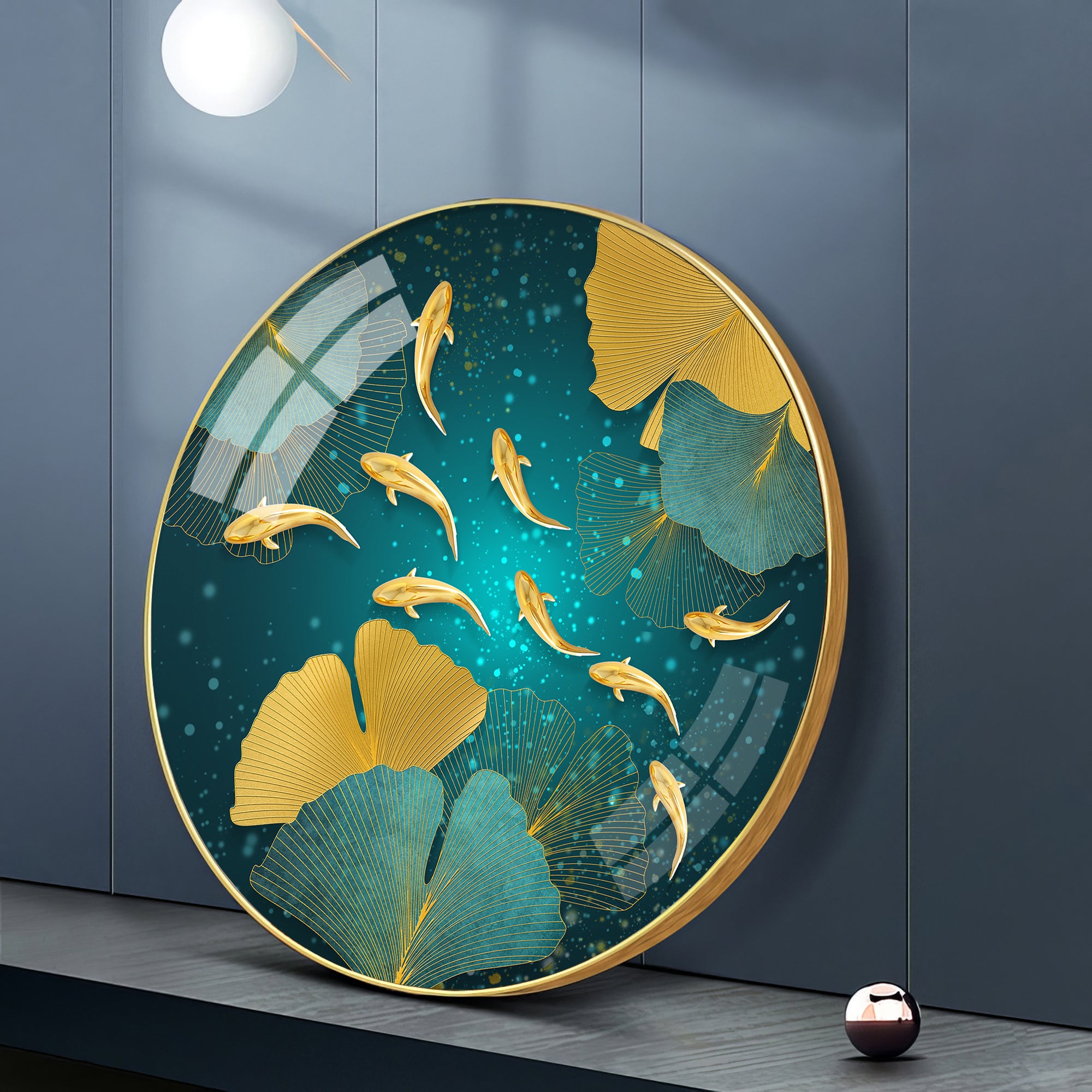 Golden Koi Fish Premium Acrylic Round Wall Art