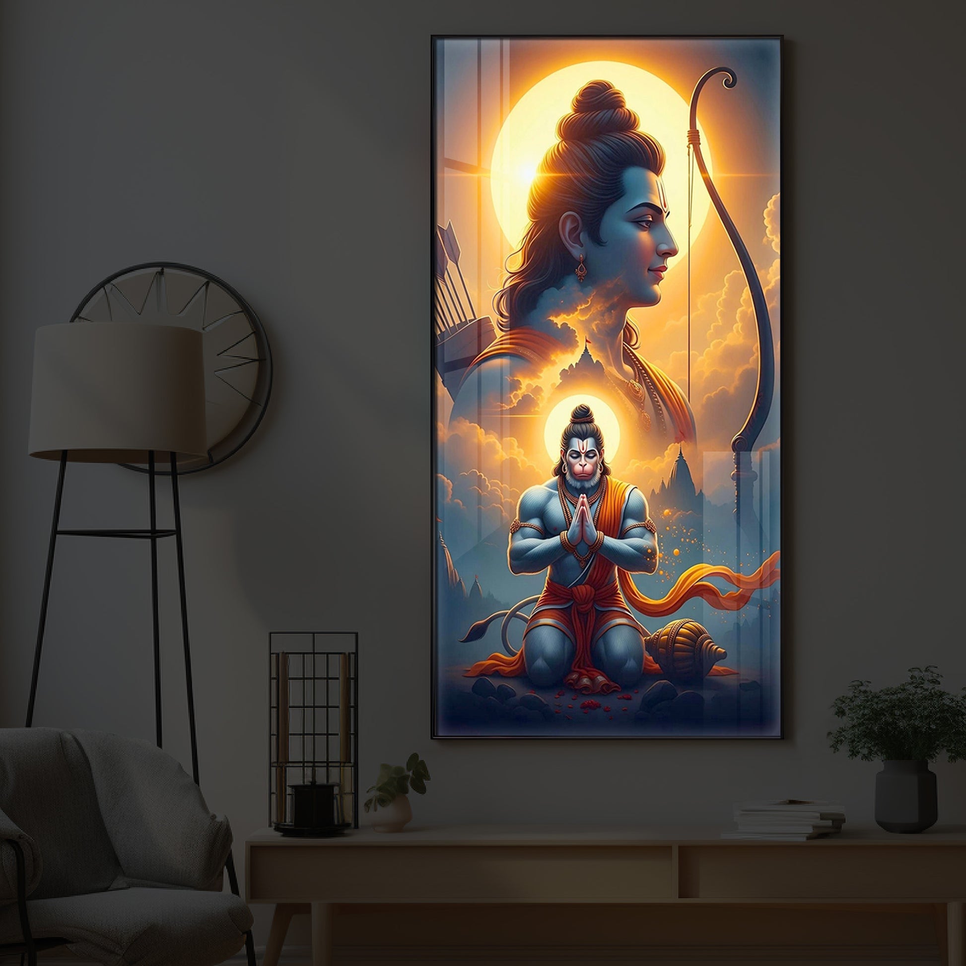 Ram and Hanuman Ji Modern Luxury Backlight Vertical Wall Art