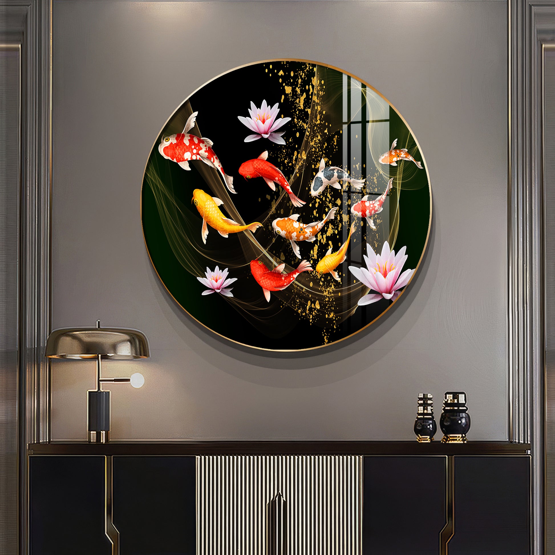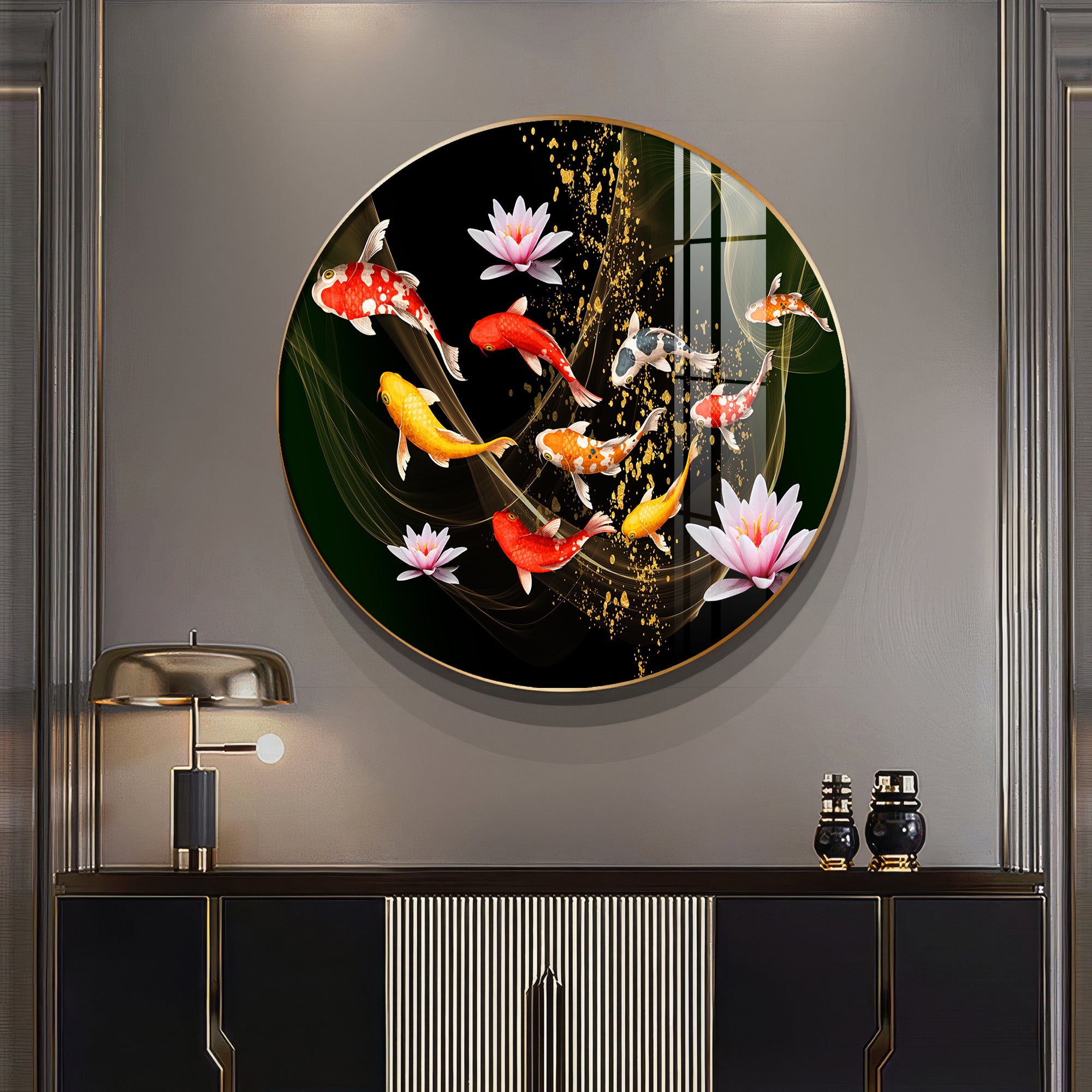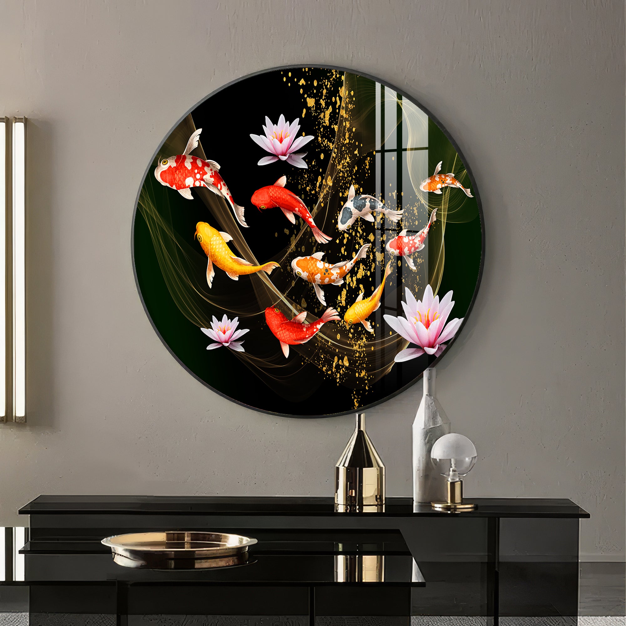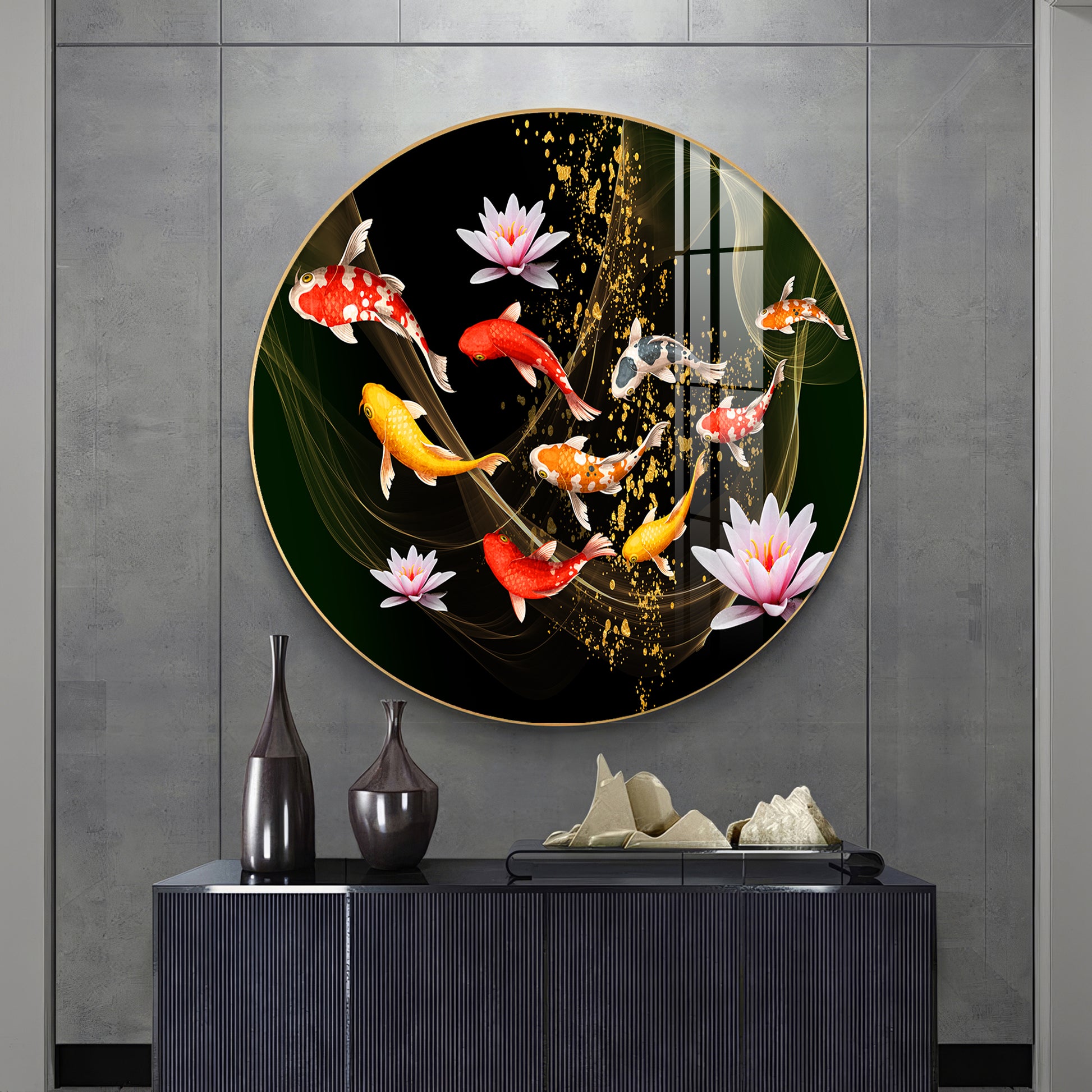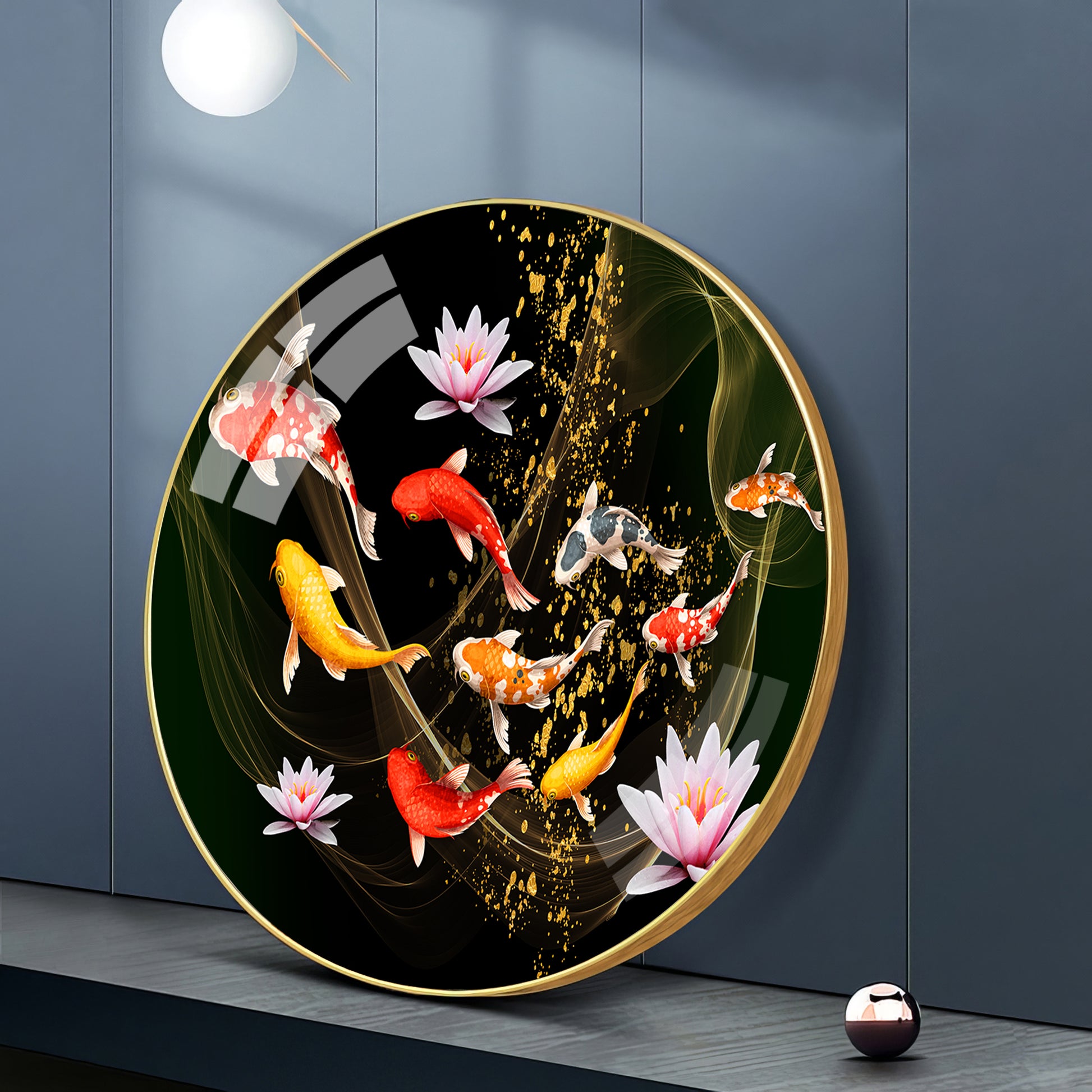 Colorful Koi In Motion Premium Acrylic Round Wall Art