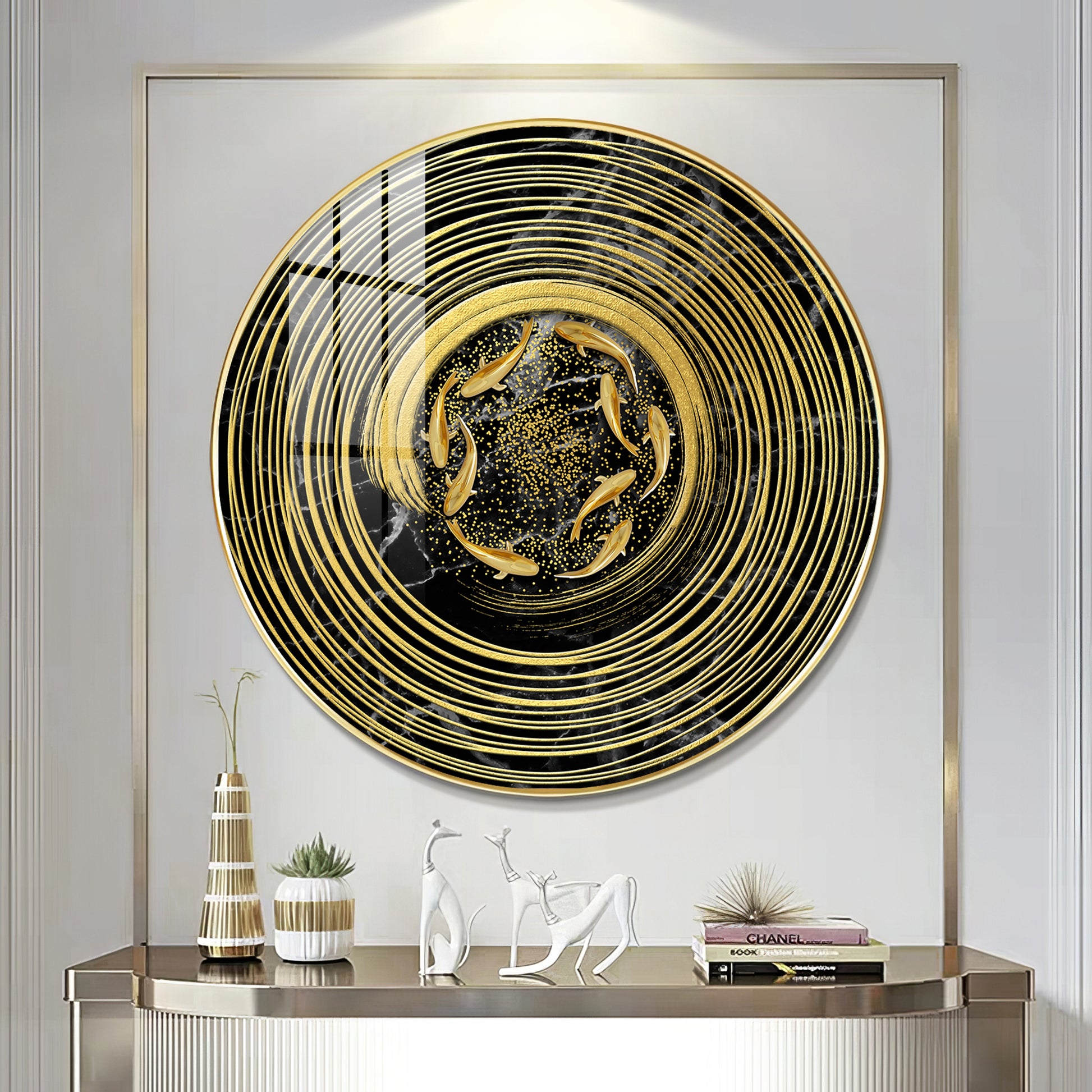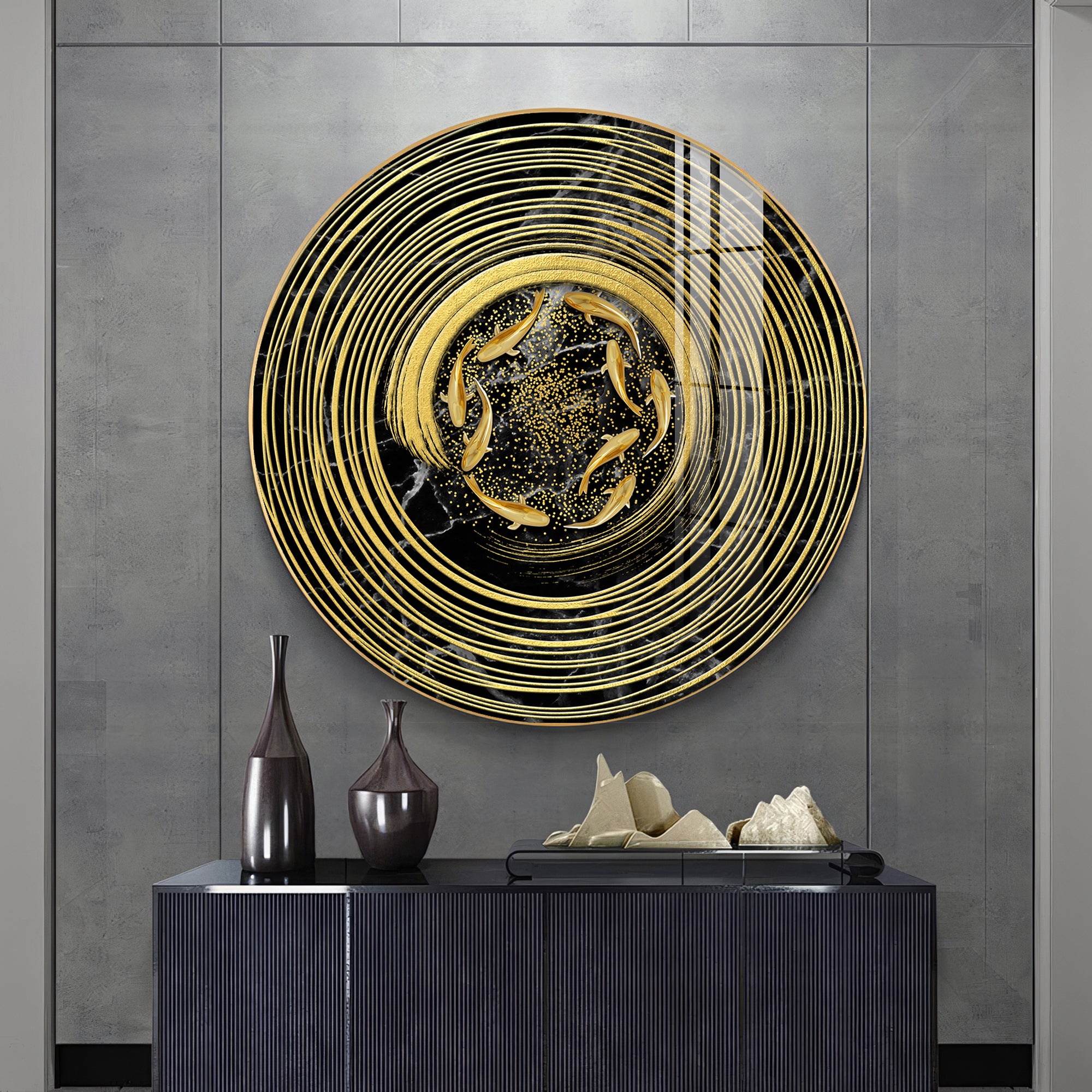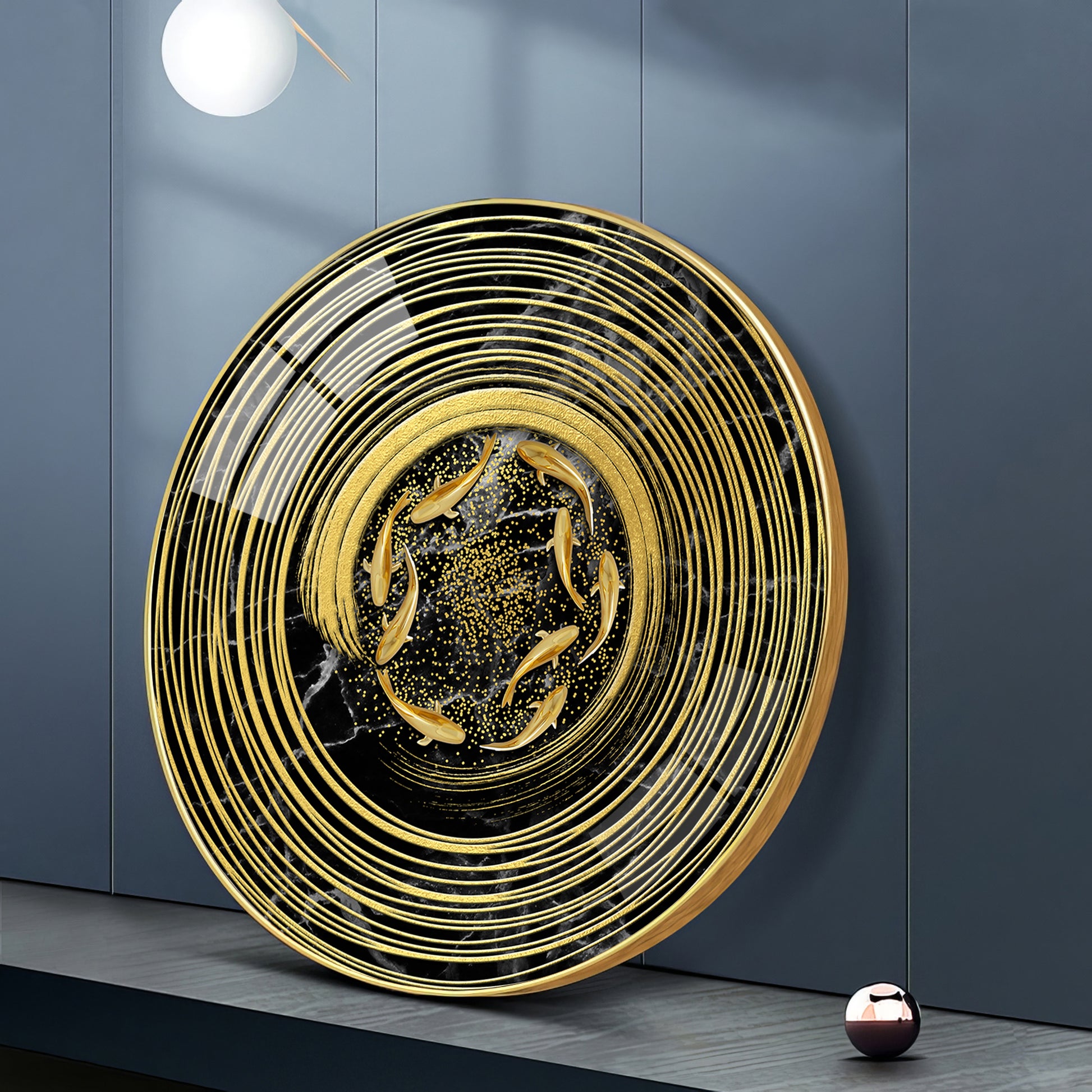 Koi In Spiral Premium Acrylic Round Wall Art