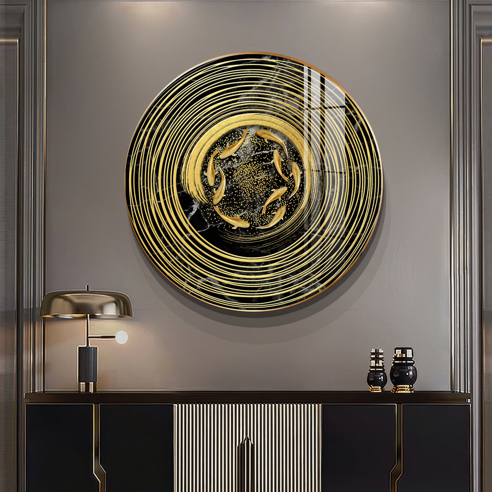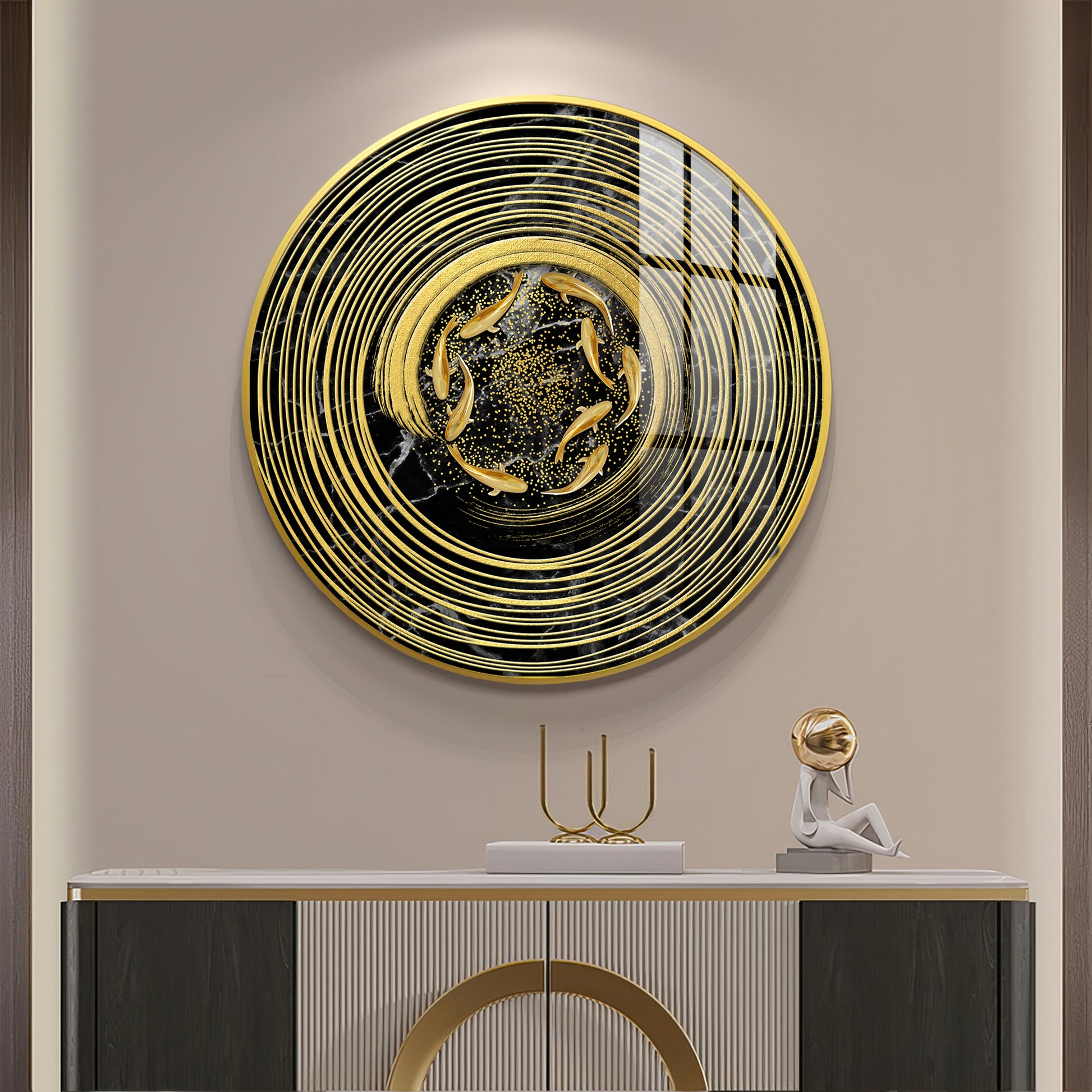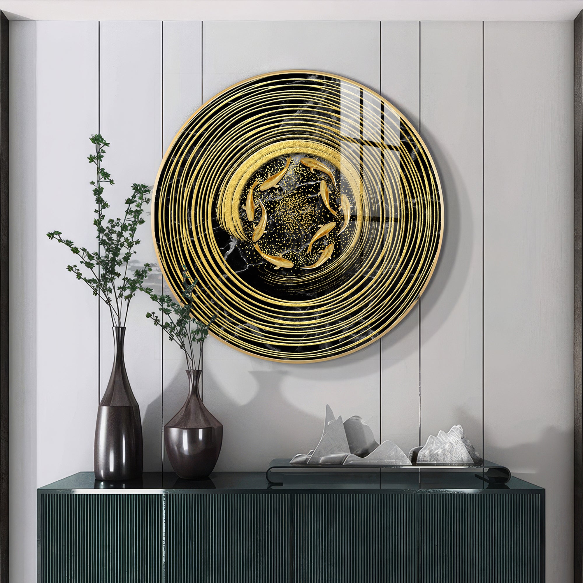 Koi In Spiral Premium Acrylic Round Wall Art