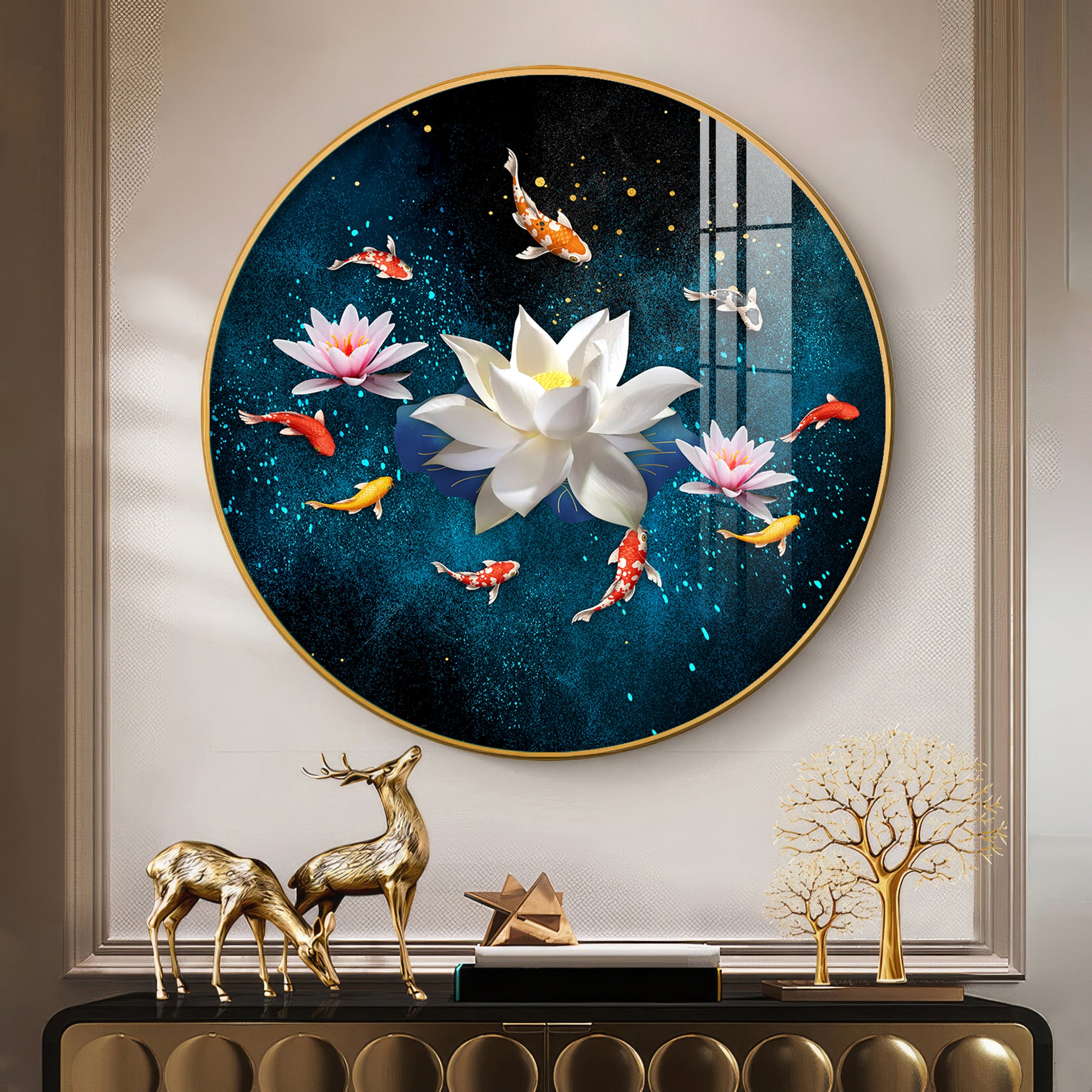 Lotus and Fish Premium Acrylic Round Wall Art