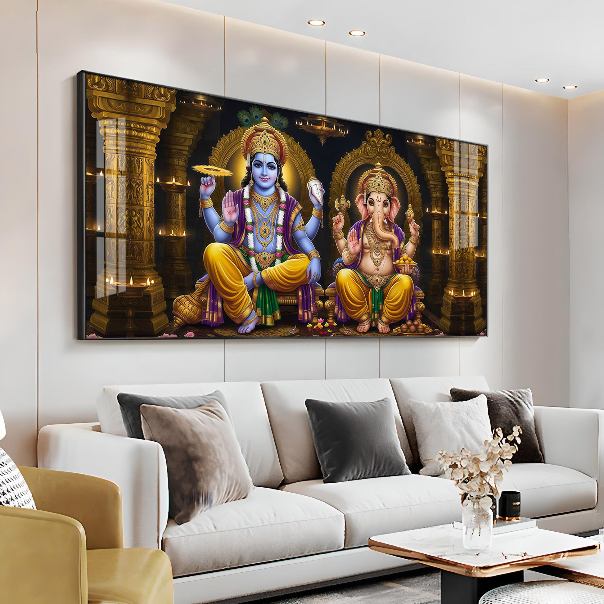 Lord Ganesha's Grace With Lord Vishnu Premium Acrylic Horizontal Wall Art