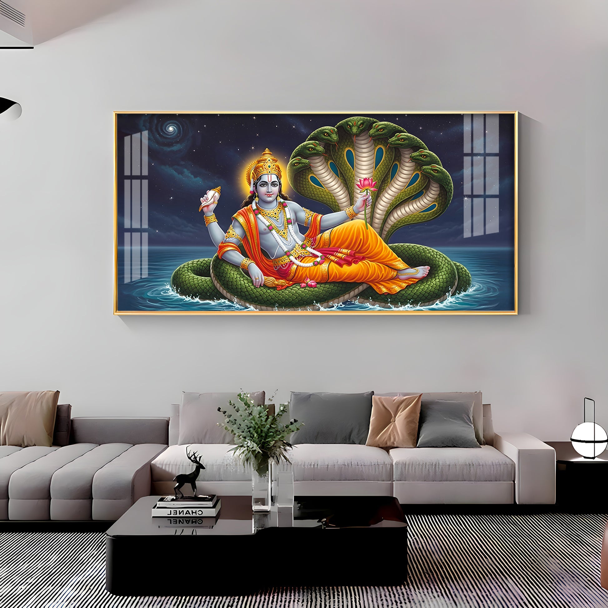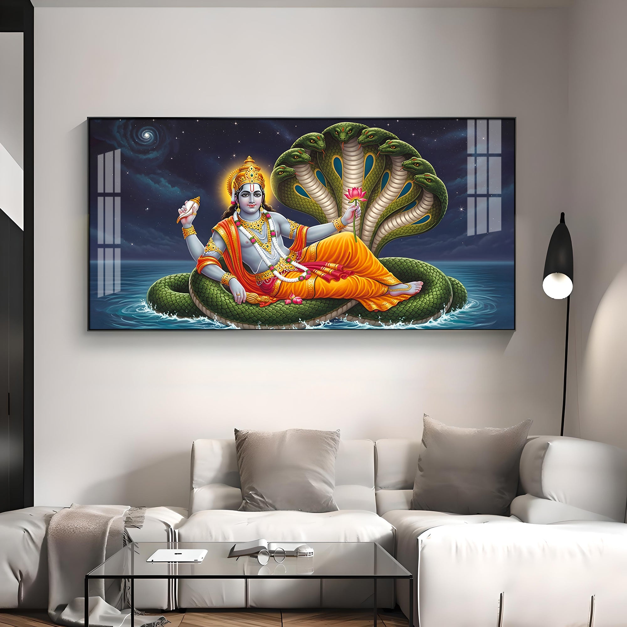 Lord Vishnu on Sheshnag Premium Acrylic Horizontal Wall Art