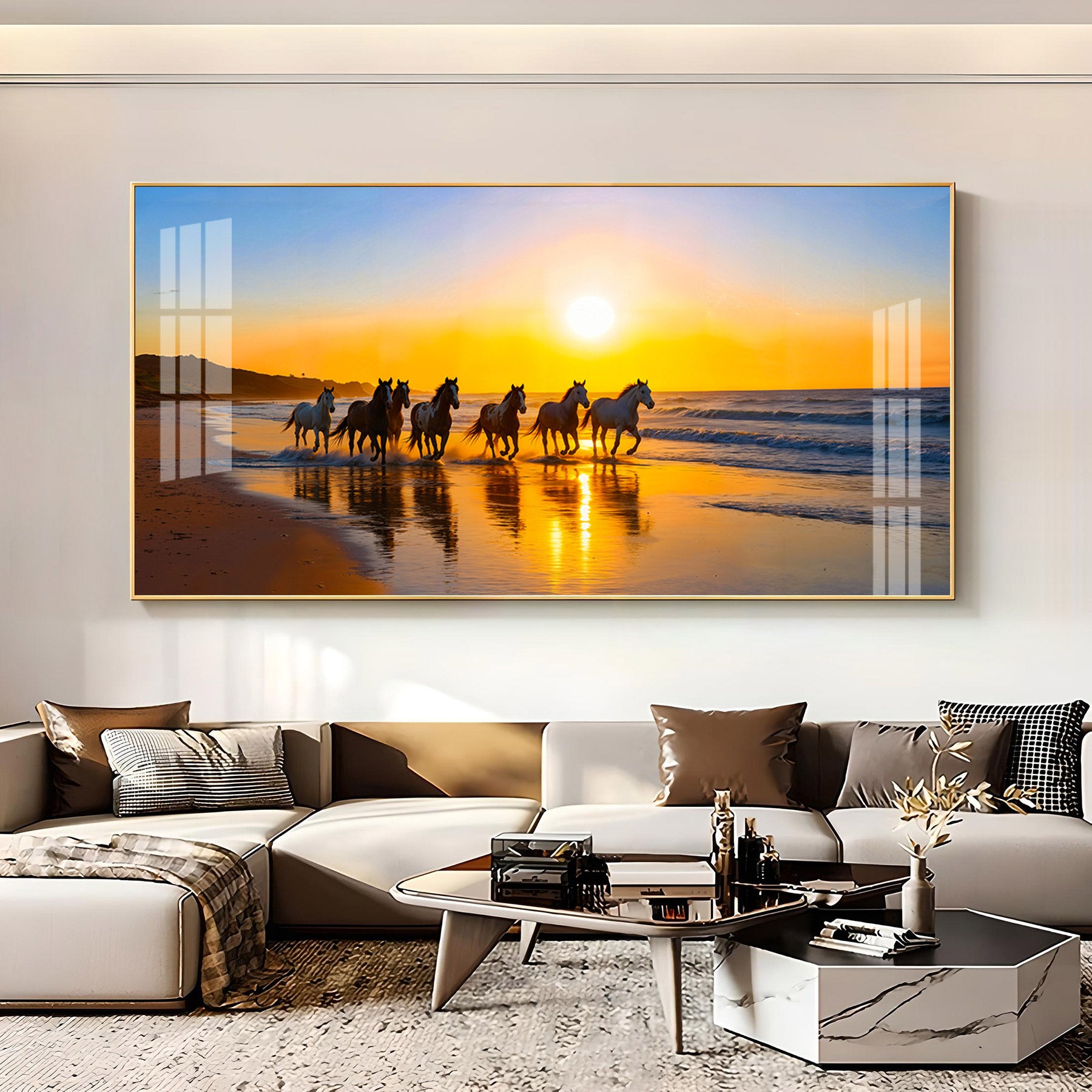 Running horses In Seaside Stallion Premium Acrylic Horizontal Wall Art