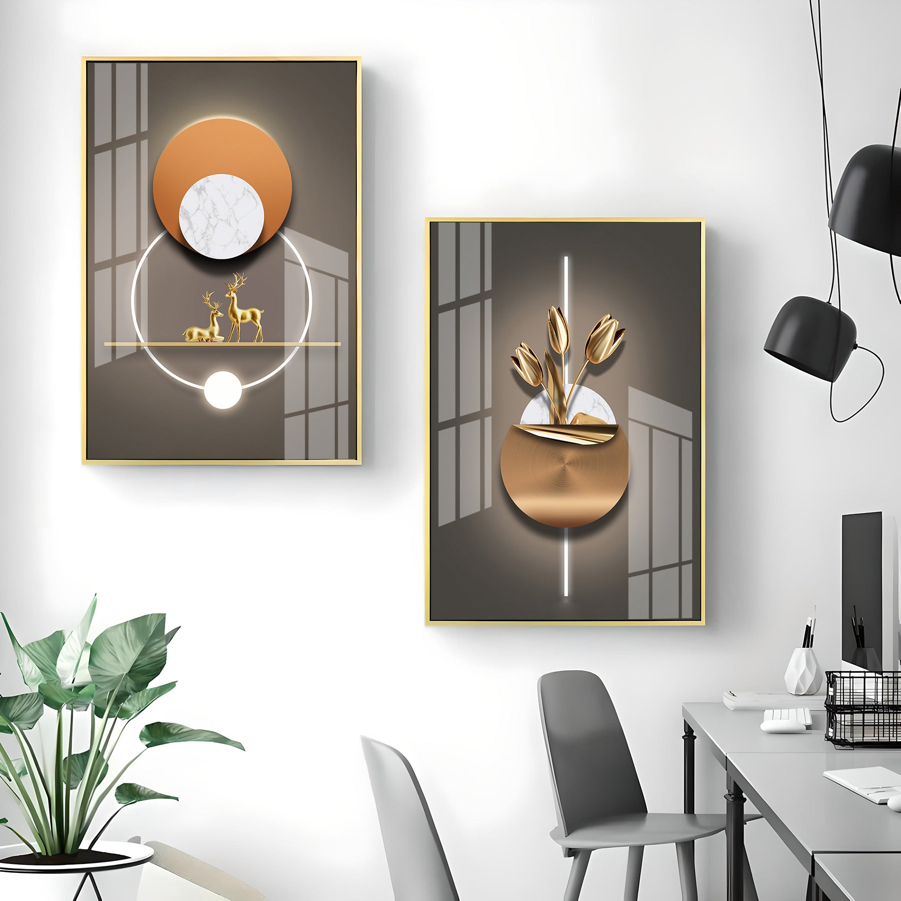 Wall Arts: Wall arts are a great way and perfect excuse to stylishly cover up those empty wall spaces in your home. There are a ton of modern wall arts in our collections to adorn your offices and homes.