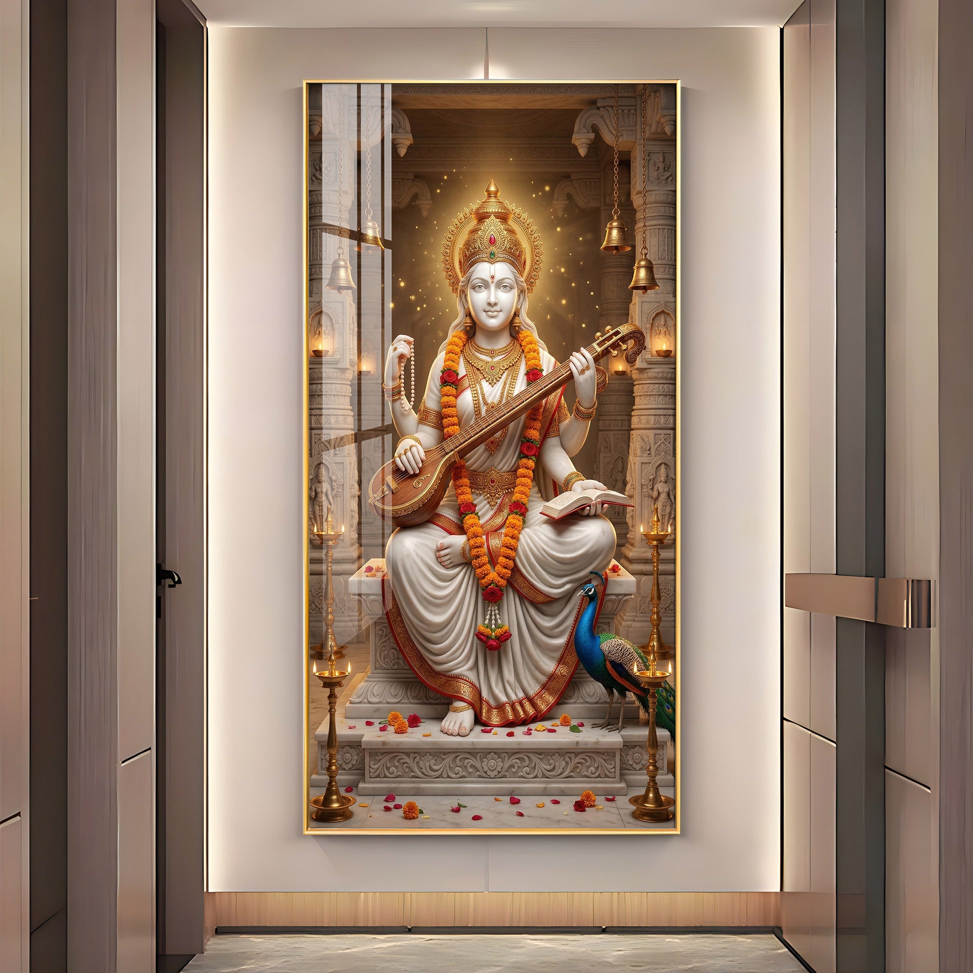 Divine Harmony Of Saraswati Maa Premium Acrylic Vertical Wall Art