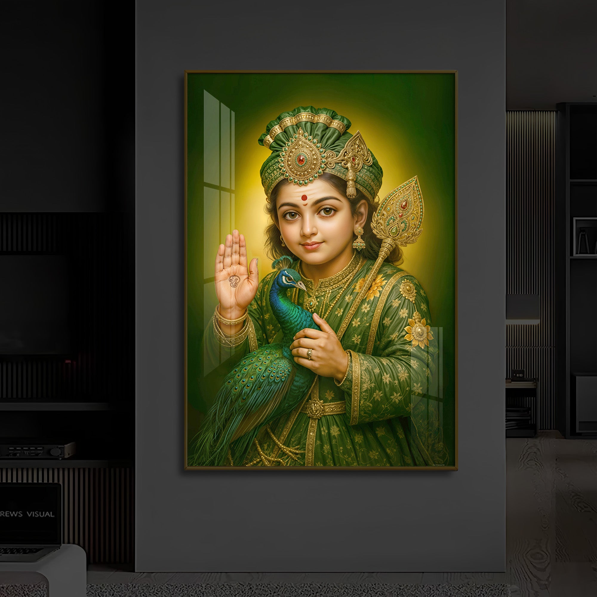 Divine Lord Murugan Modern Luxury Backlight Vertical Wall Art