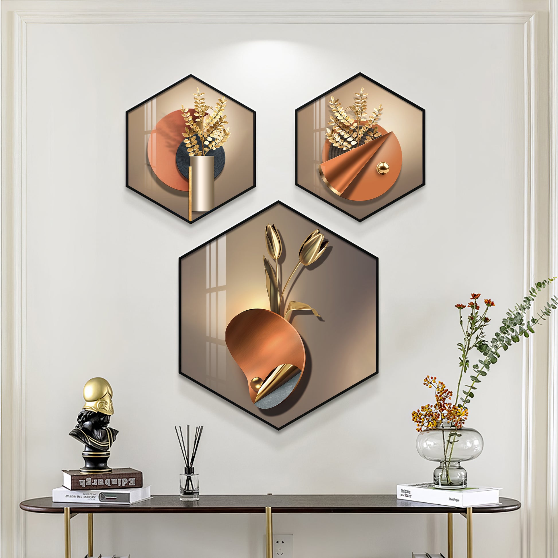 3D Petal Abstract Premium Acrylic Hexagon Wall Art (Set of 3)