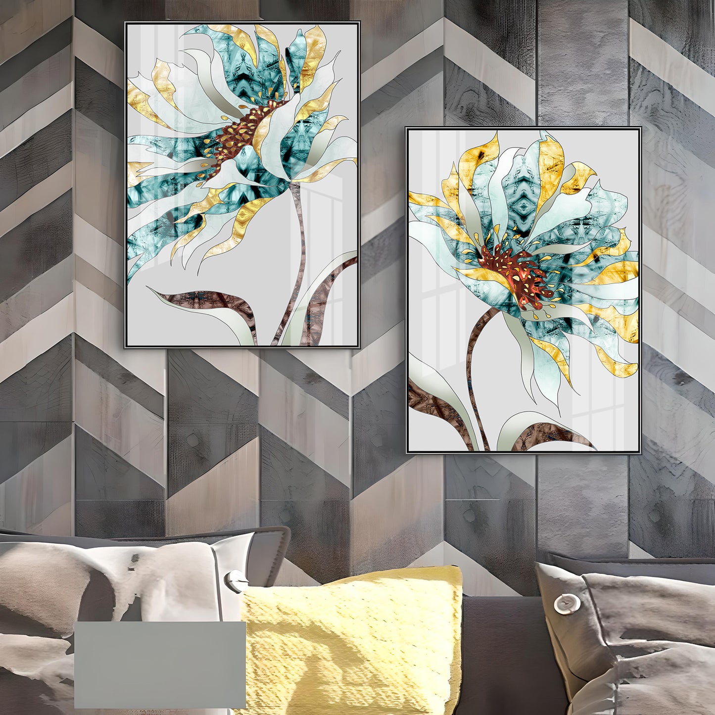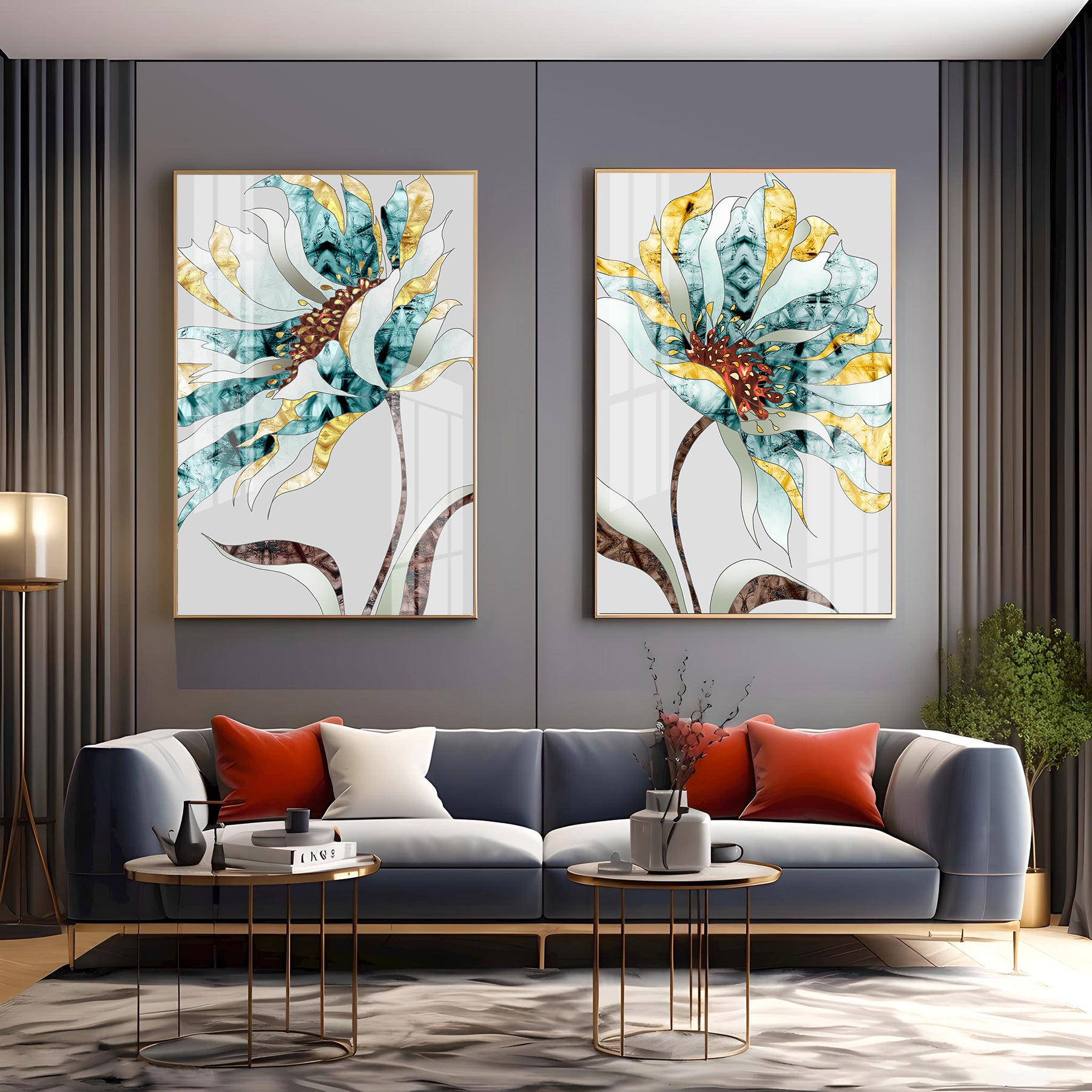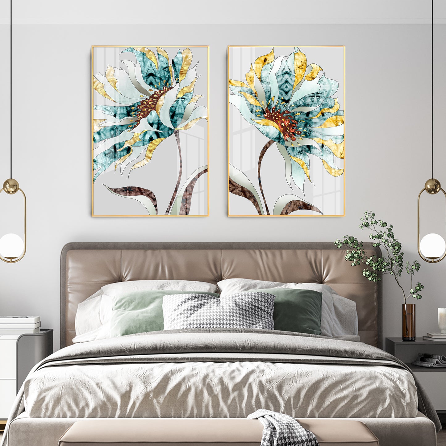 Abstract Colorful Flower Premium Acrylic Vertical Wall Art (Set Of 2)