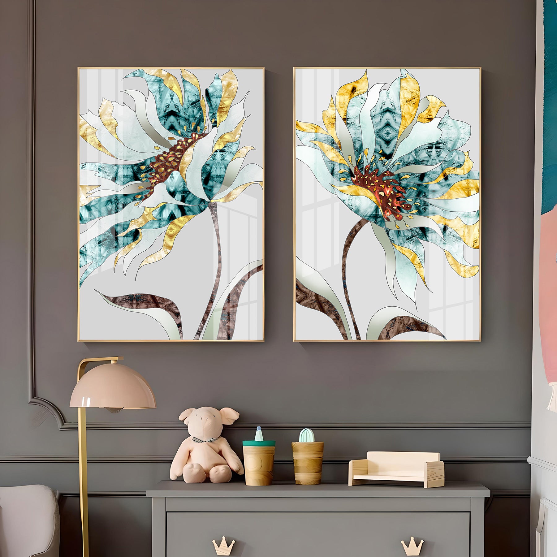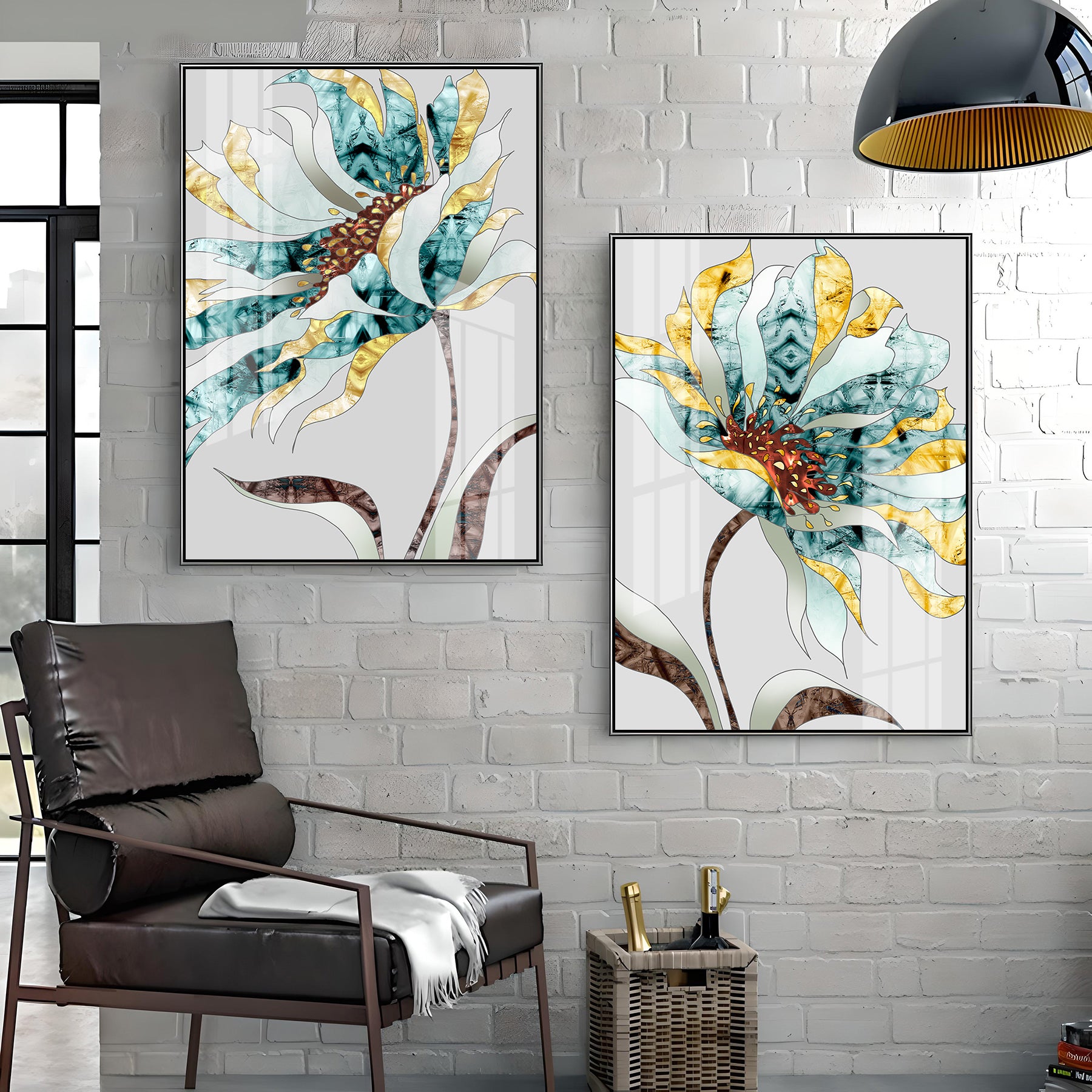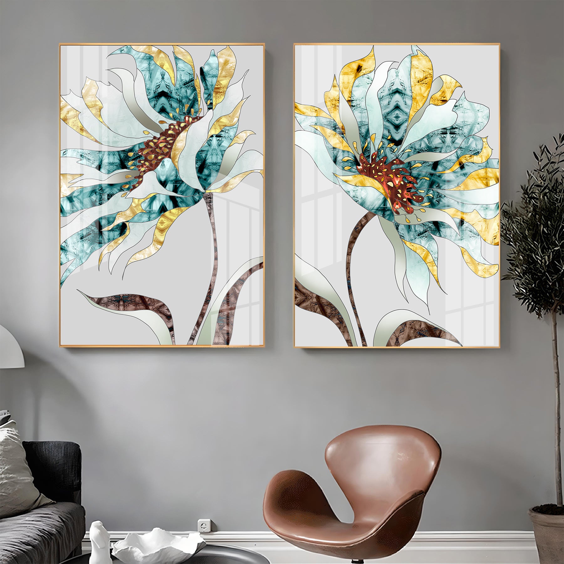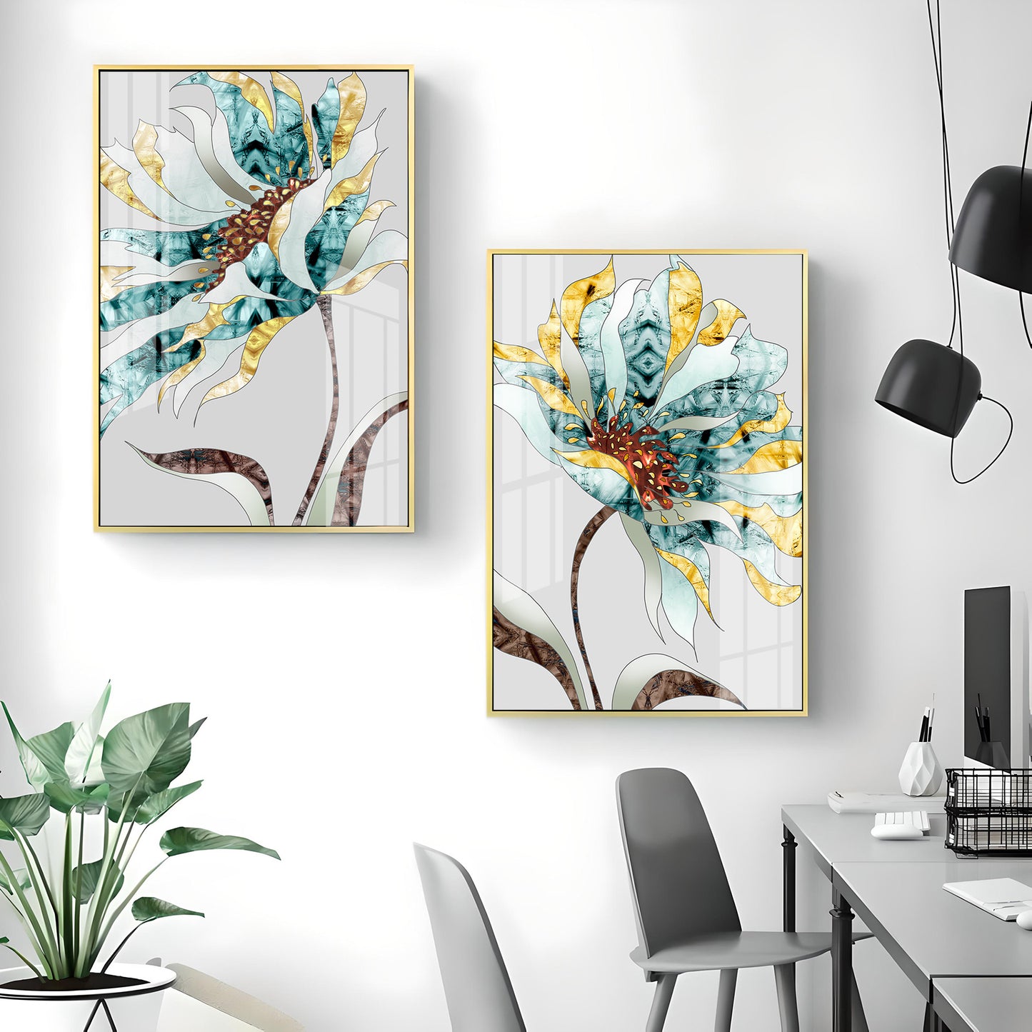 Abstract Colorful Flower Premium Acrylic Vertical Wall Art (Set Of 2)