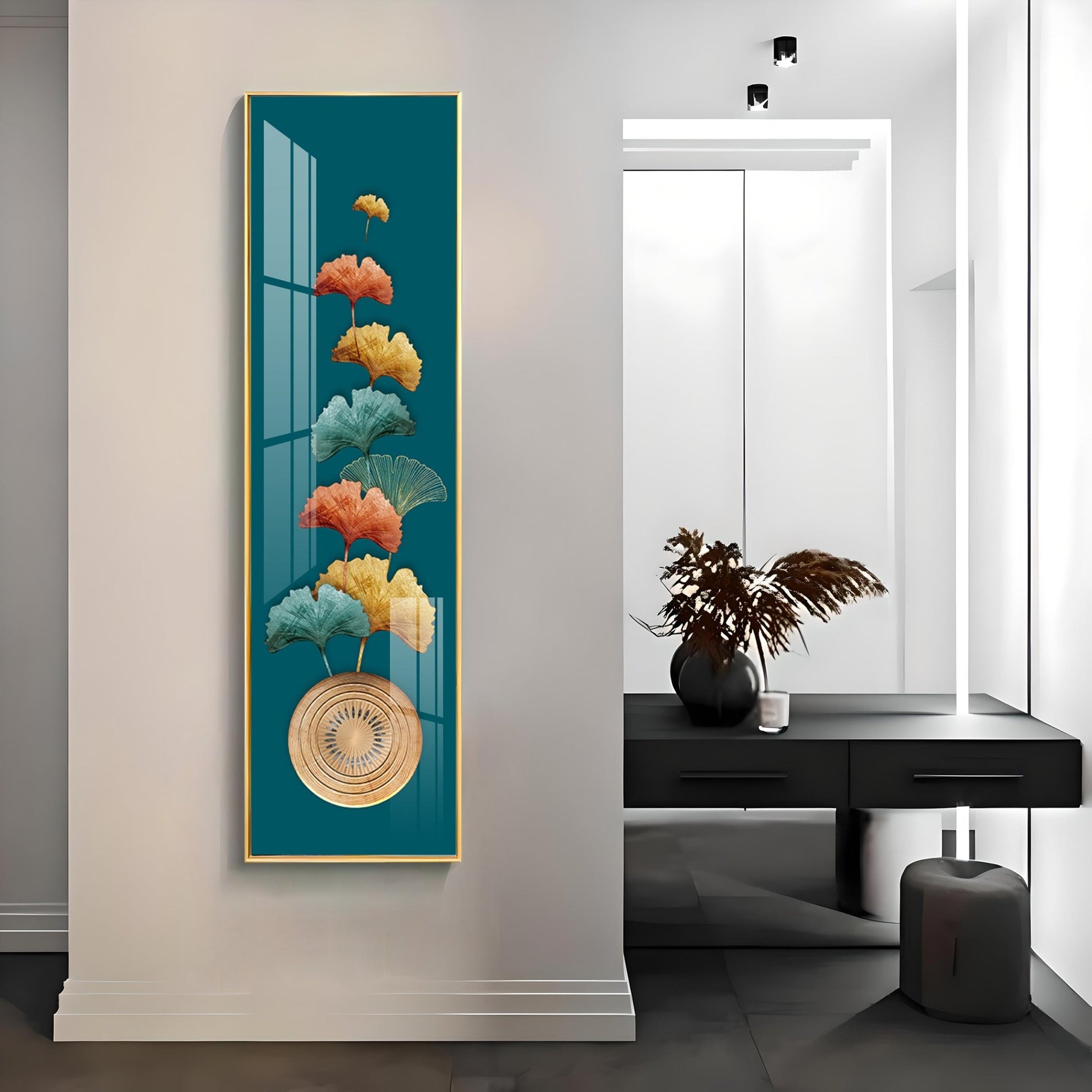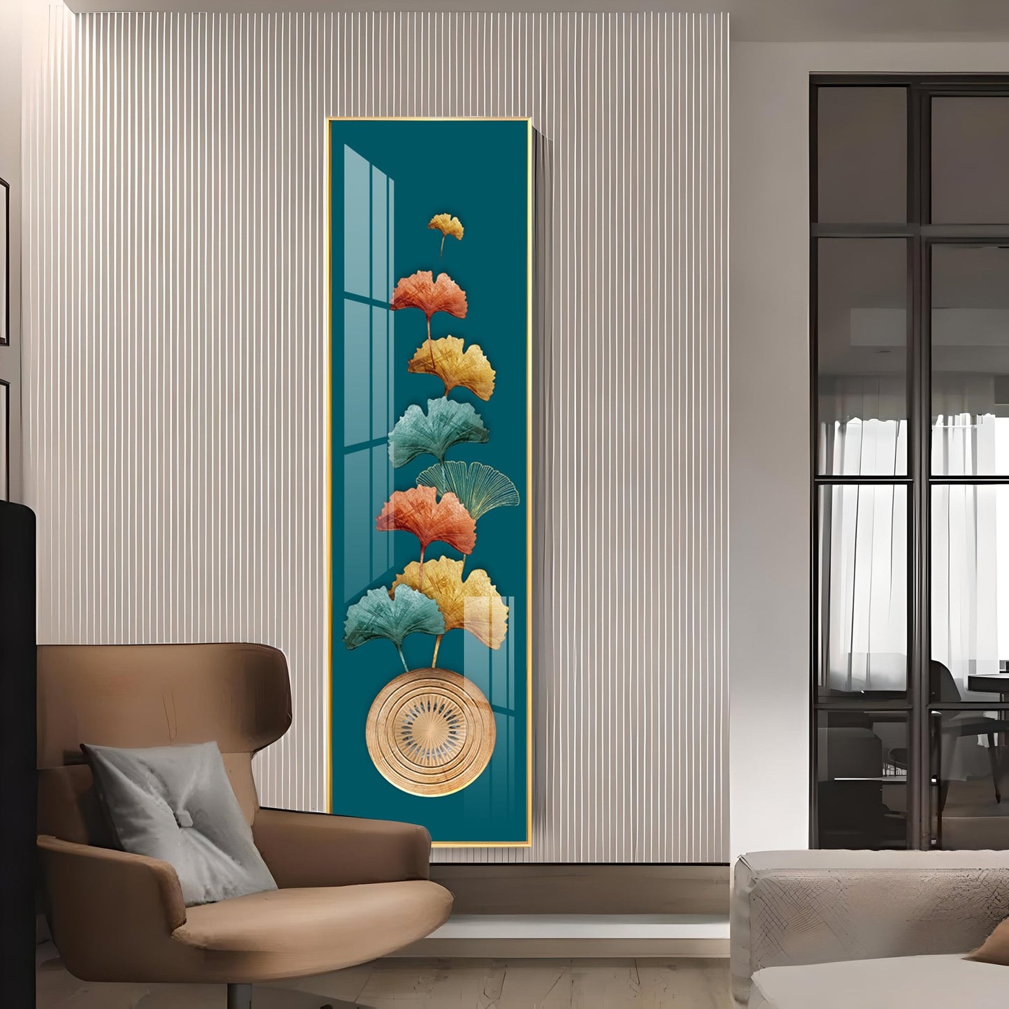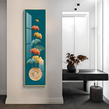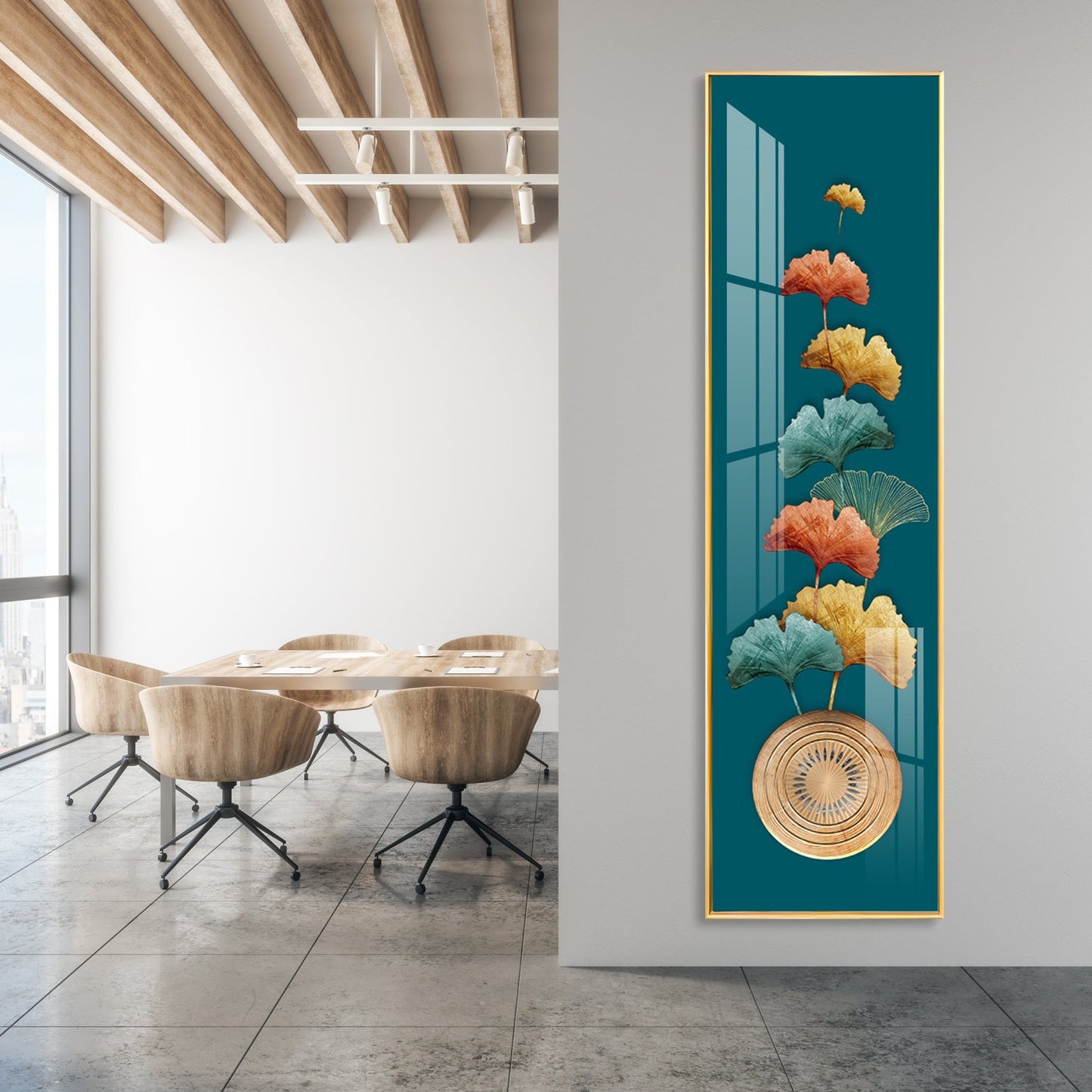 Abstract Golden Ginkgo Leaf Premium Acrylic Vertical Wall Art