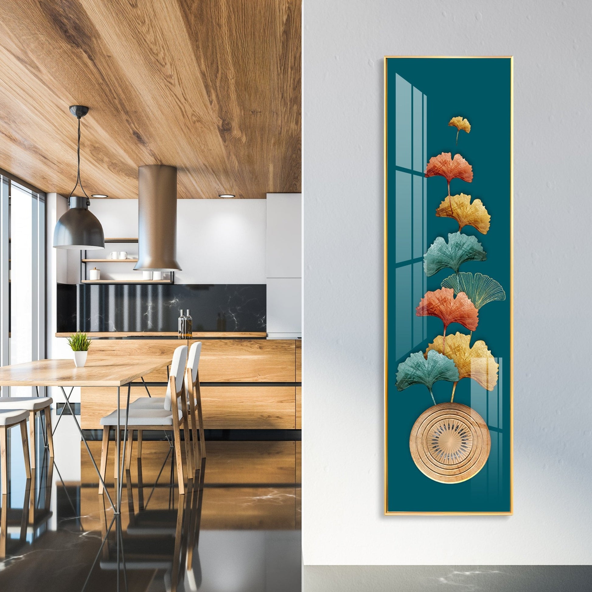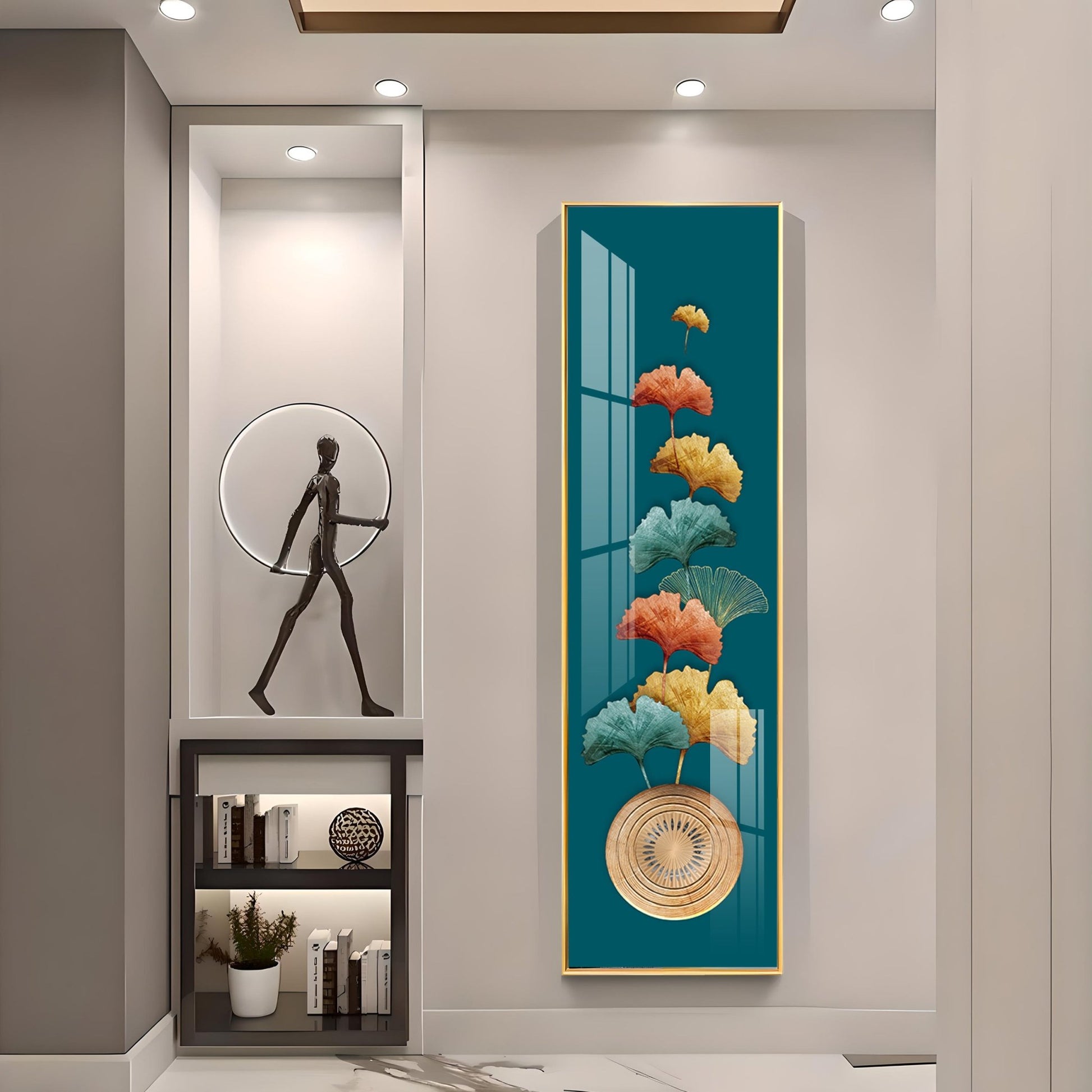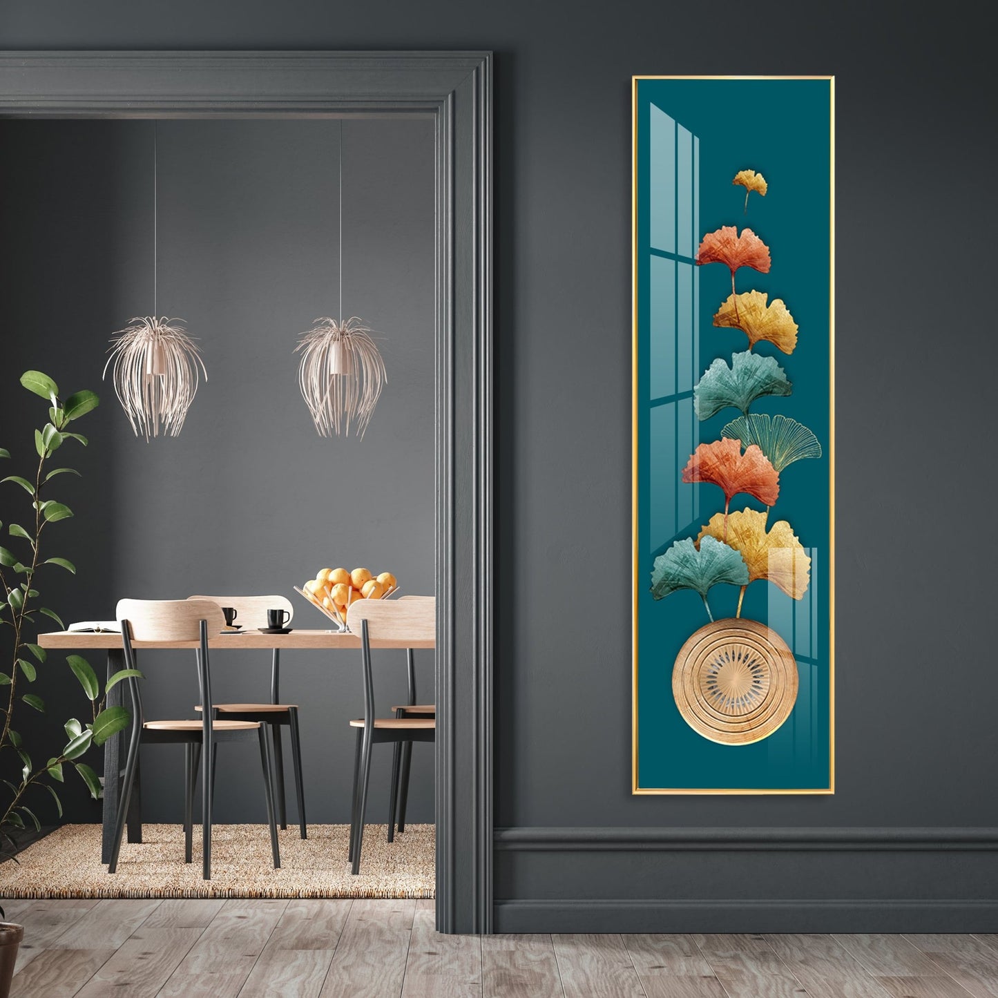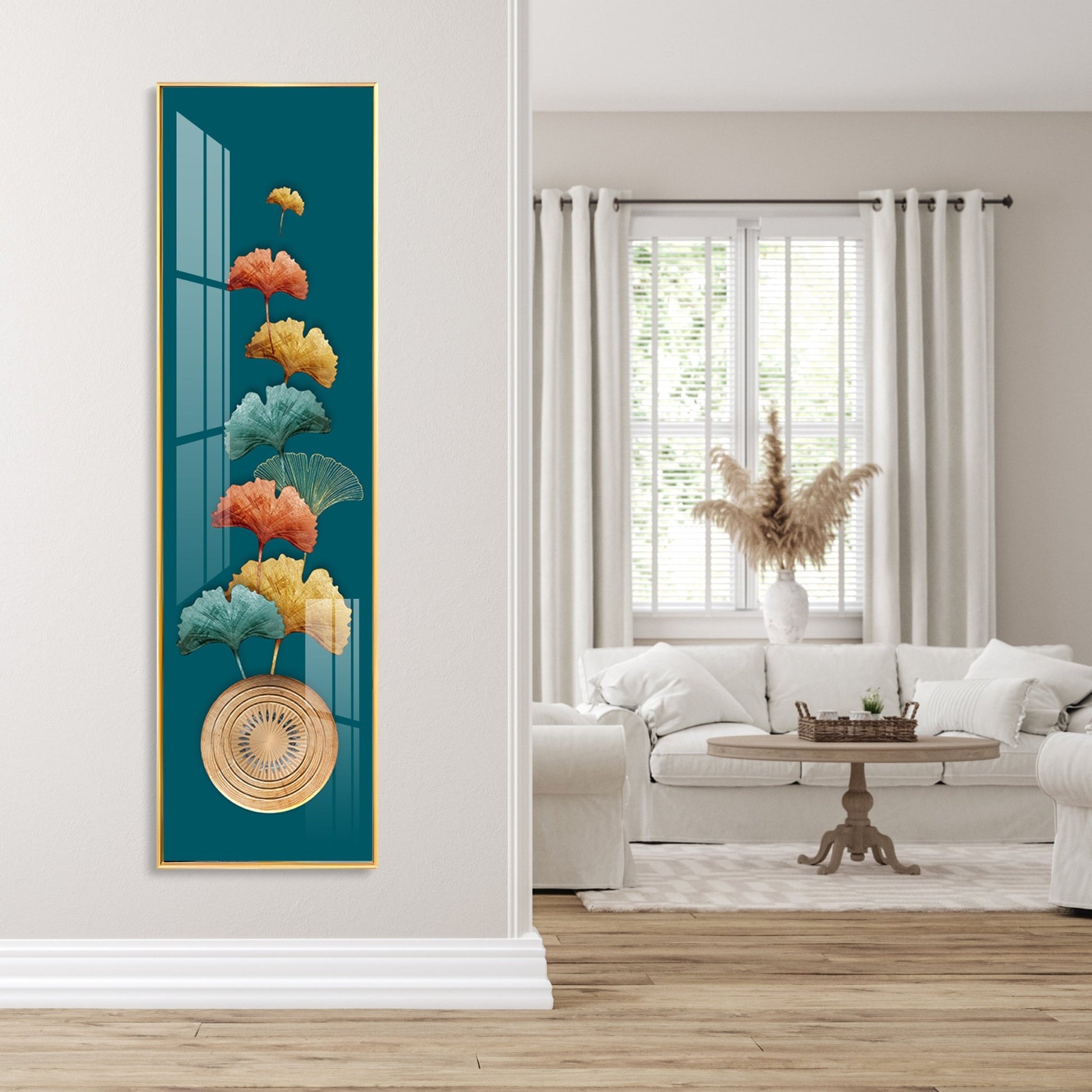 Abstract Golden Ginkgo Leaf Premium Acrylic Vertical Wall Art