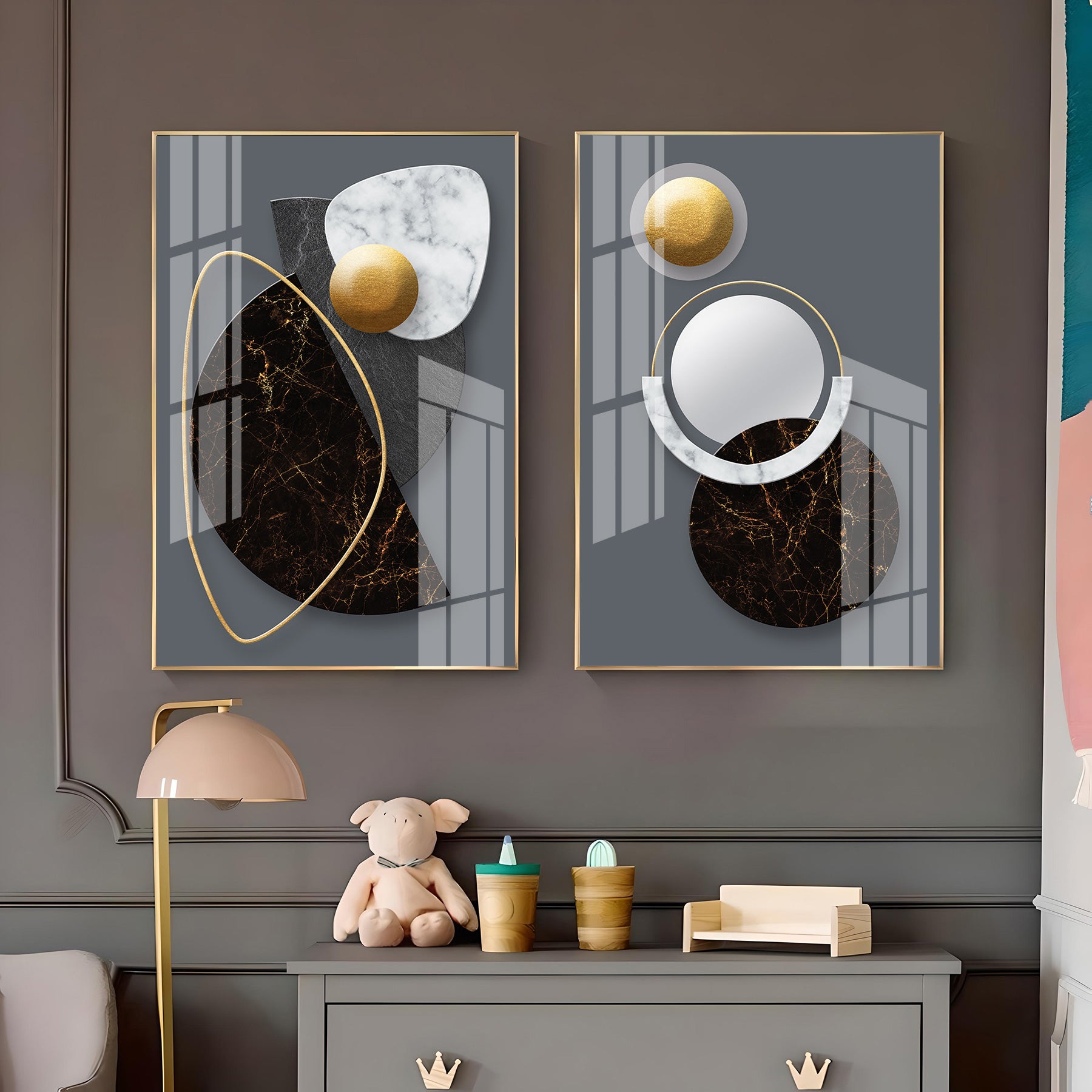 Abstract Marble Curves Premium Acrylic Vertical Wall Art (Set Of 2)