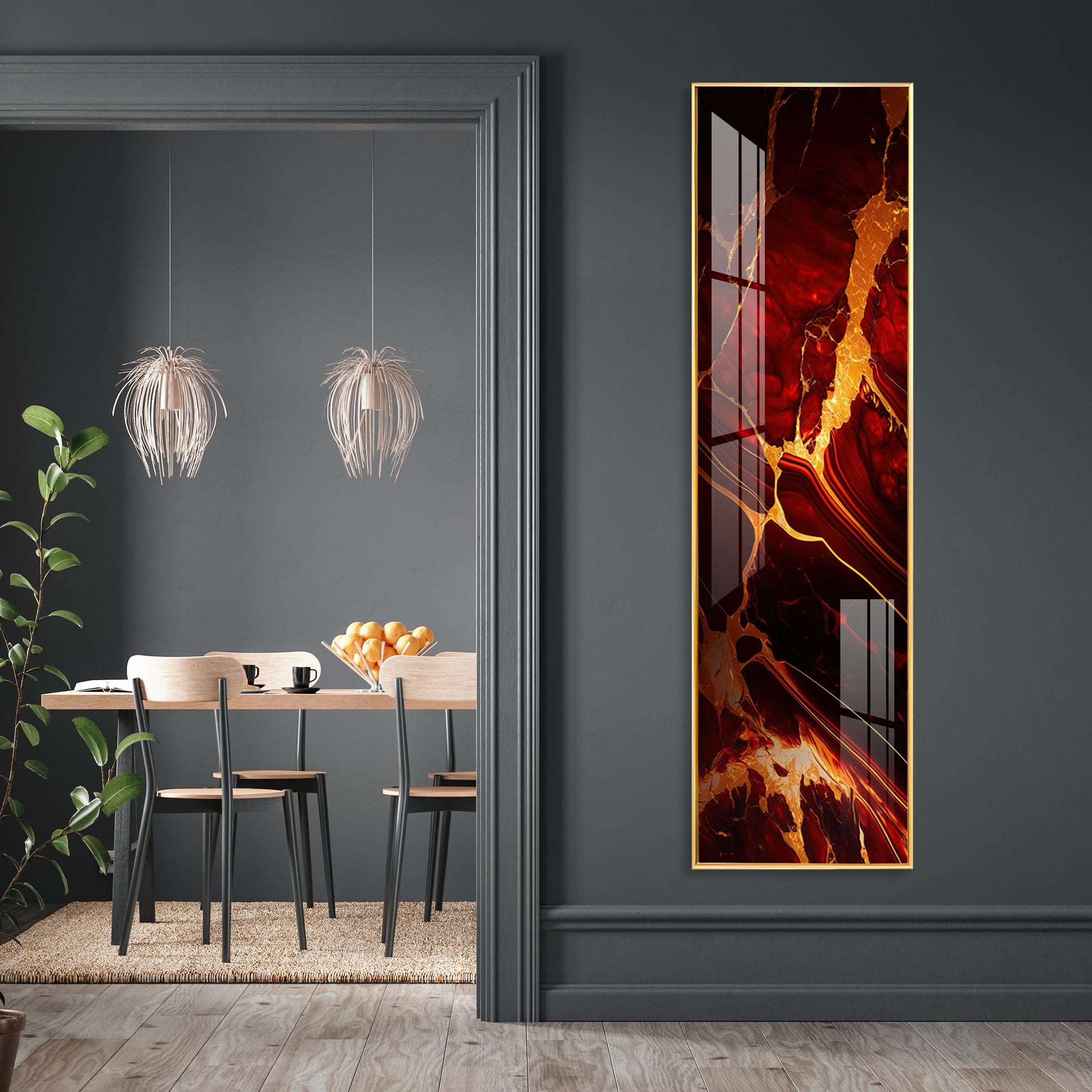 Abstract Vibrant Red & Gold Design Premium Acrylic Vertical Wall Art