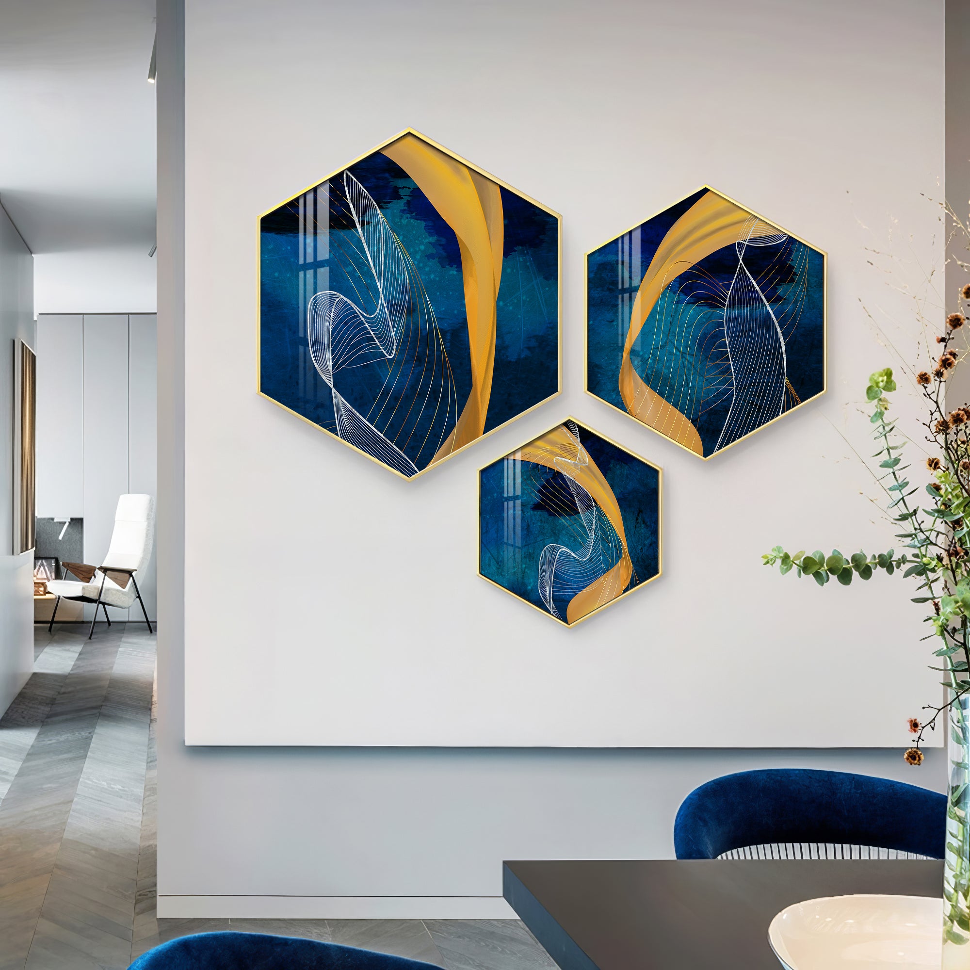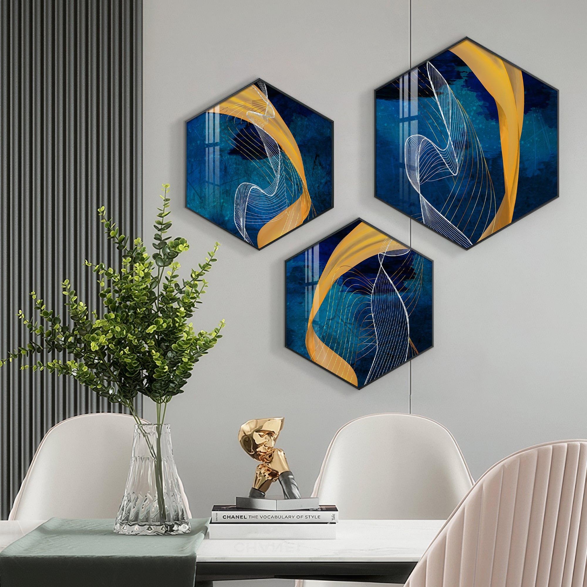 Asatic Wave Premium Acrylic Hexagon Wall Art (Set of 3)