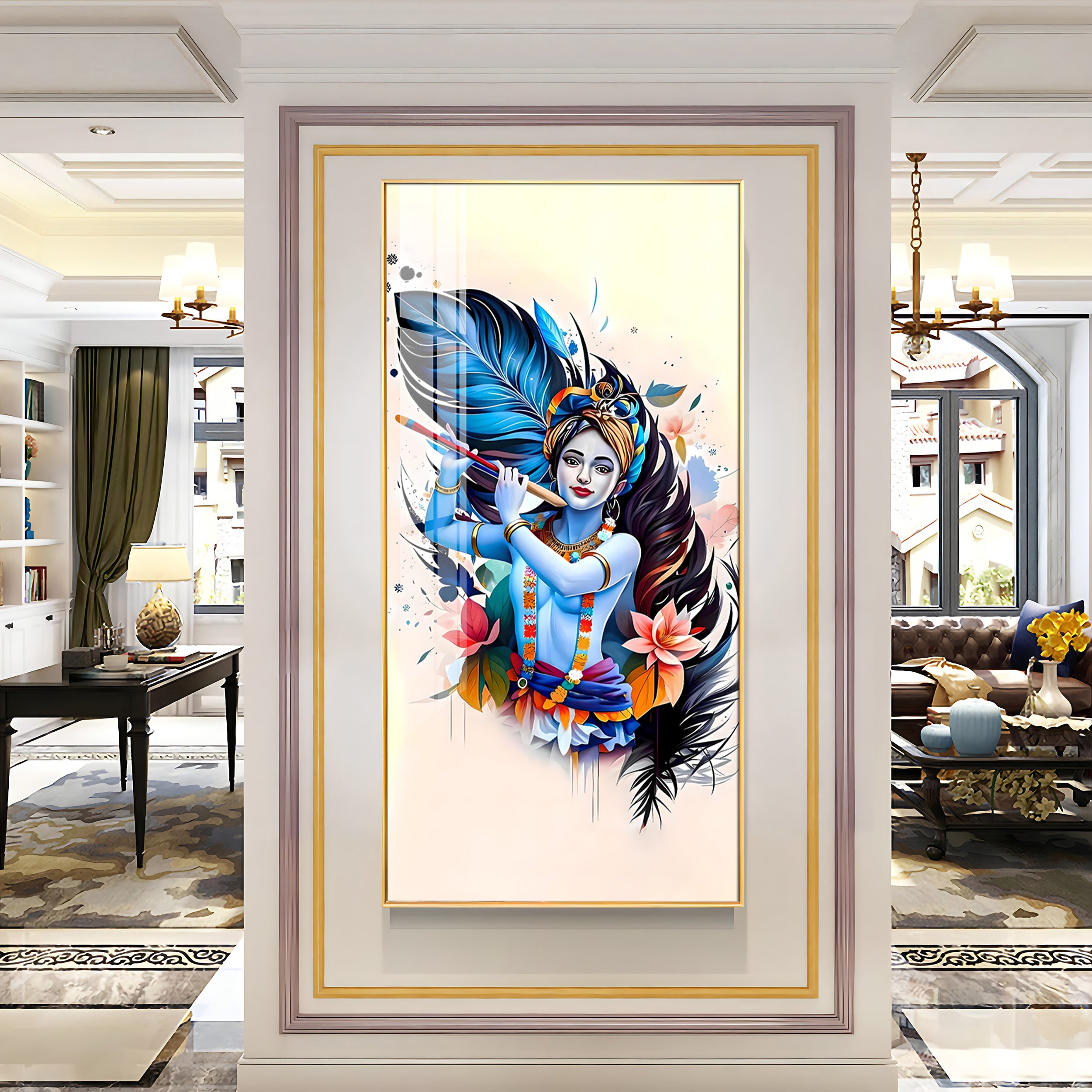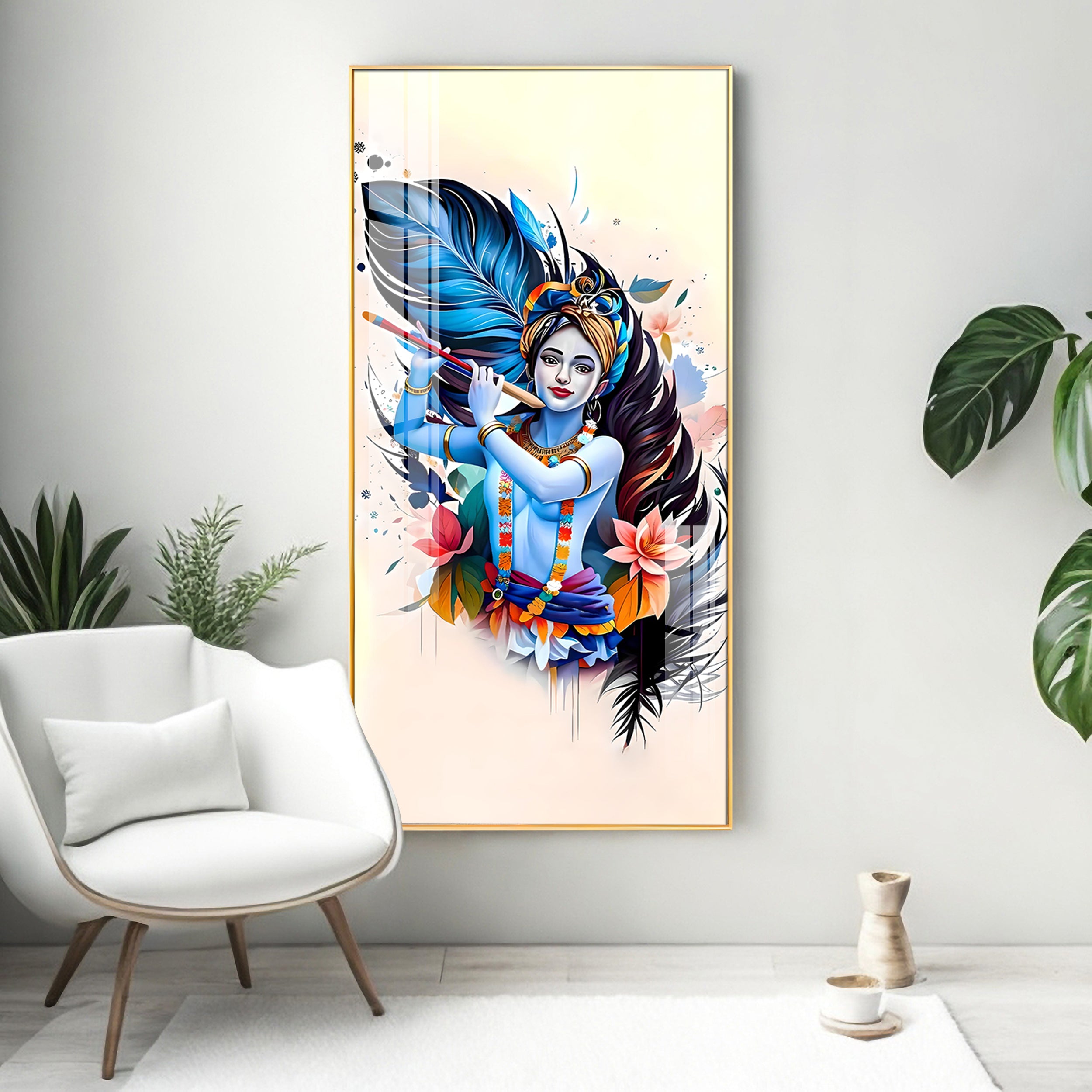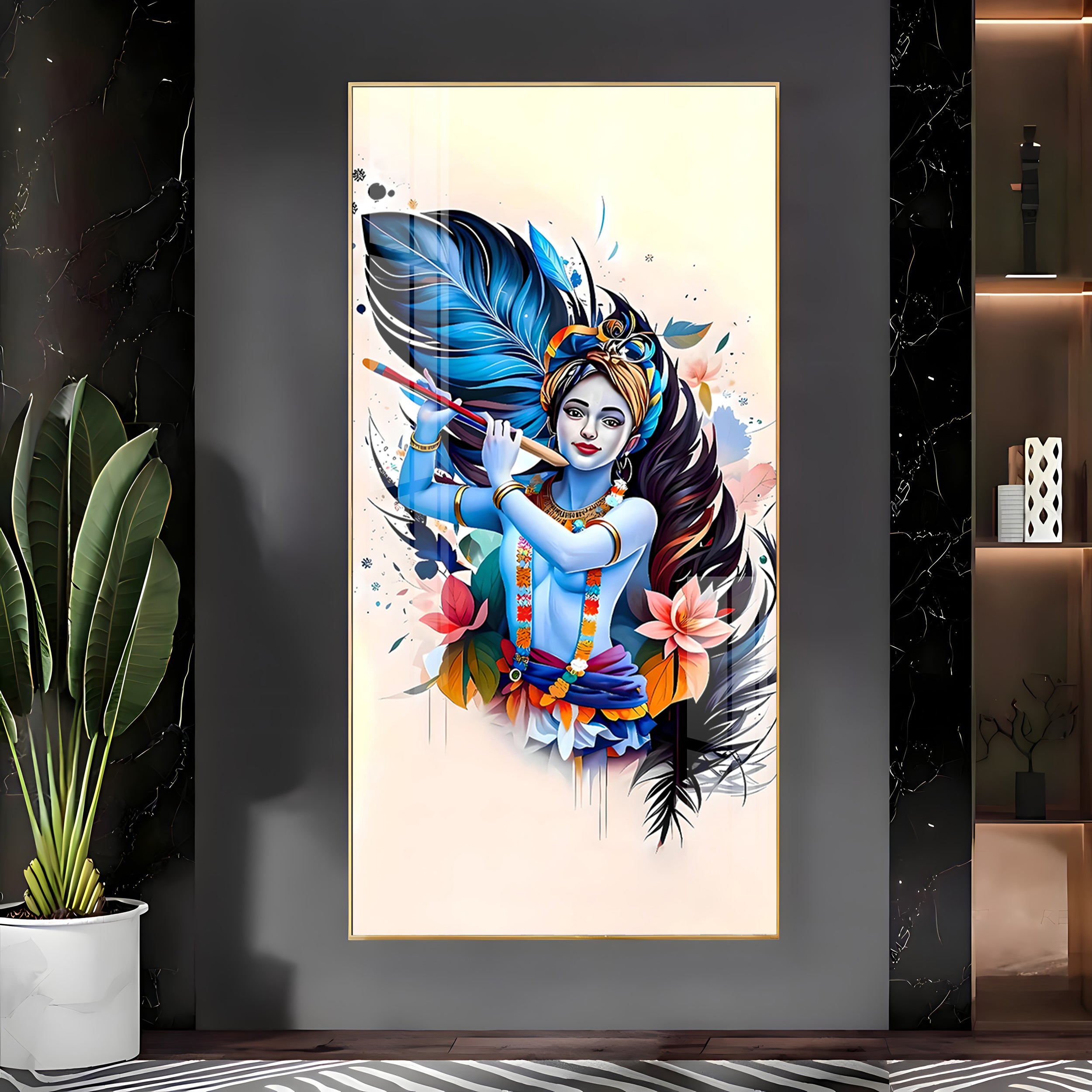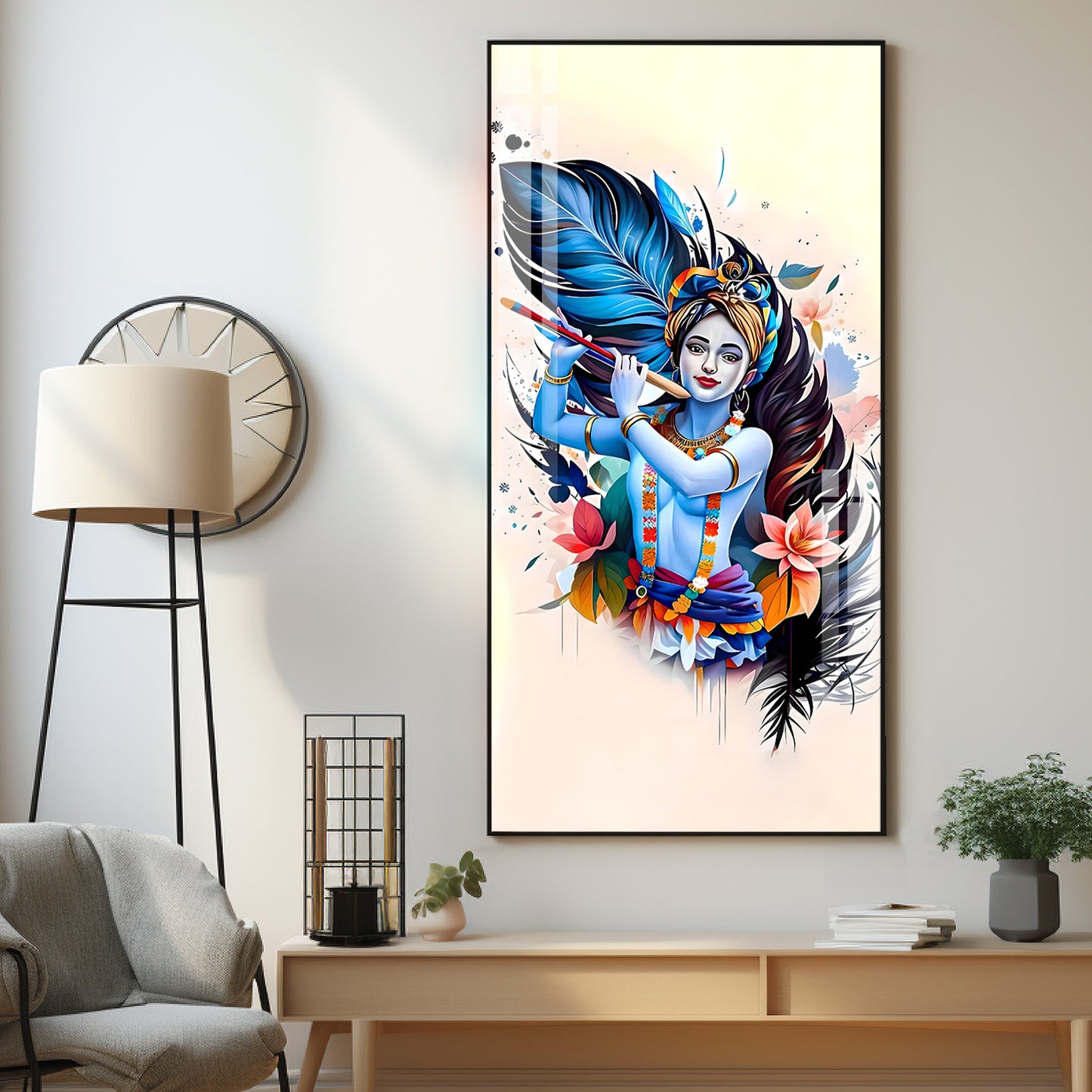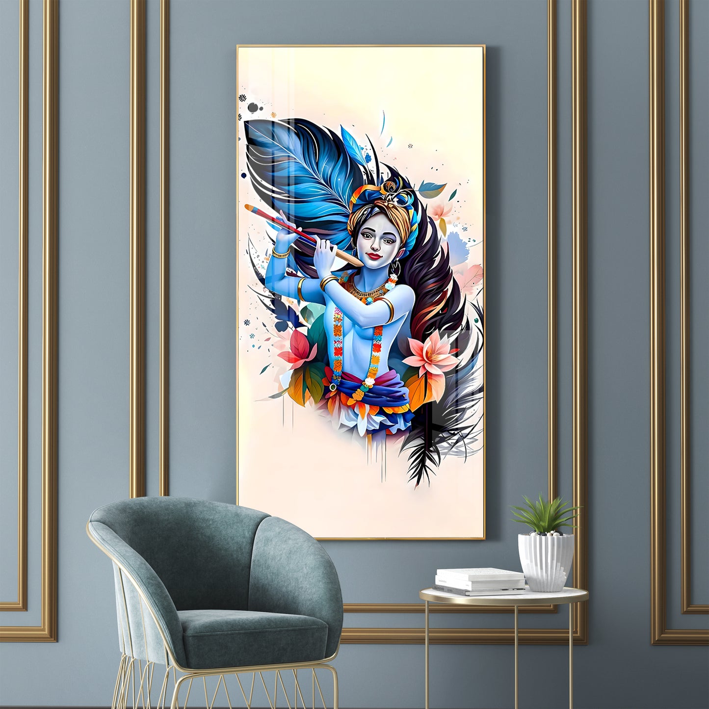 Colorful Krishna Premium Acrylic Vertical Wall Art