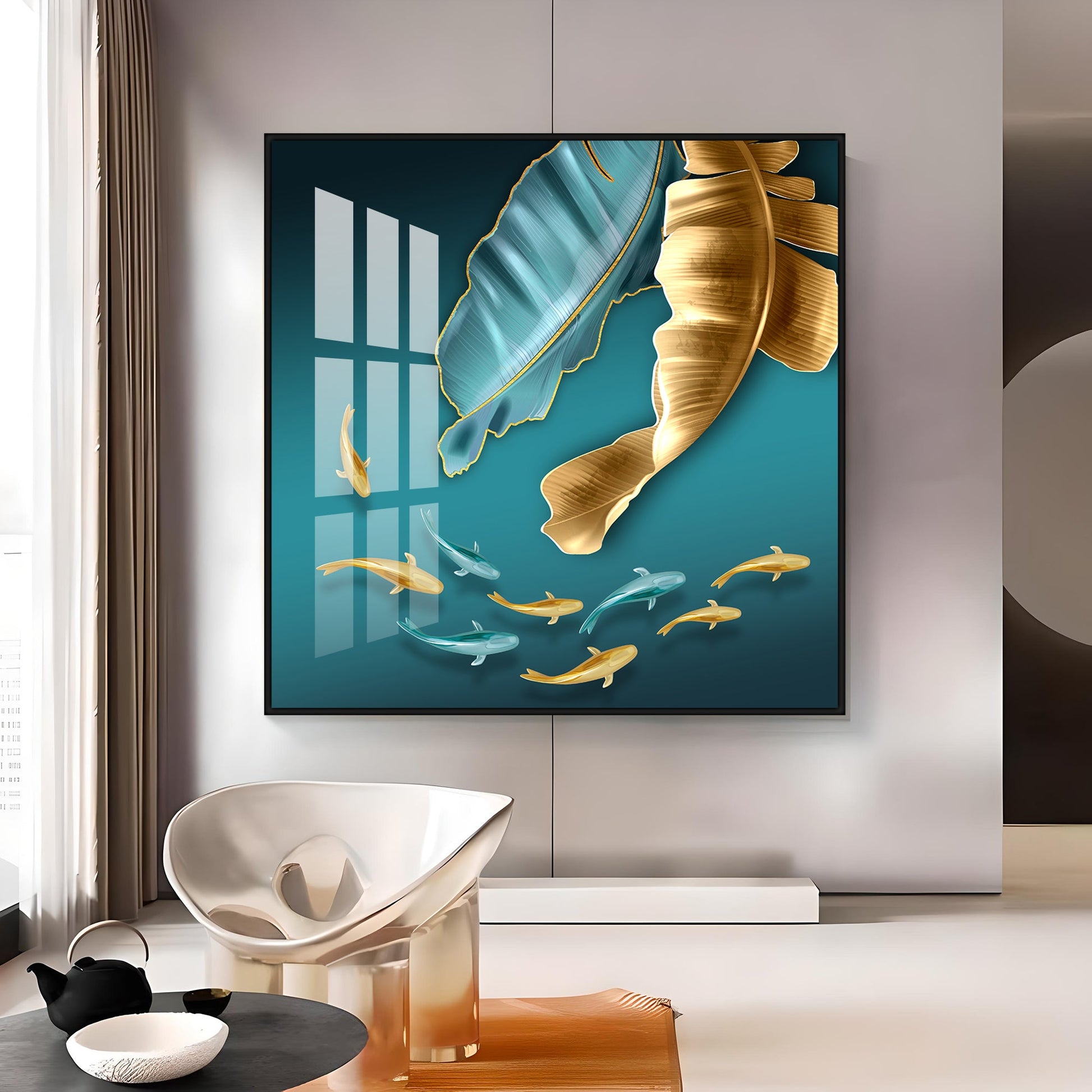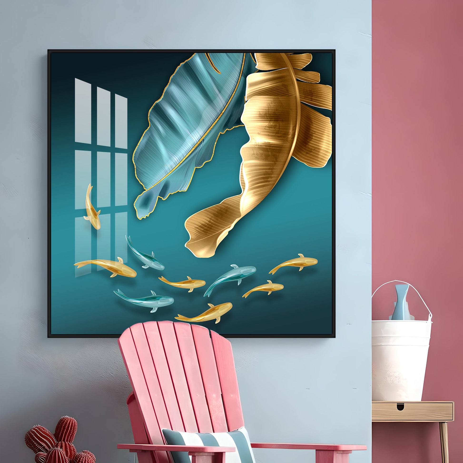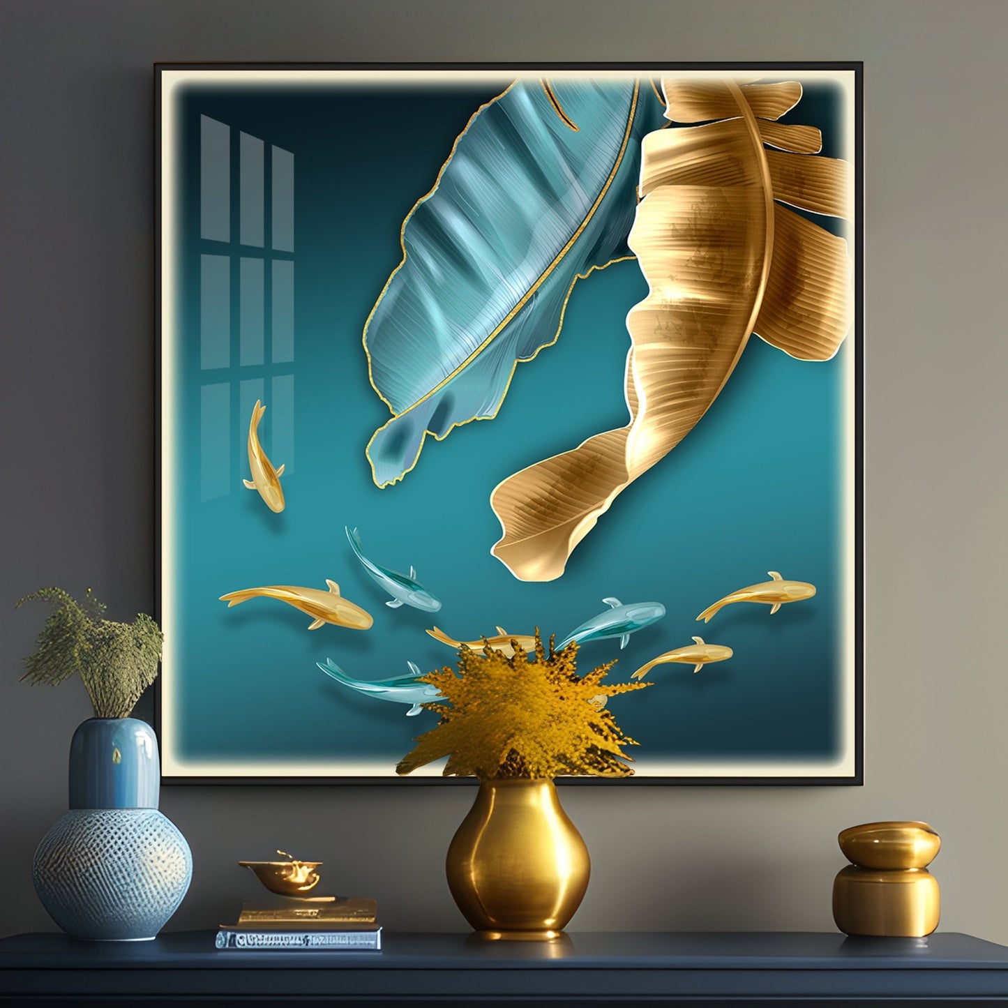 Beautiful Ropical Leaf Luxury Crystal Square Wall Art