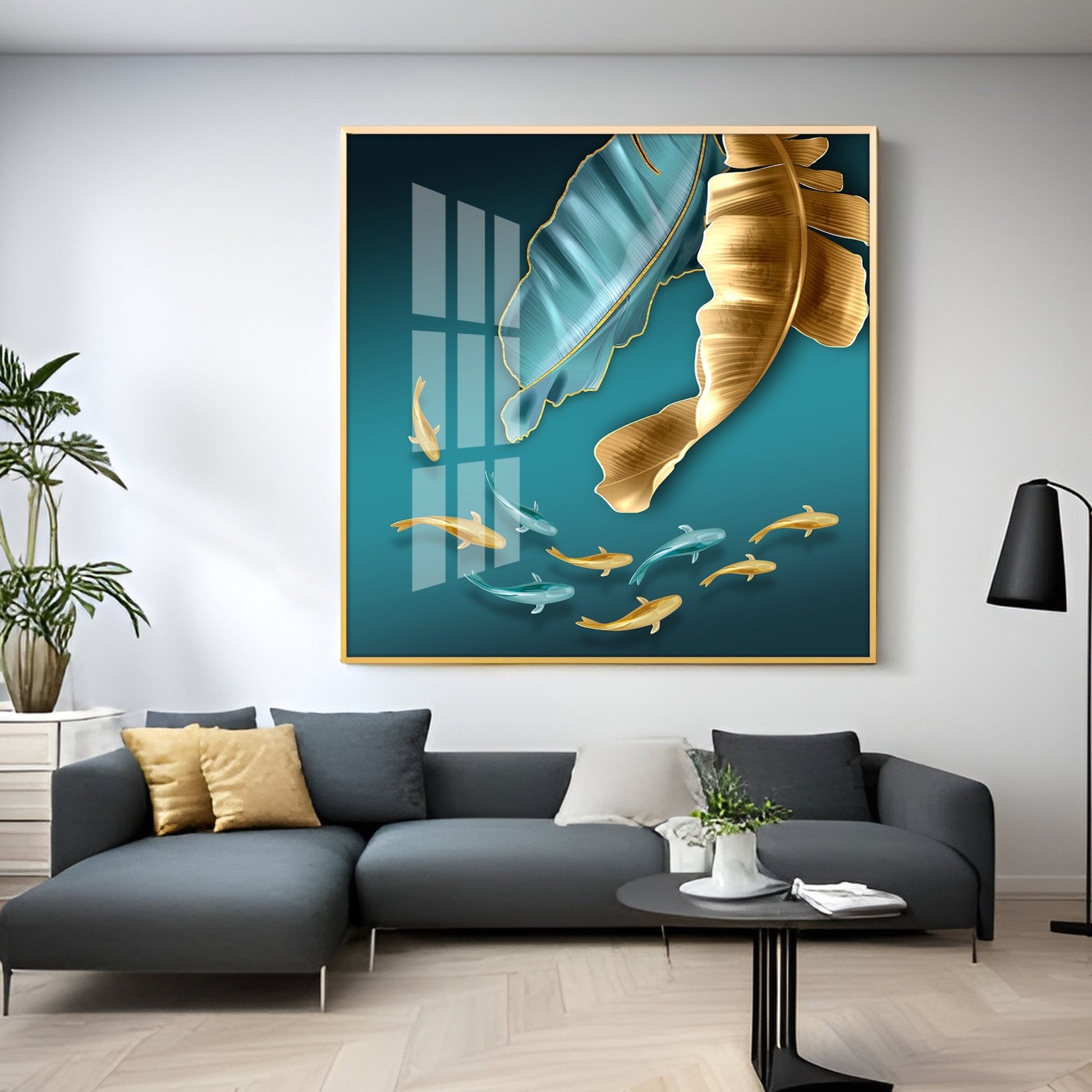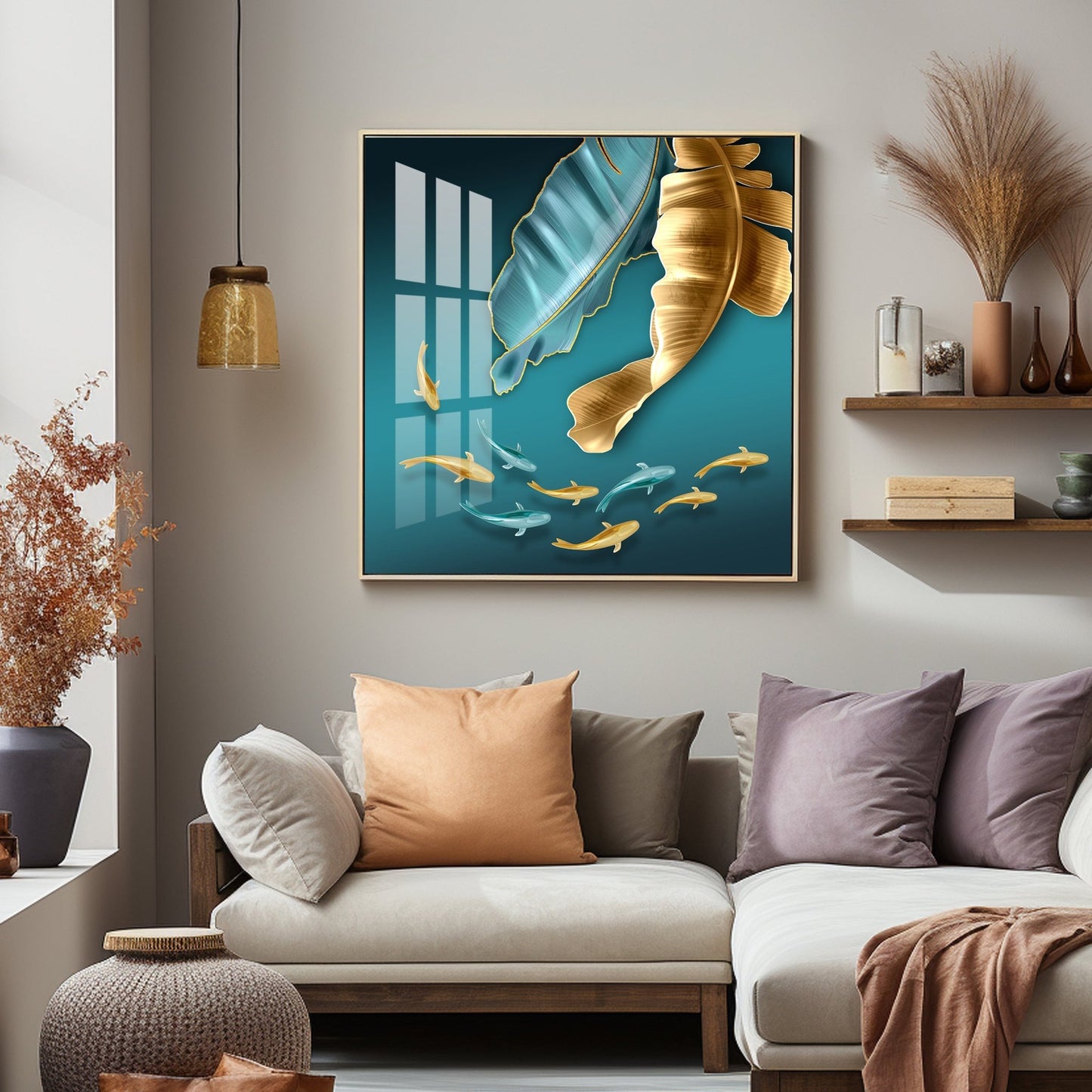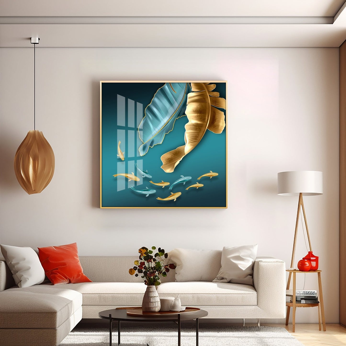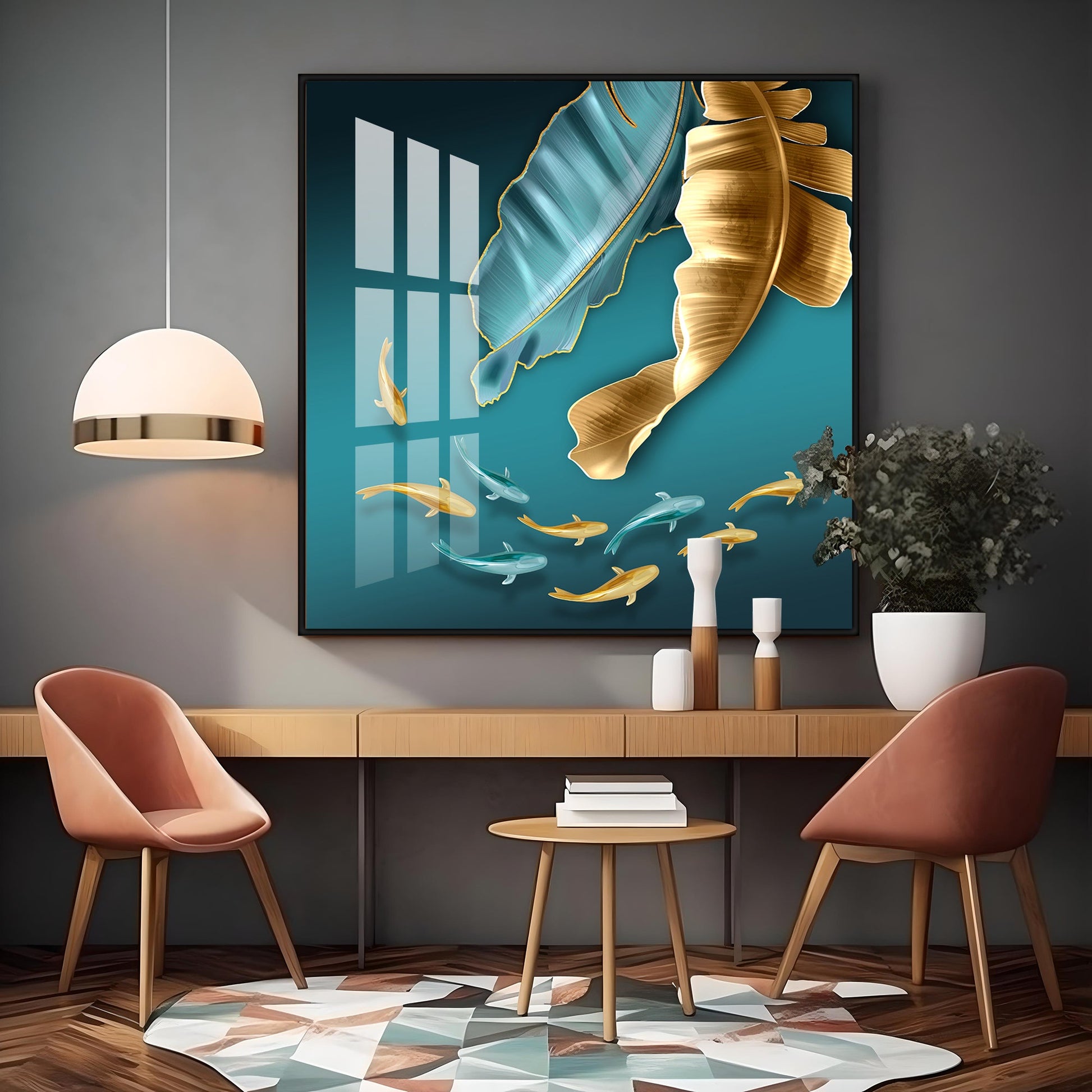 Beautiful Ropical Leaf Luxury Crystal Square Wall Art