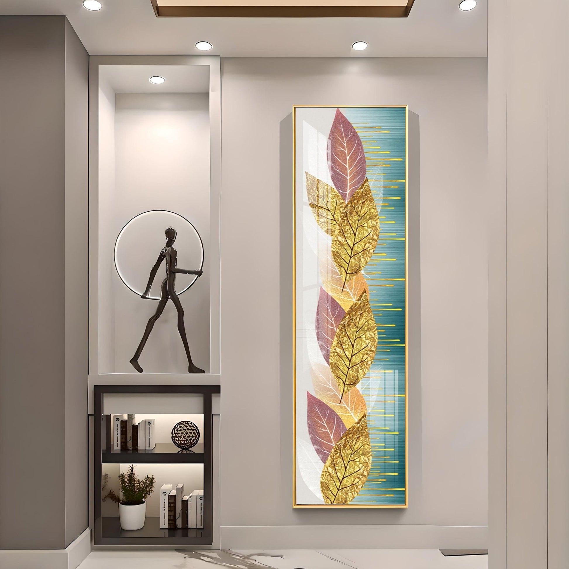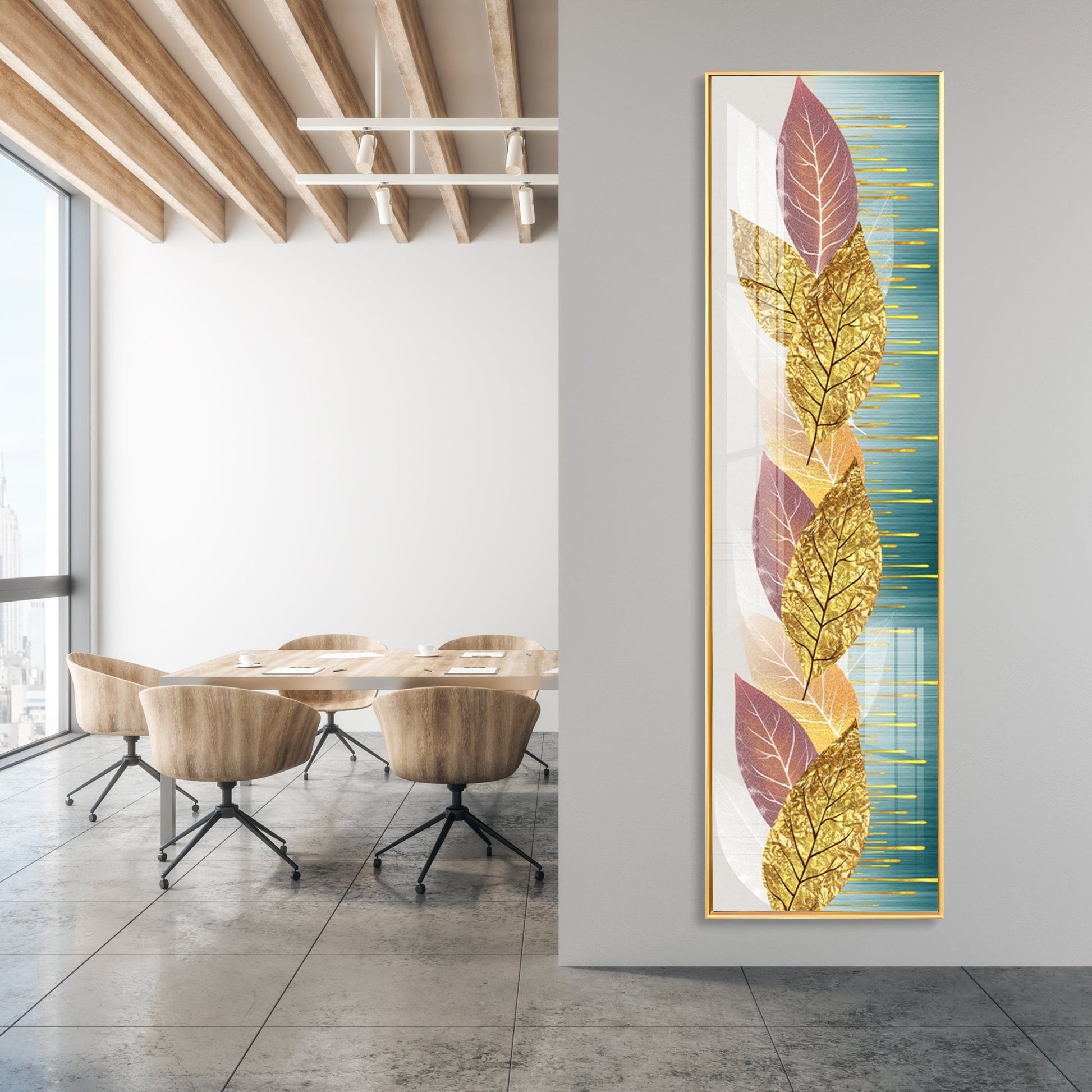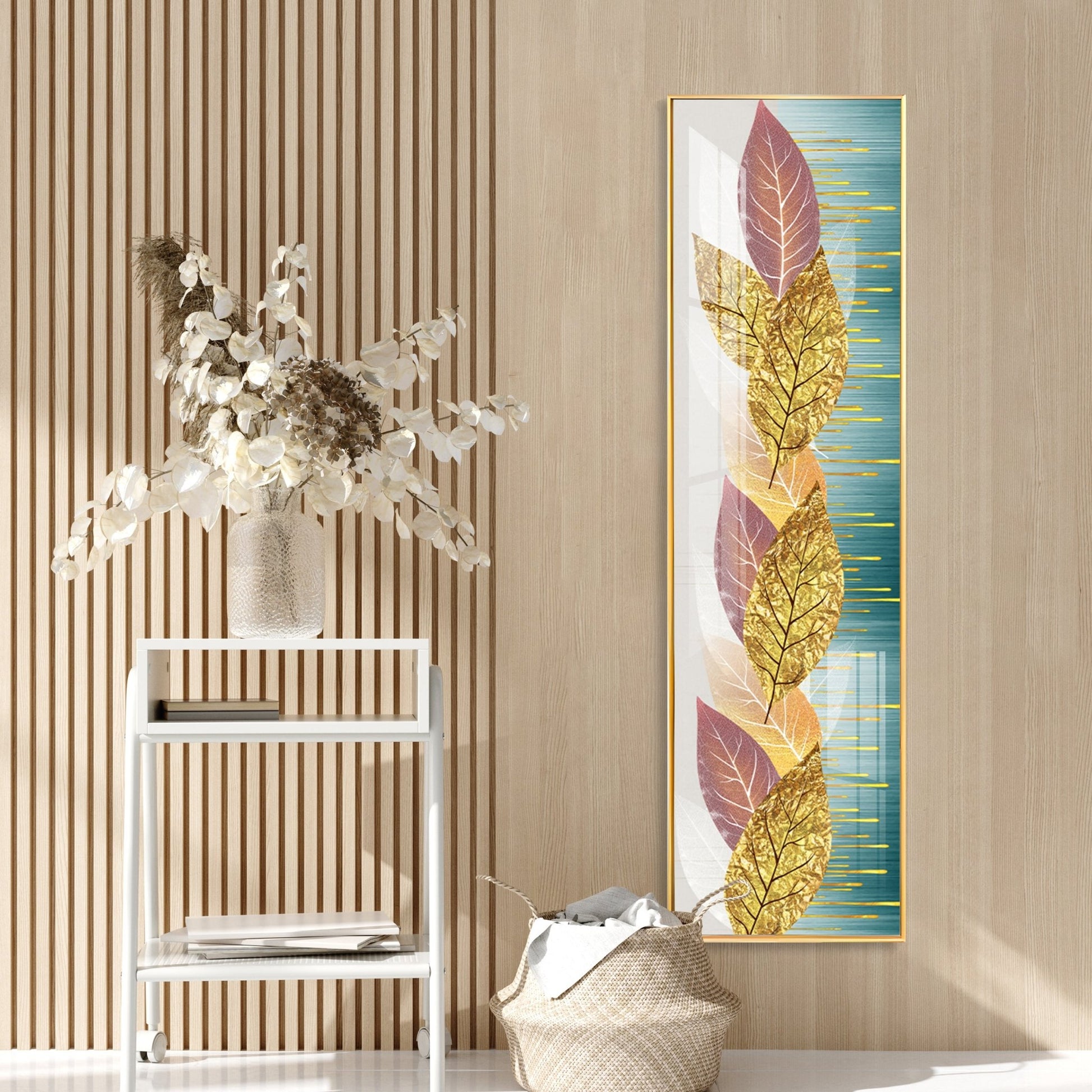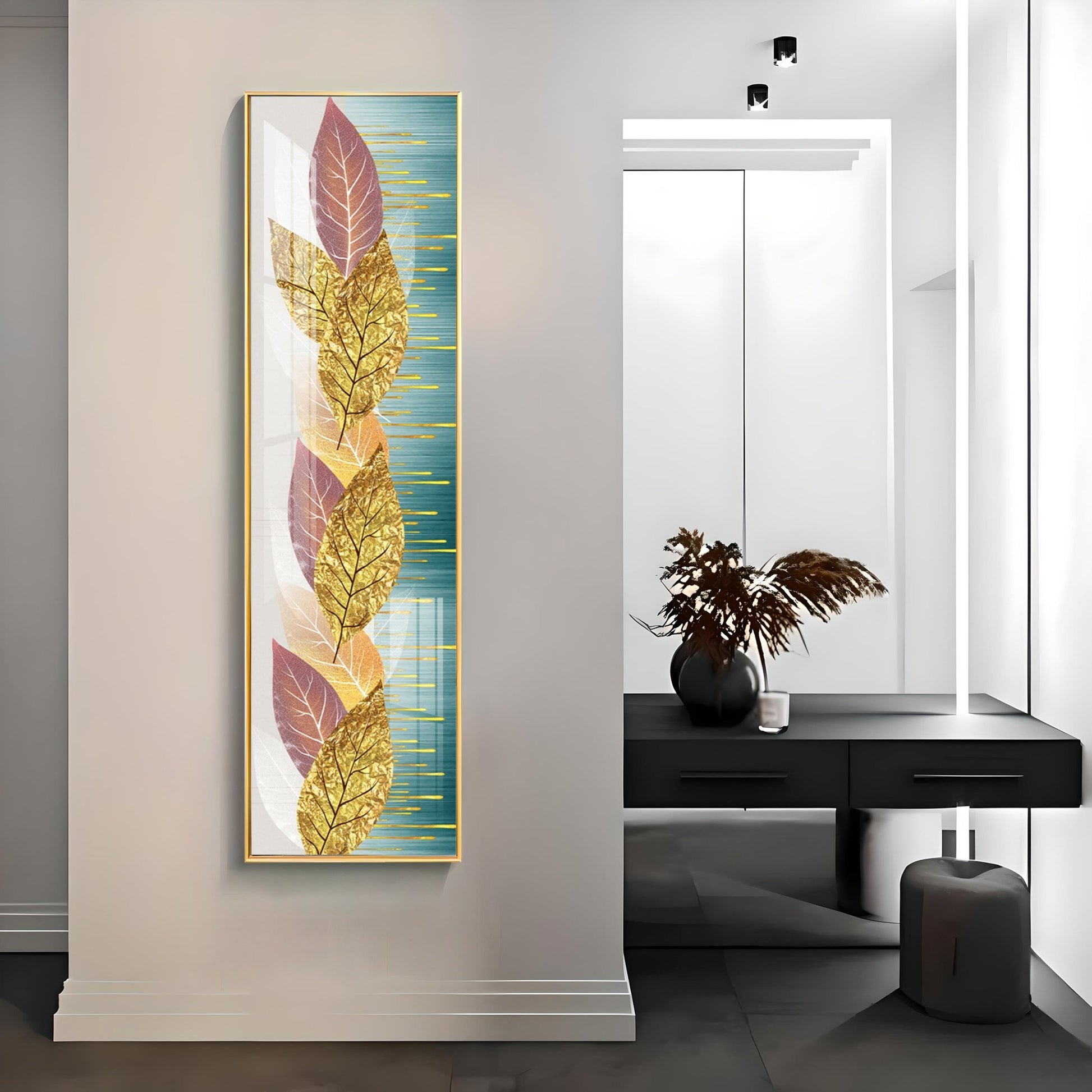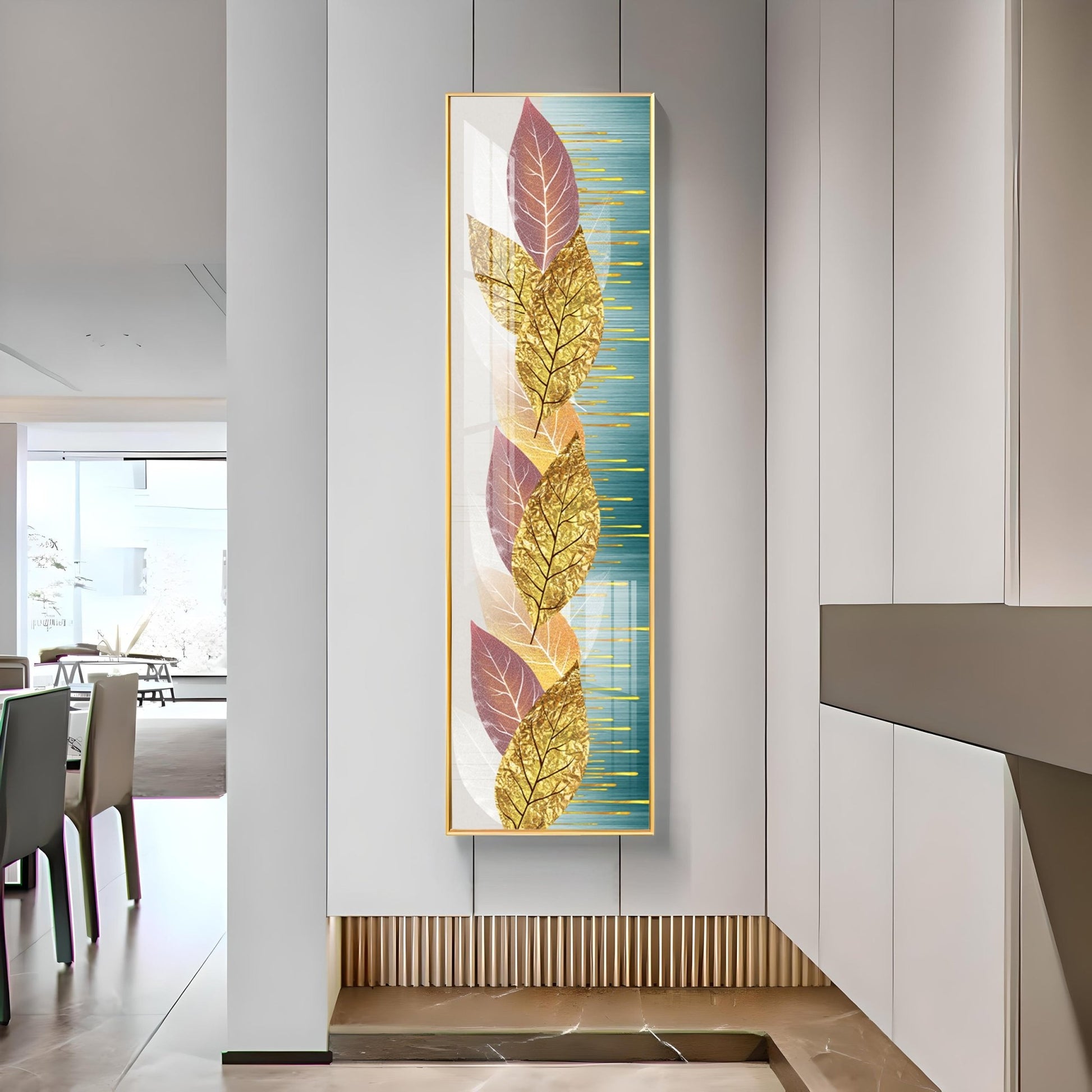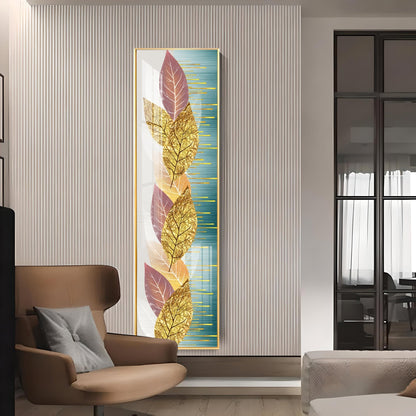 Beautiful Shiny Leaves Luxury Crystal Vertical Wall Art