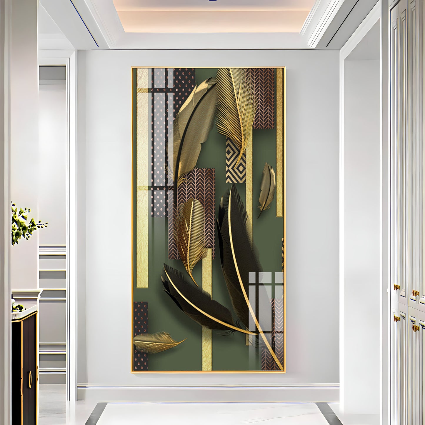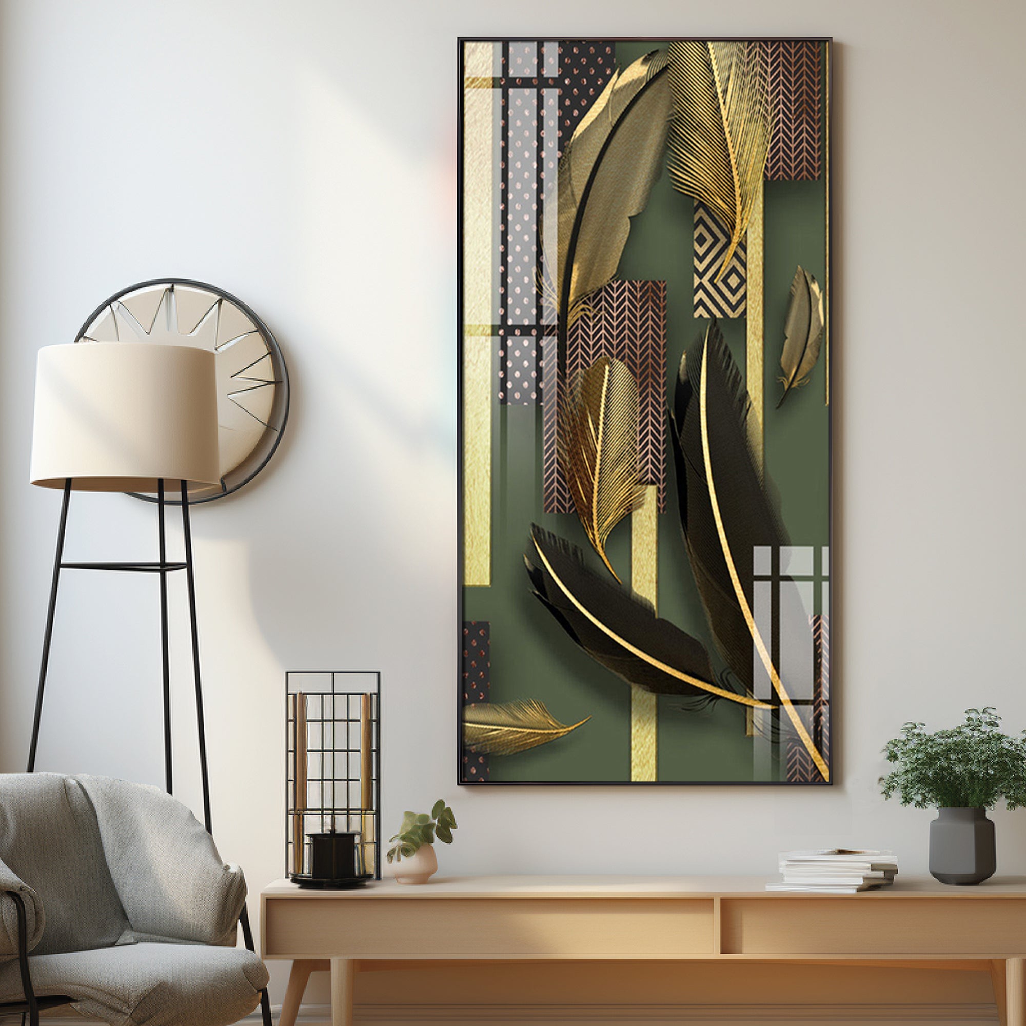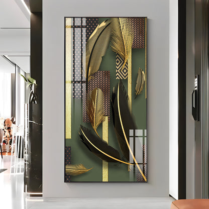 Black & Golden Feathers Premium Acrylic Vertical Wall Art