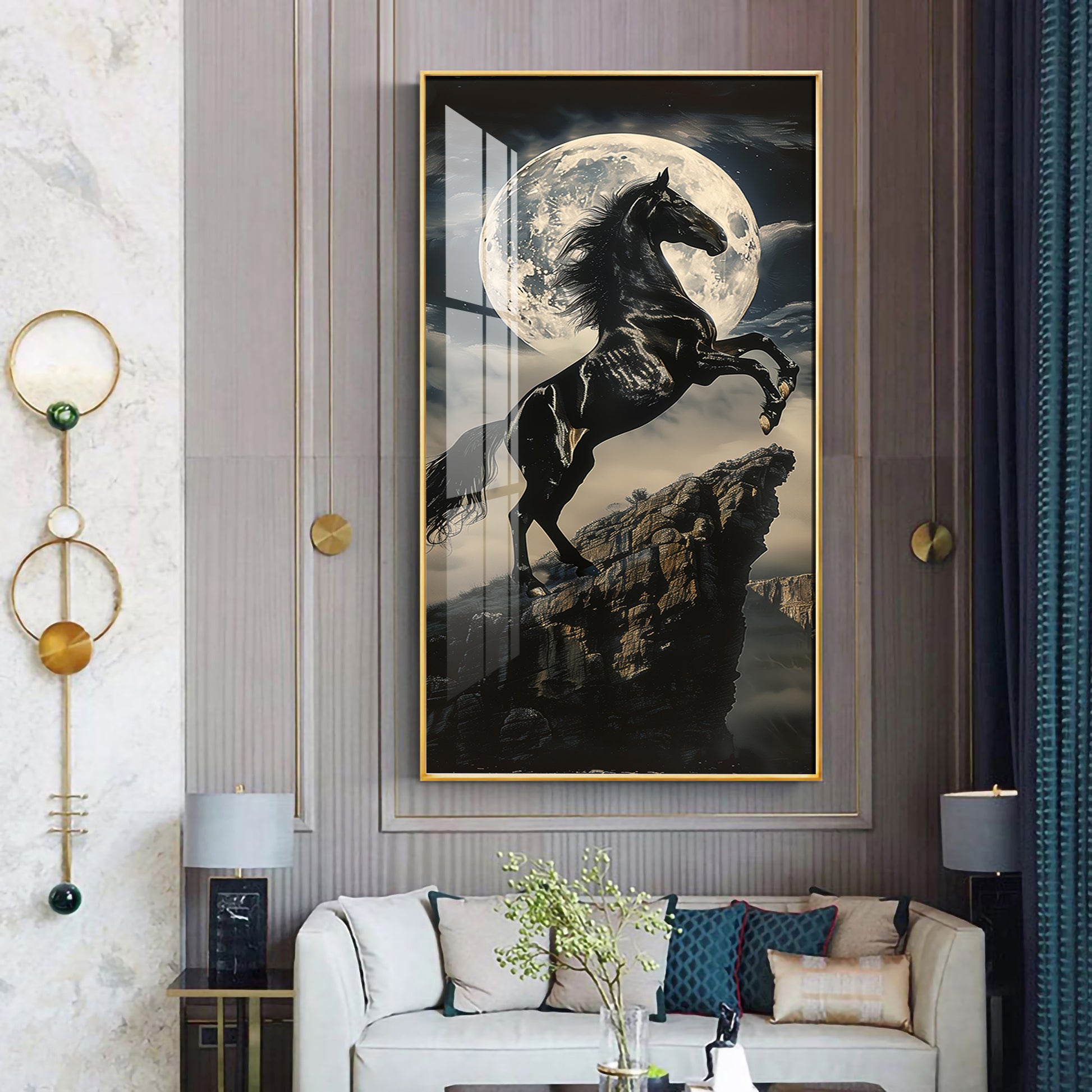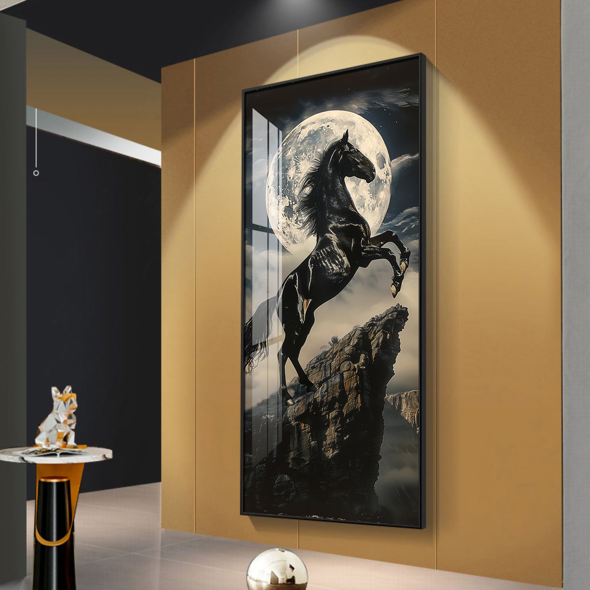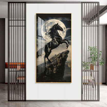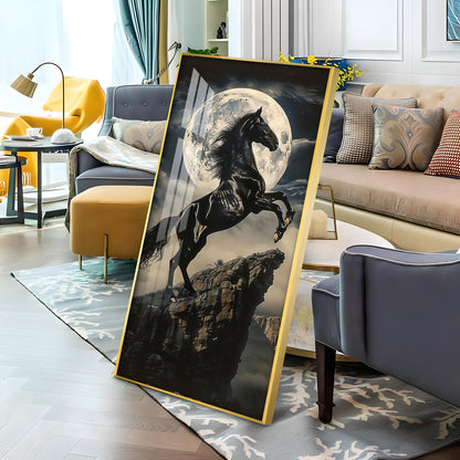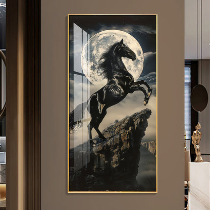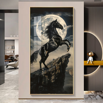 Black Horse On Rocky Cliff Premium Acrylic Vertical Wall Art