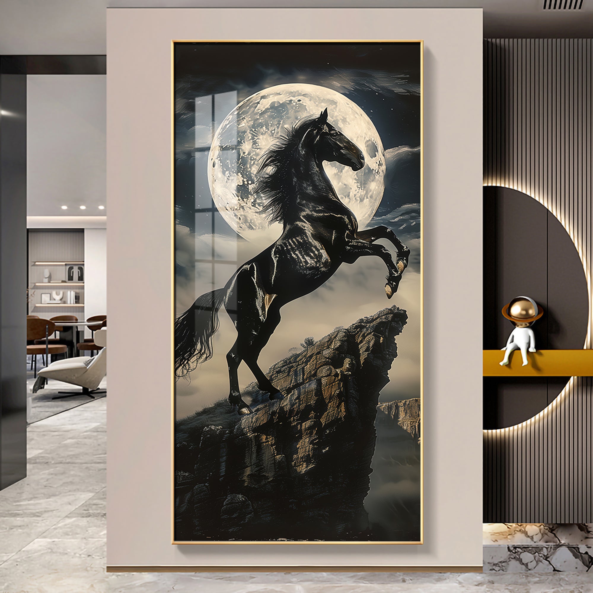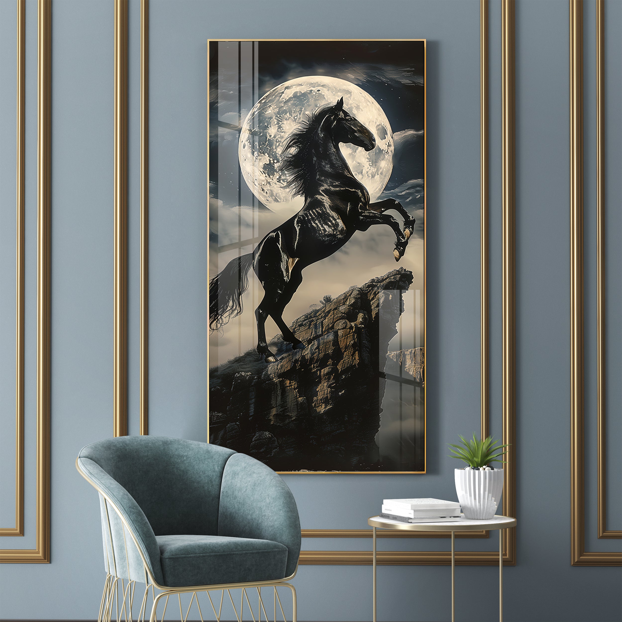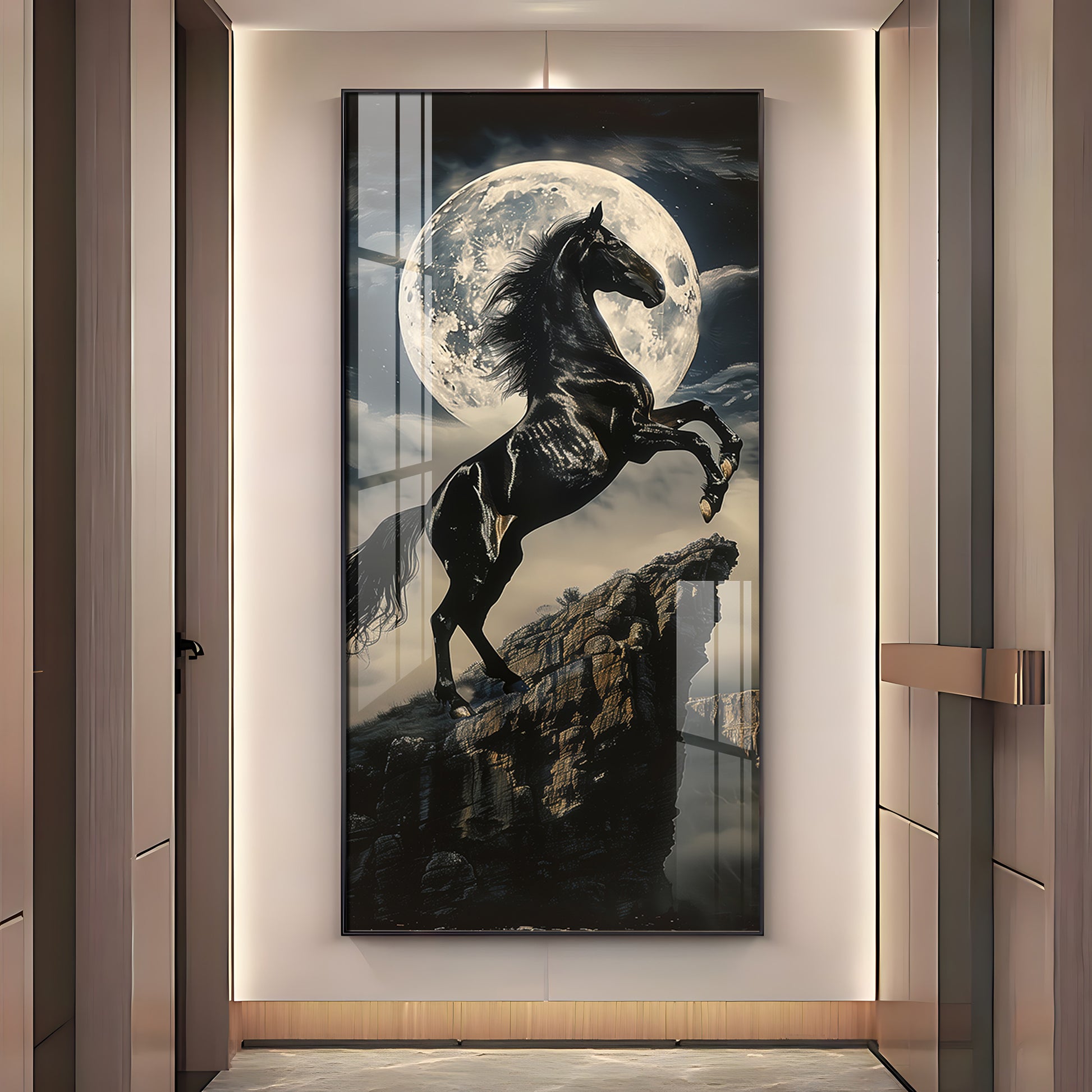 Black Horse On Rocky Cliff Premium Acrylic Vertical Wall Art