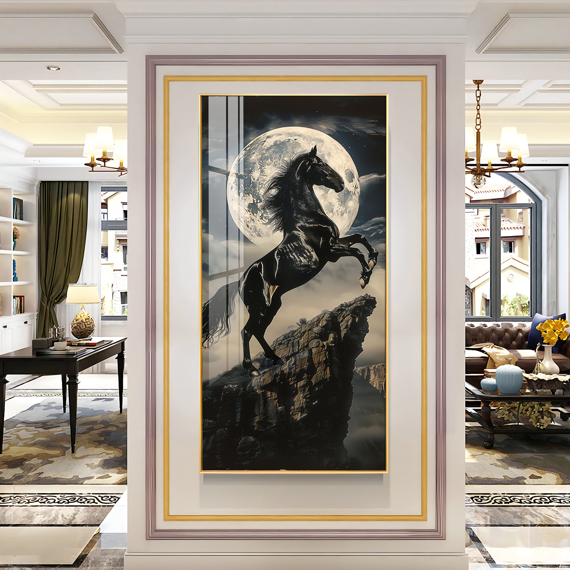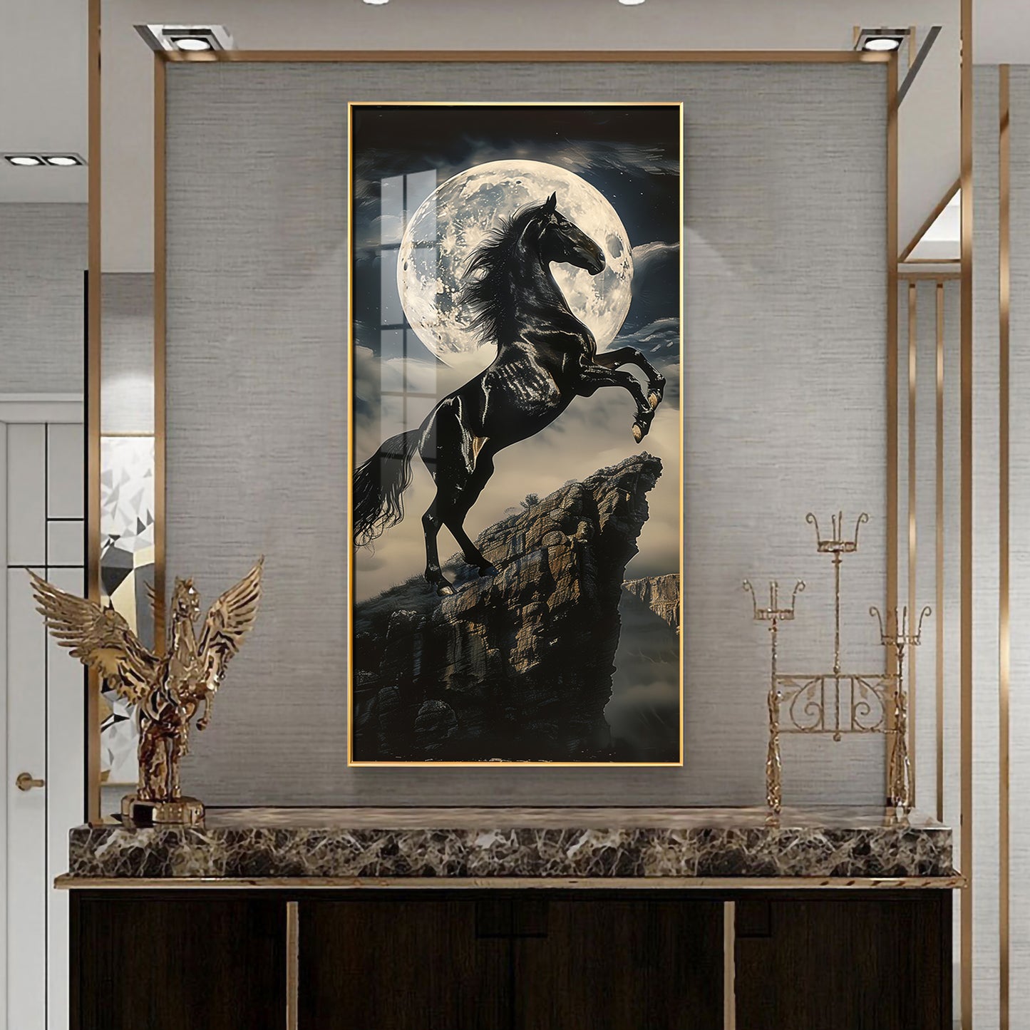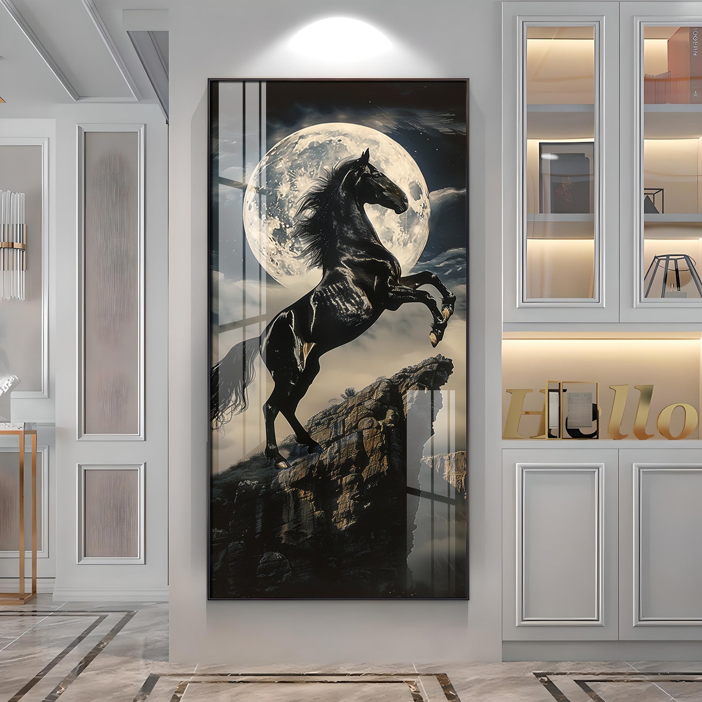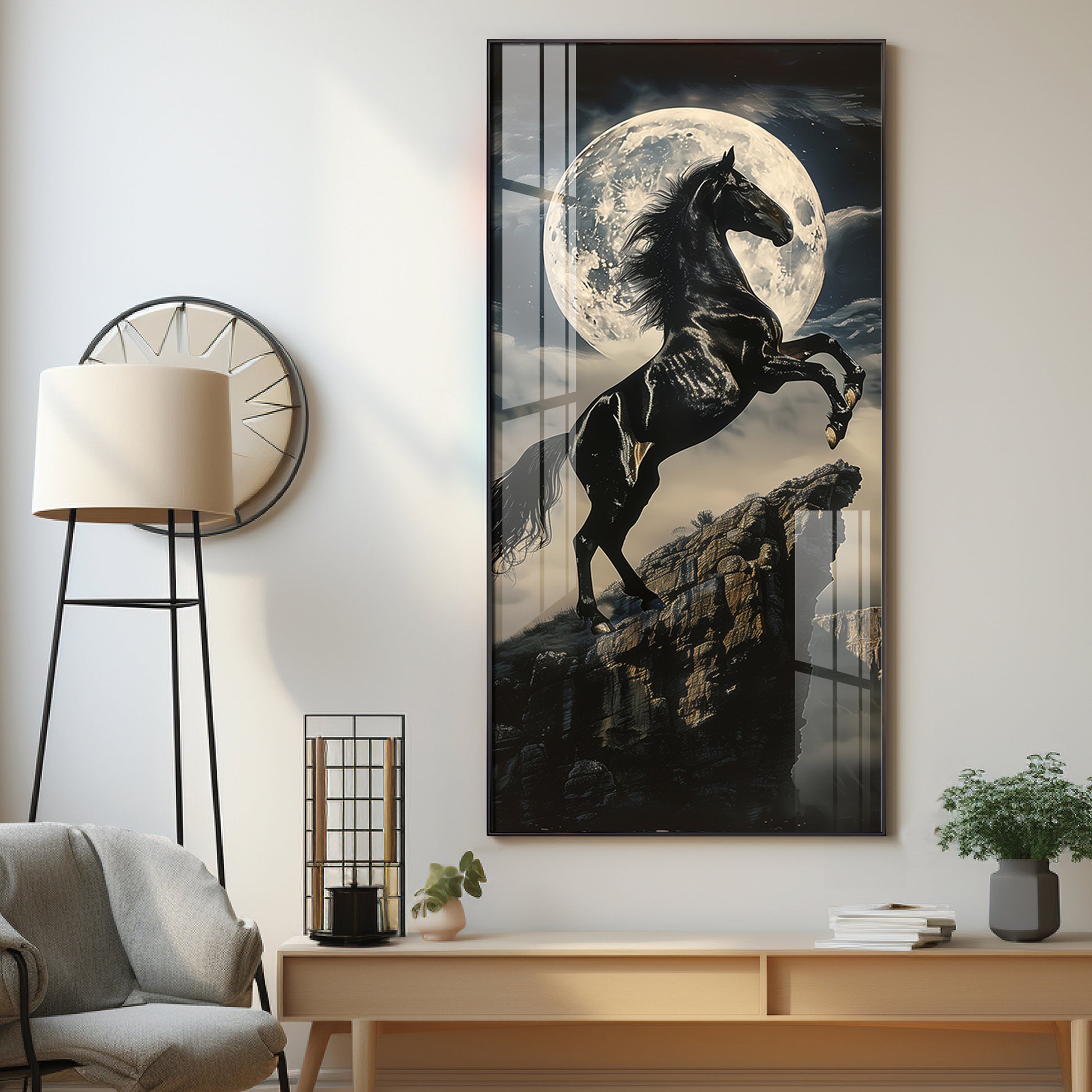 Our Framed Acrylic Wall Art is easy to hang. The metal hooks are included on the corners of your ordered wall art. You can simply mount it to your wall.