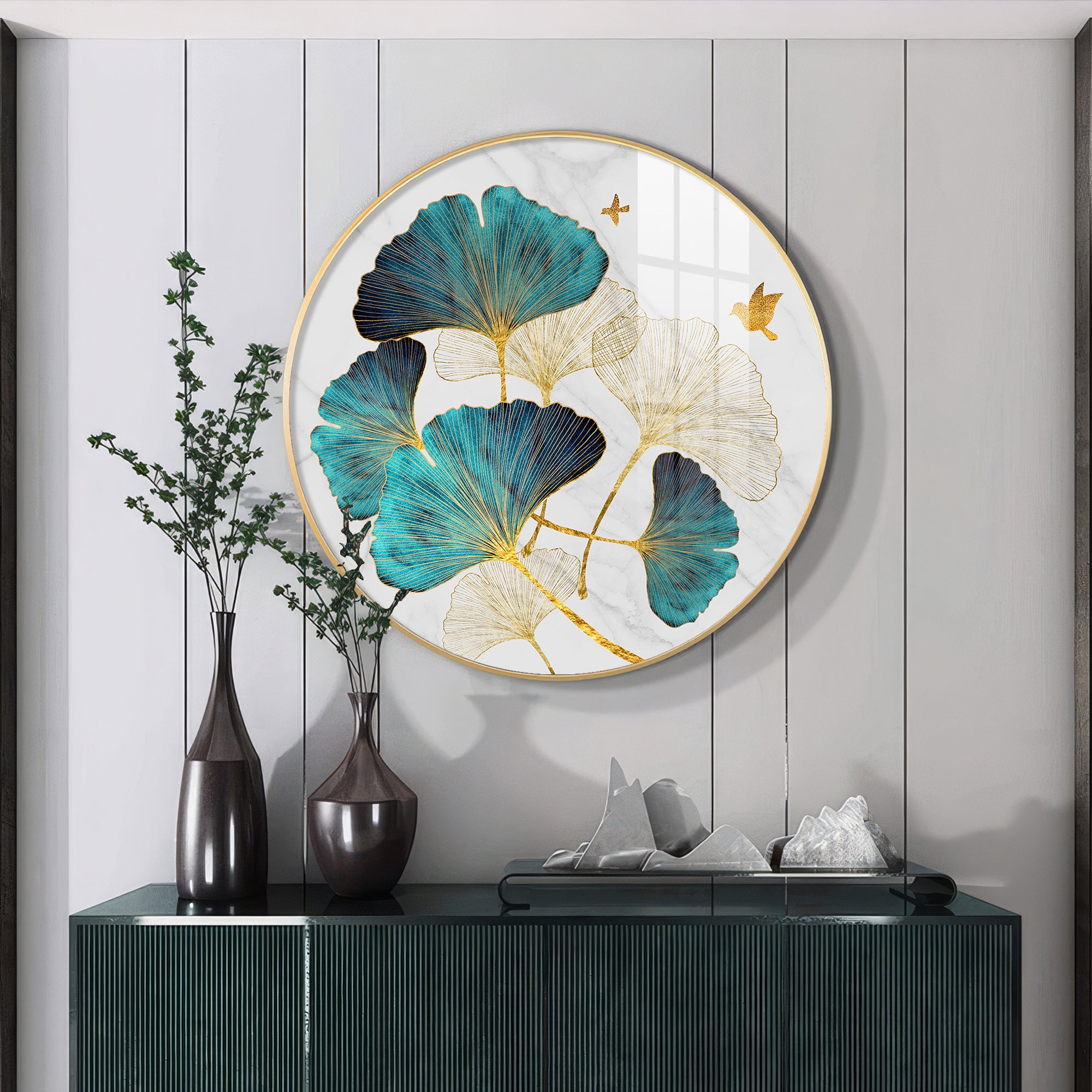 Blue Leaf Premium Acrylic Round Wall Art