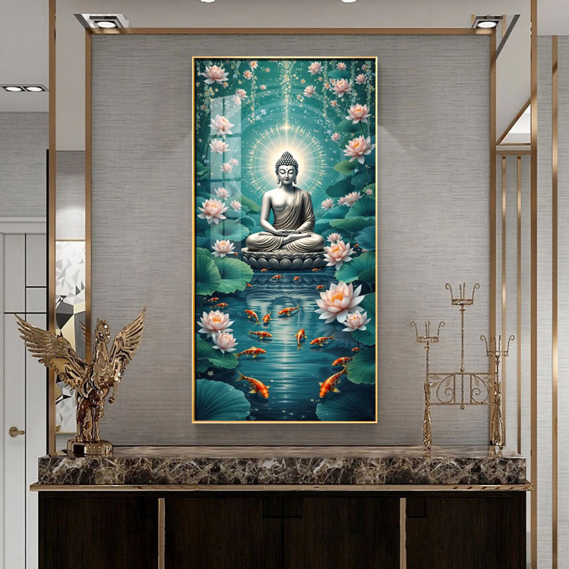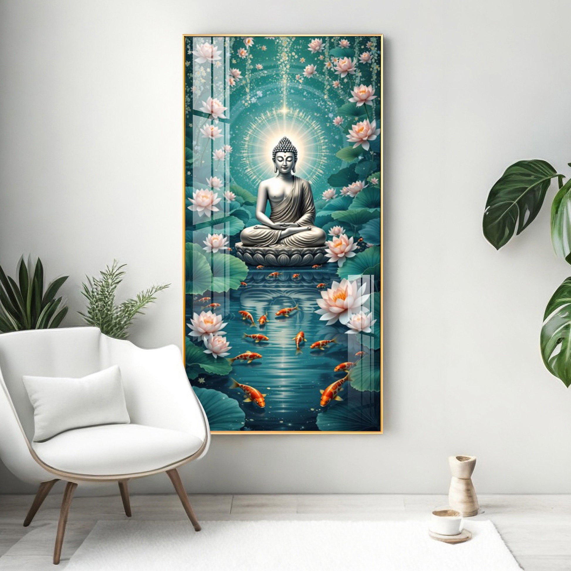 Buddha And The Fish Premium Acrylic Vertical Wall Art