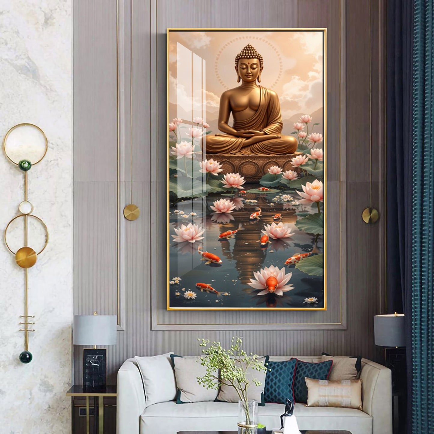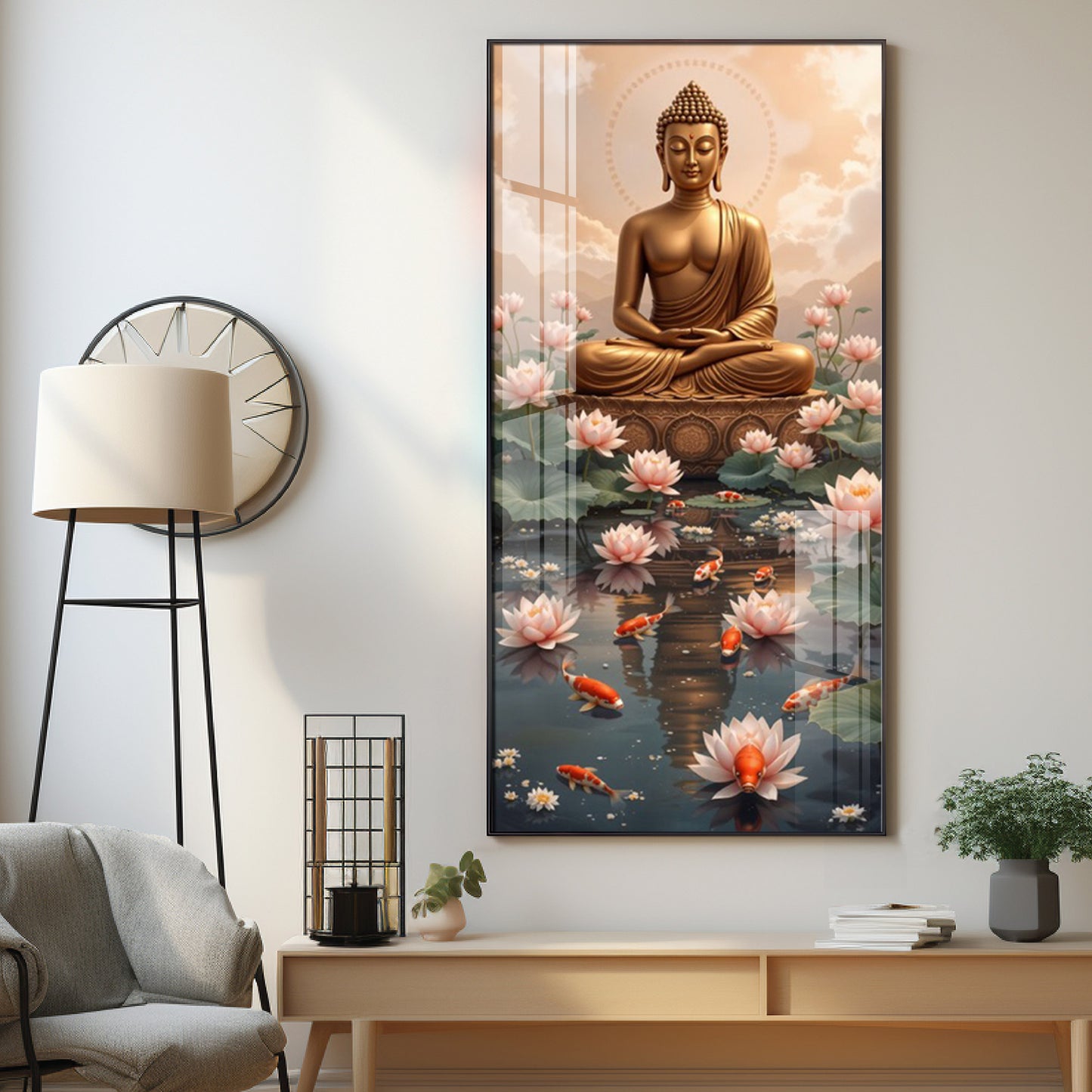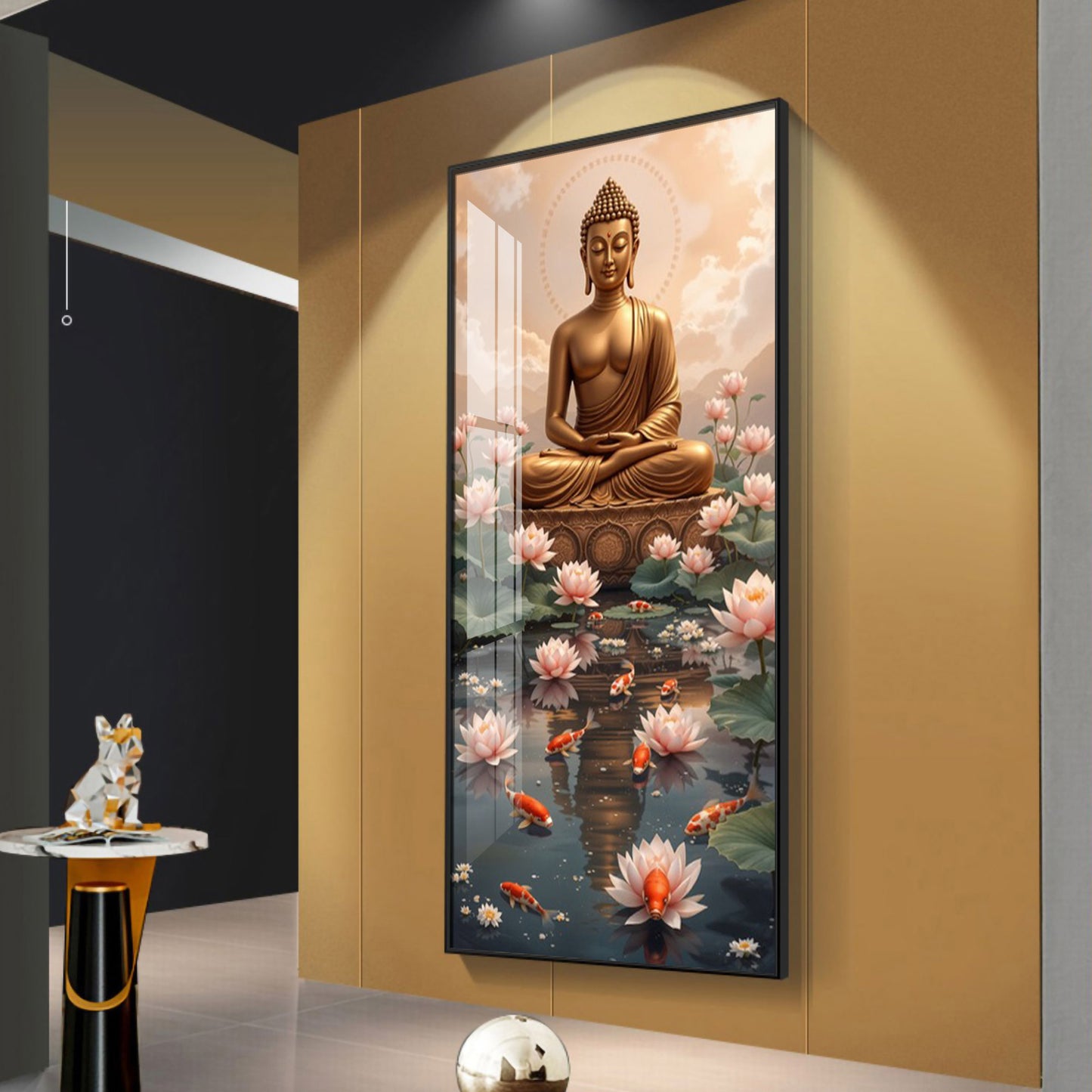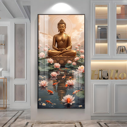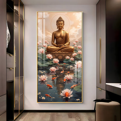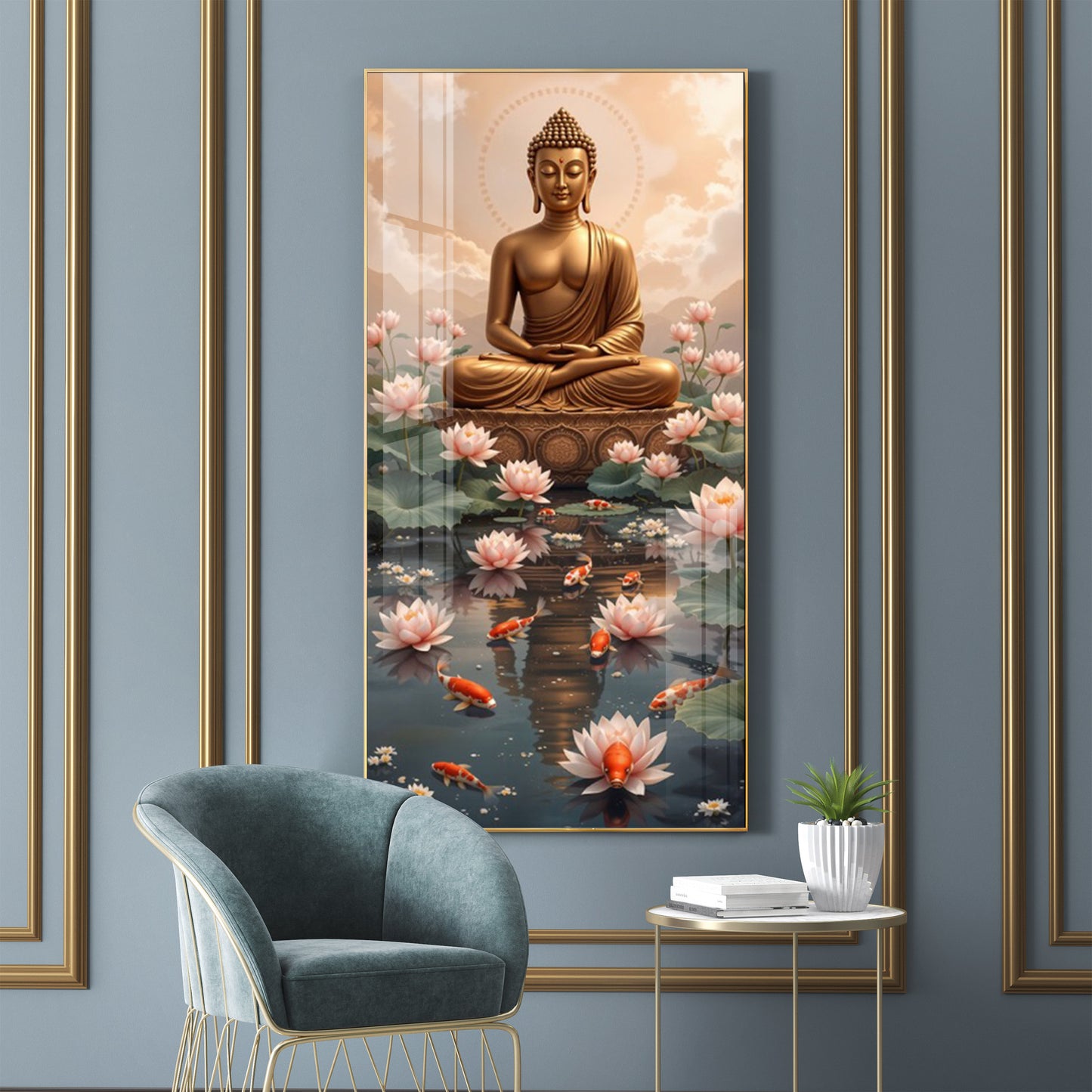 Buddha With Lotus Harmony Premium Acrylic Vertical Wall Art