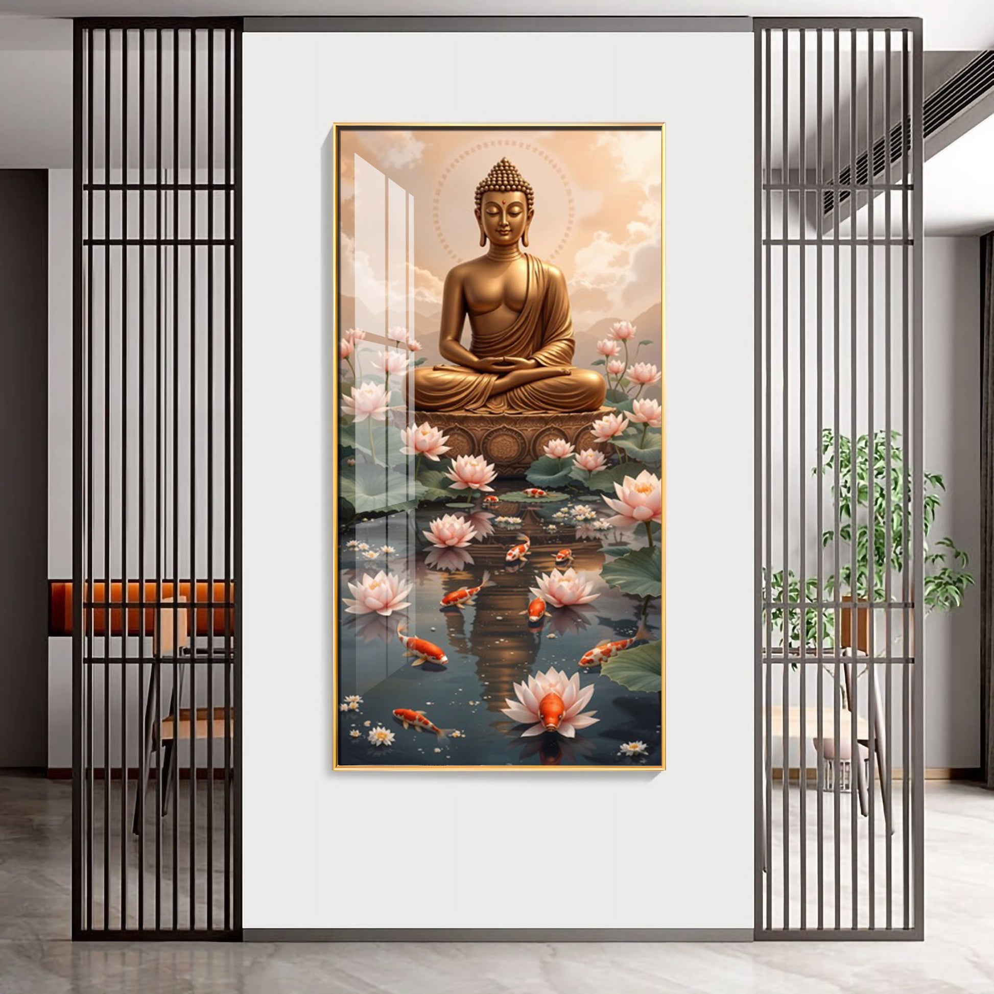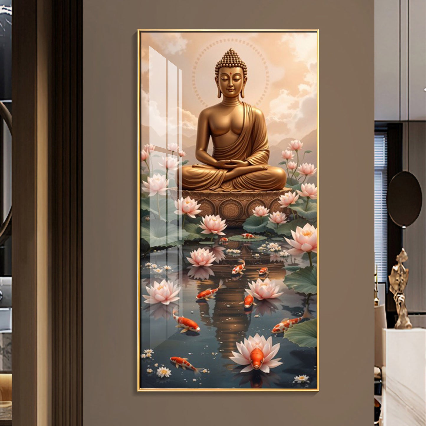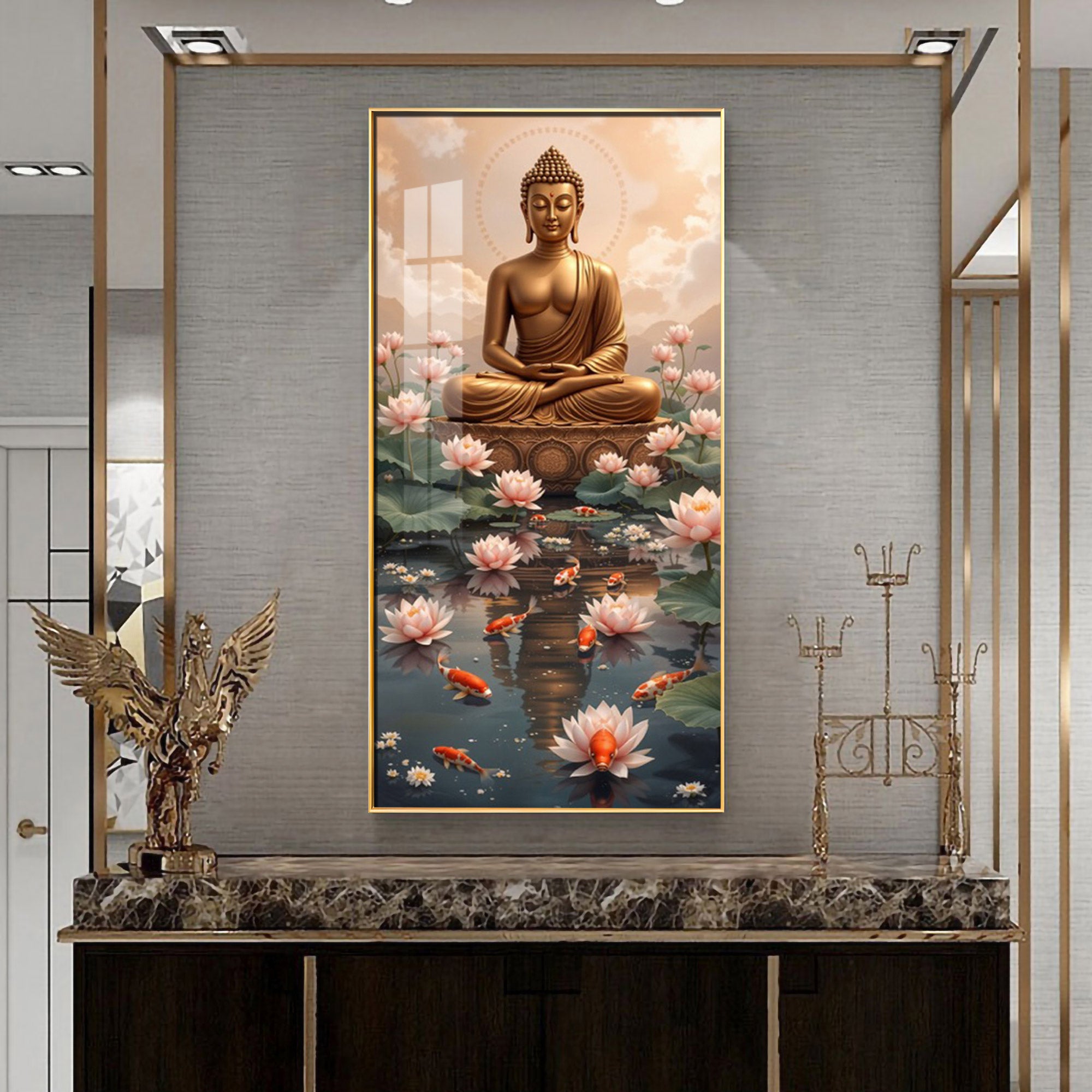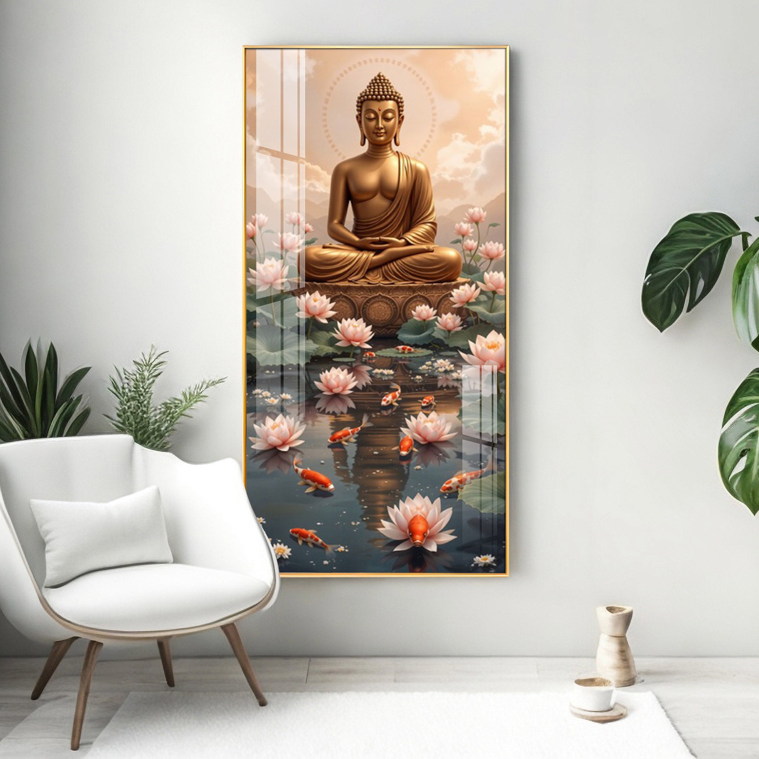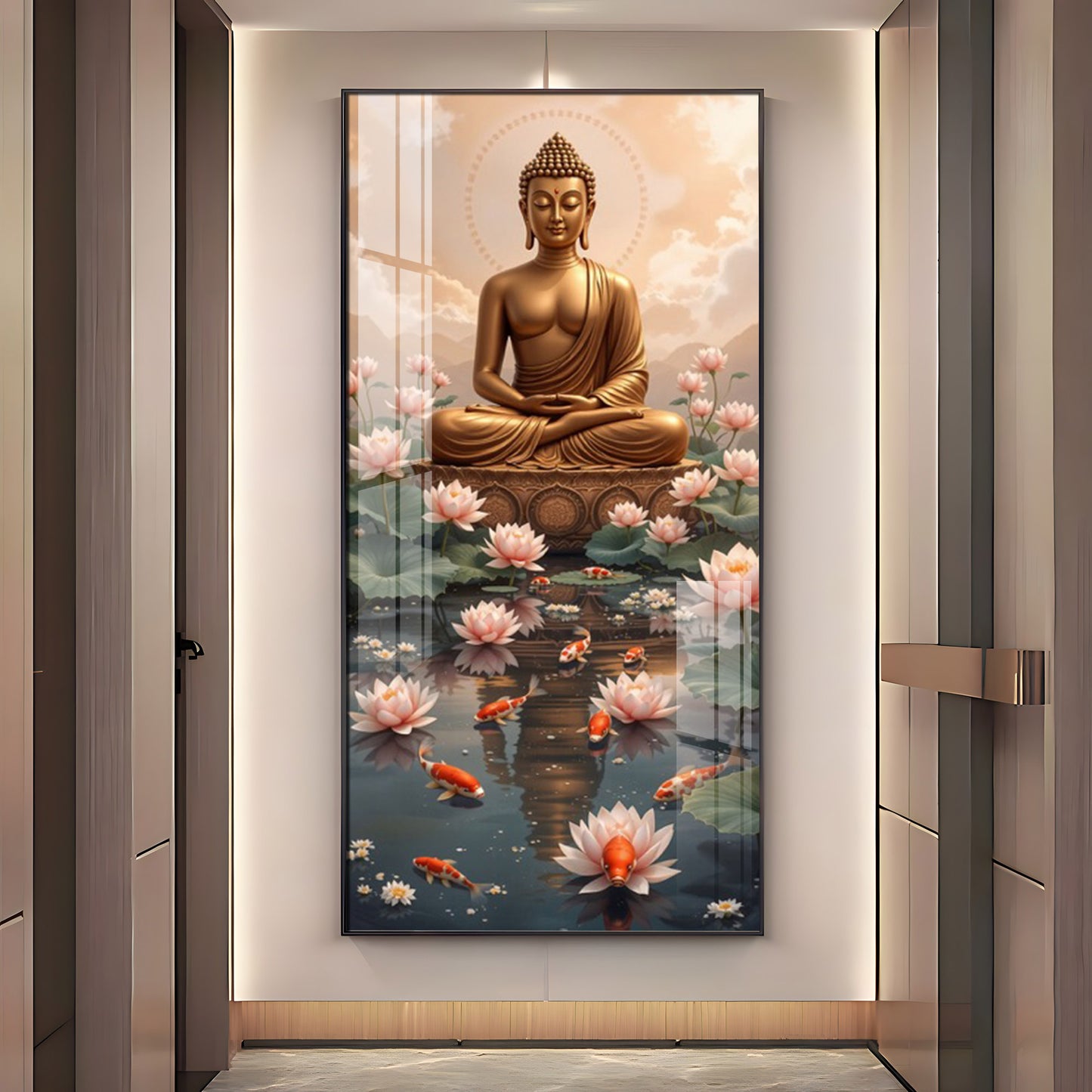 Buddha With Lotus Harmony Premium Acrylic Vertical Wall Art