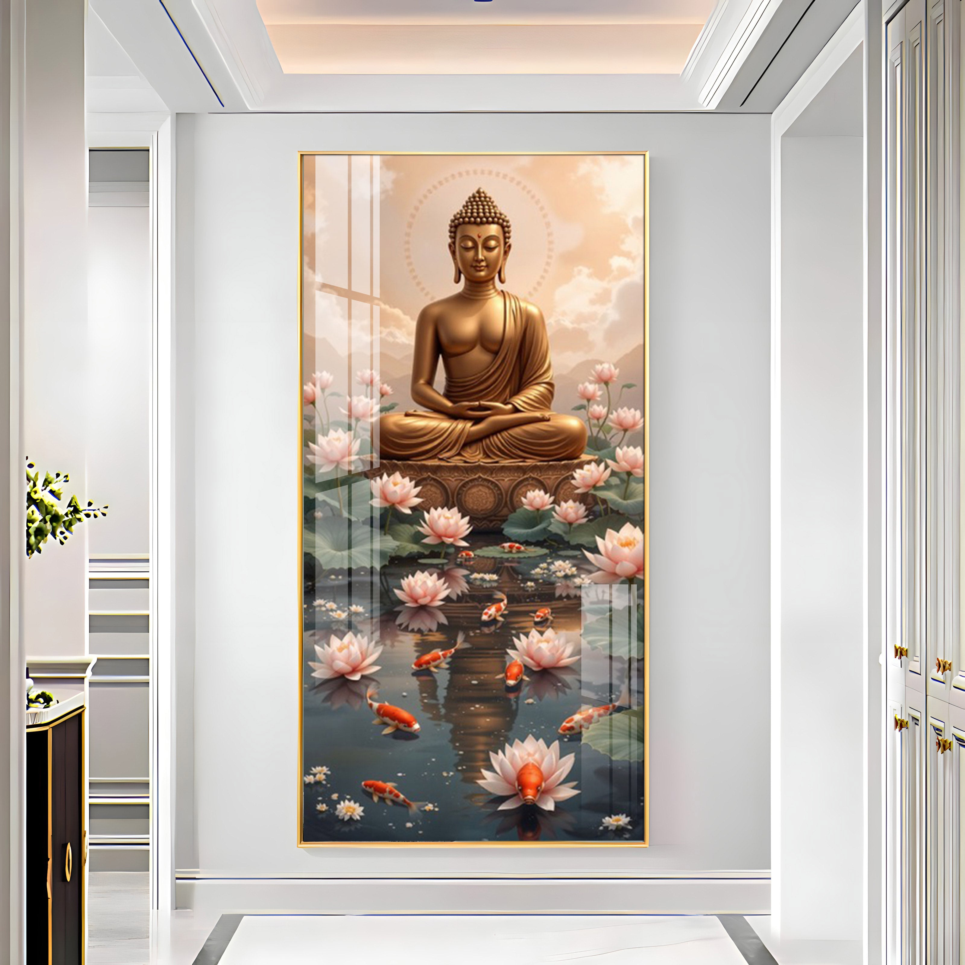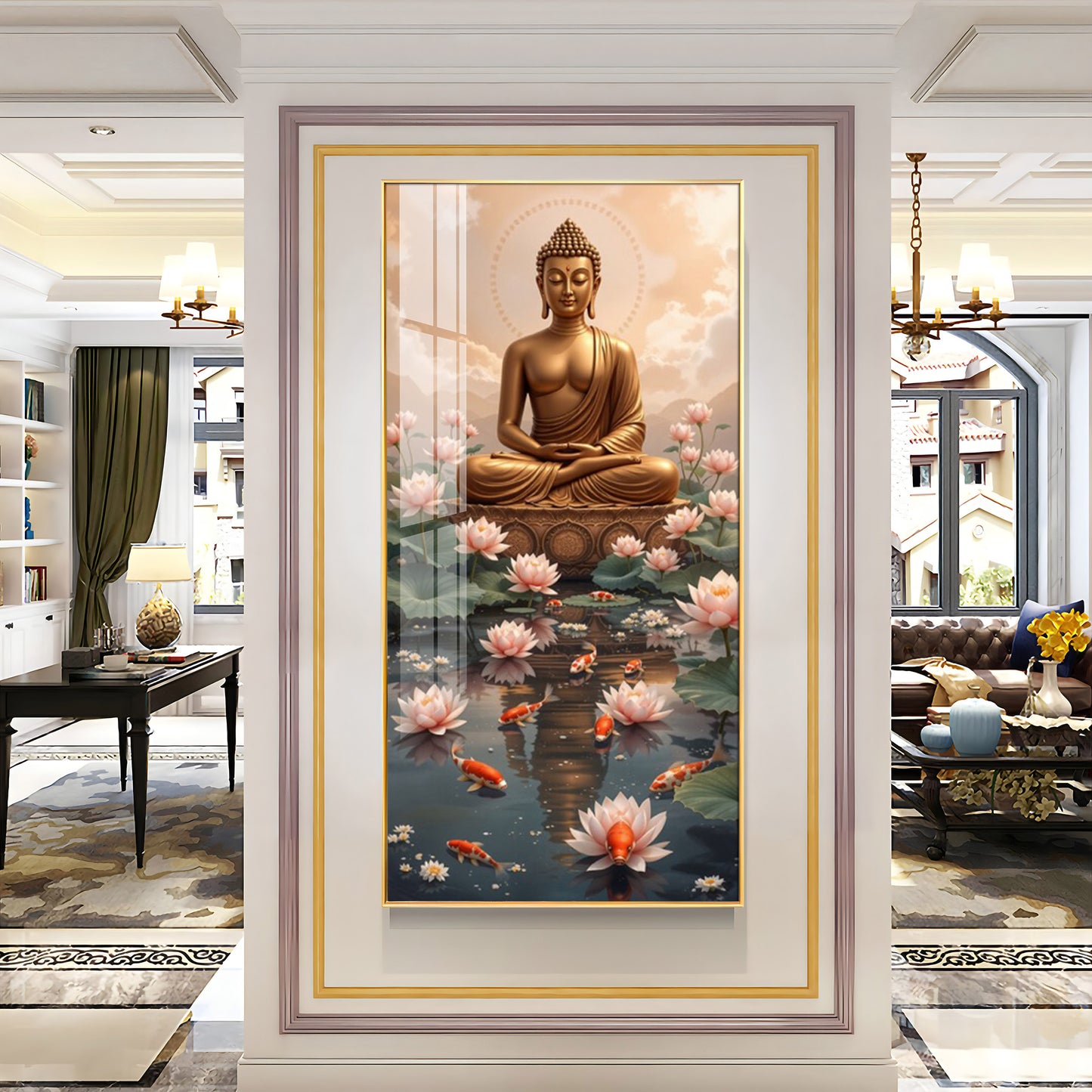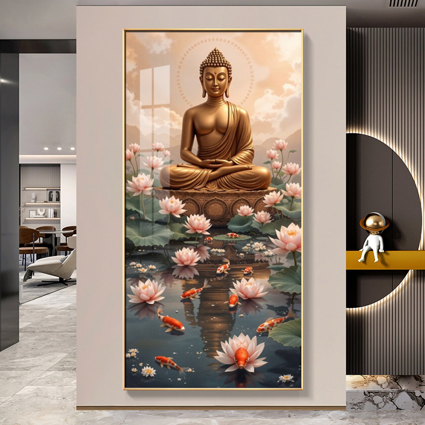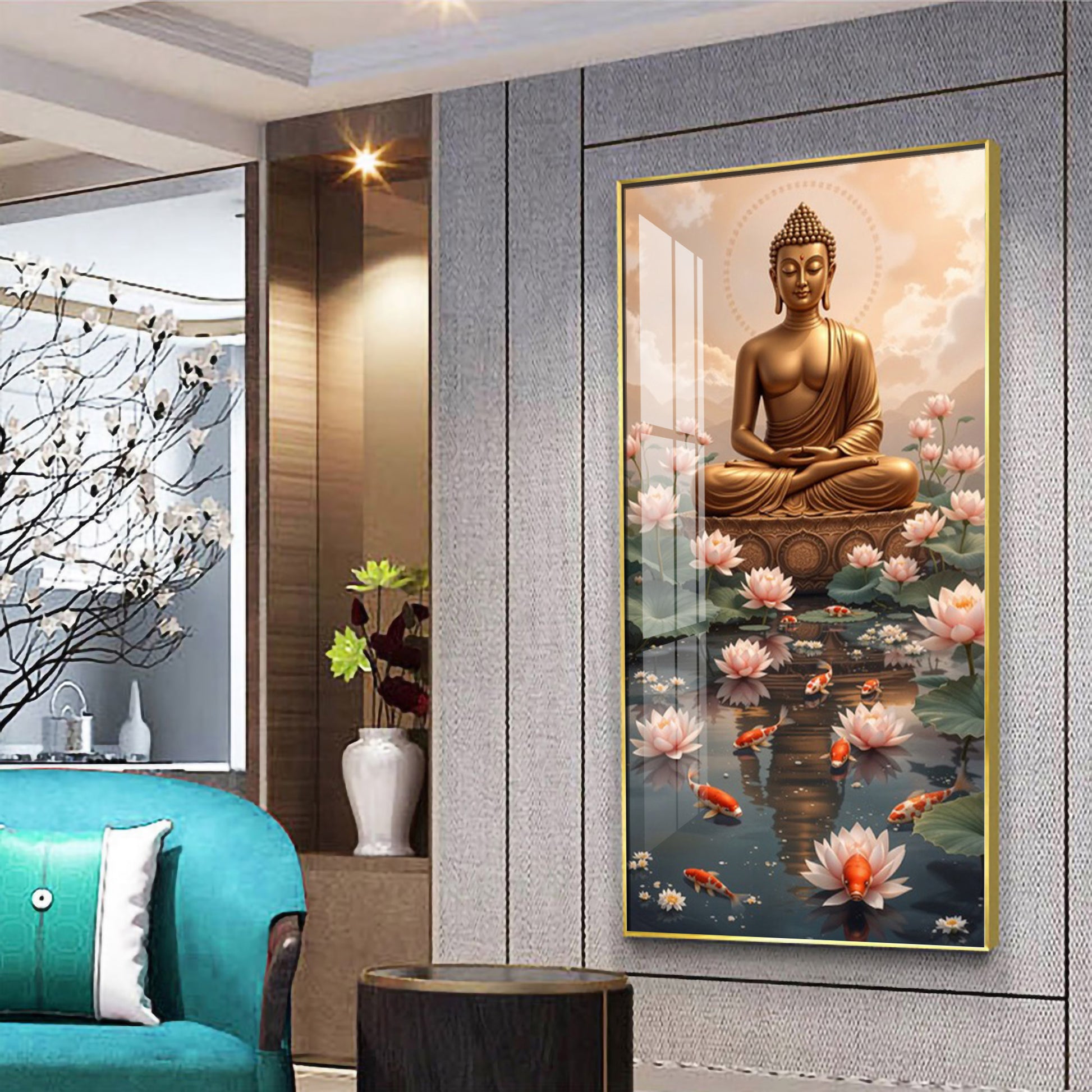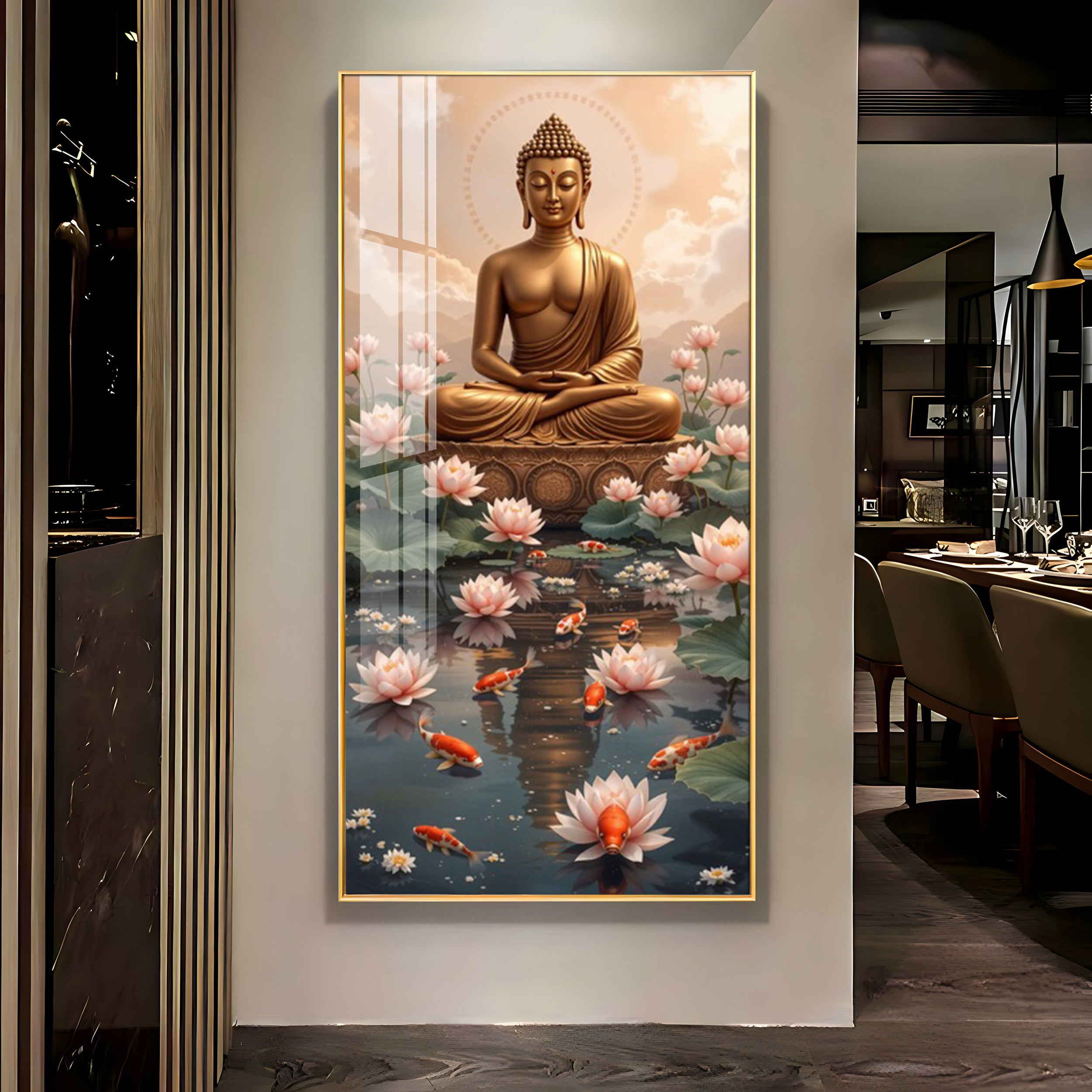 Buddha With Lotus Harmony Premium Acrylic Vertical Wall Art