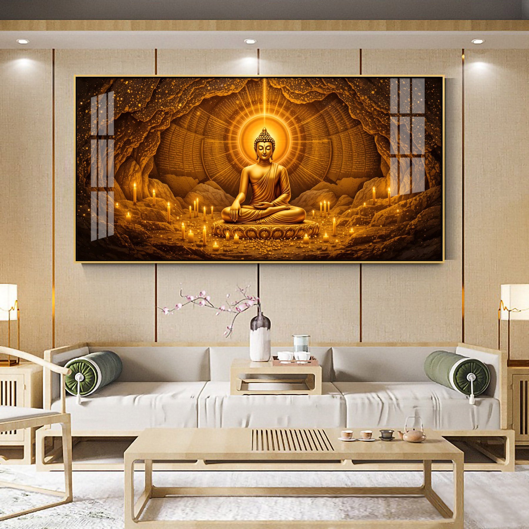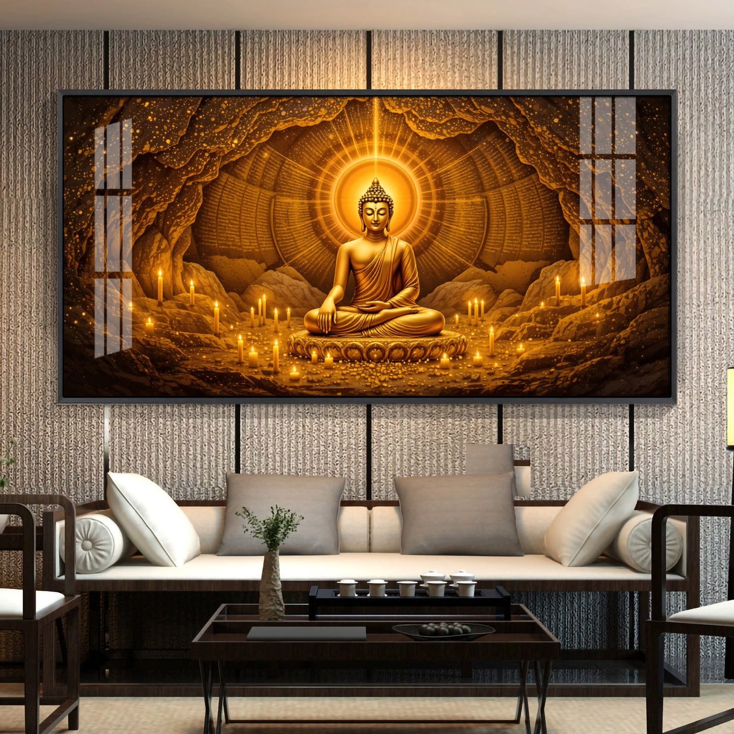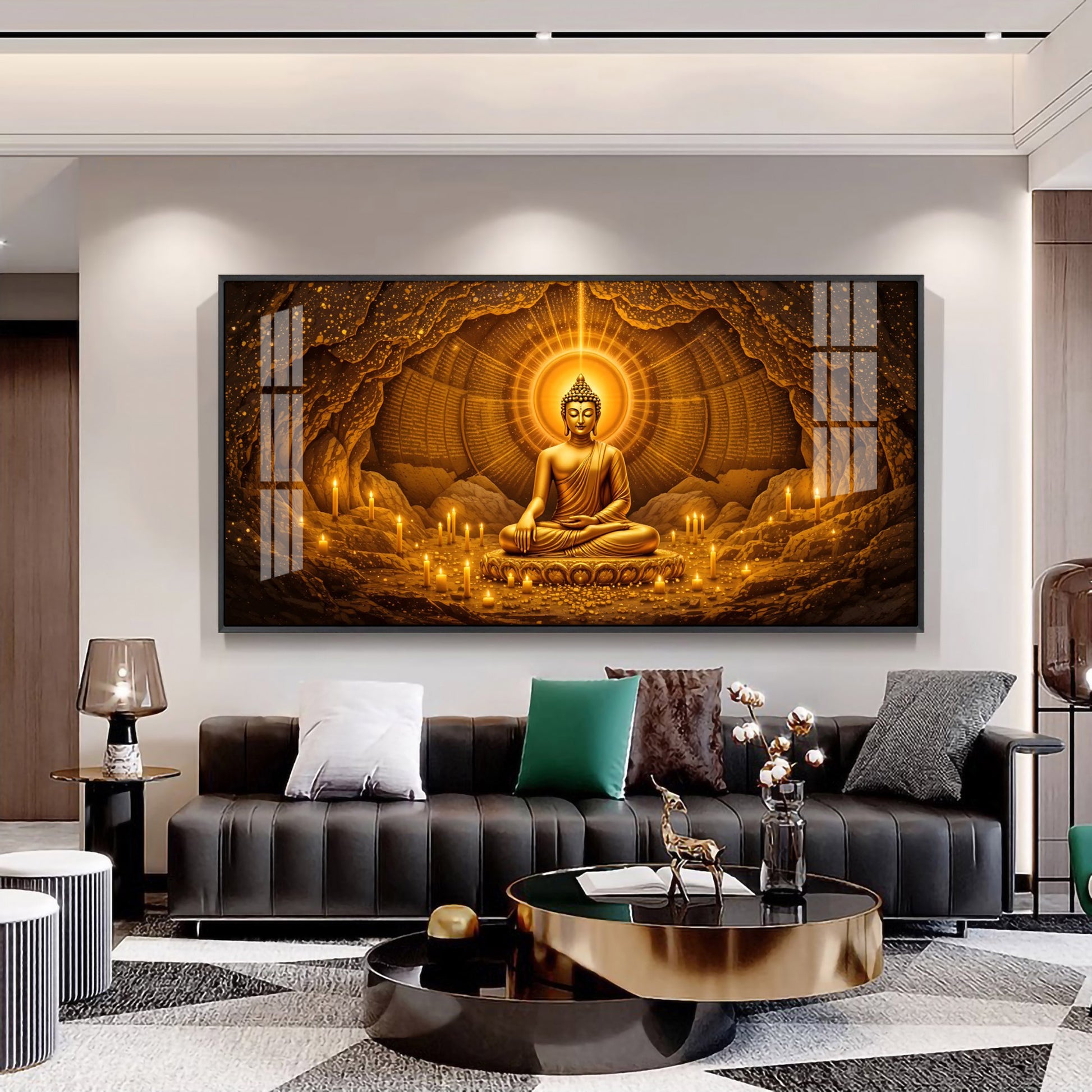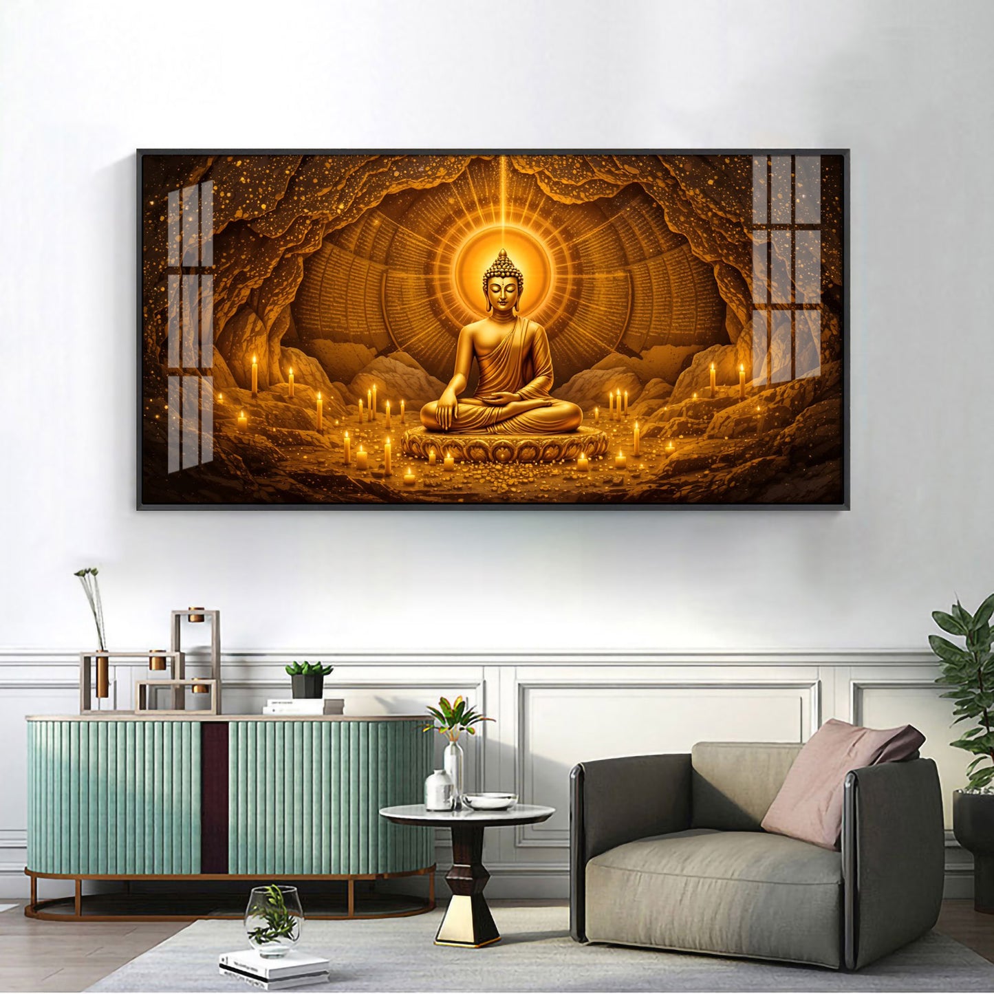 Buddha's Meditation In Candle Premium Acrylic Horizontal Wall Art