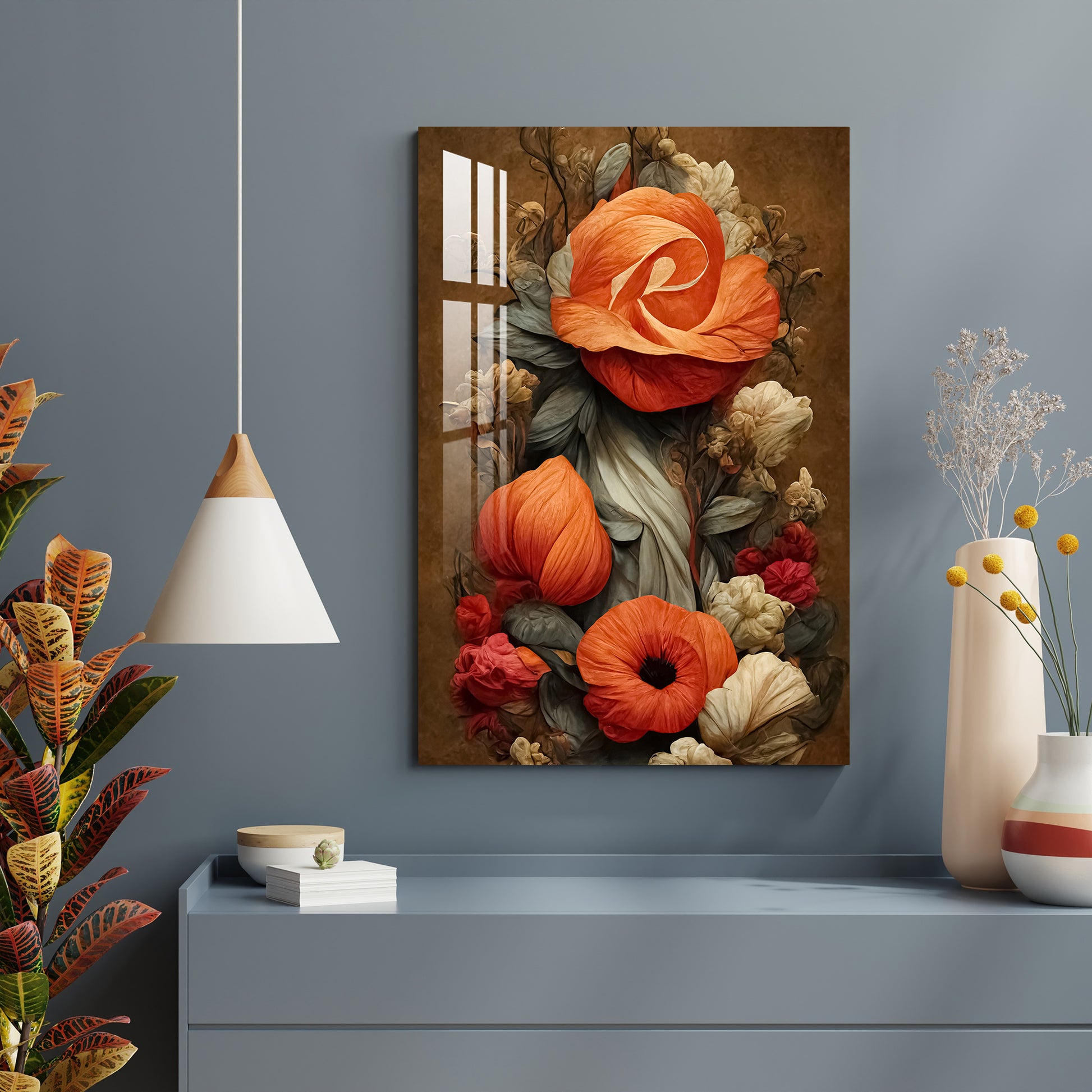 Candy Orange Flowers Acrylic Wall Art