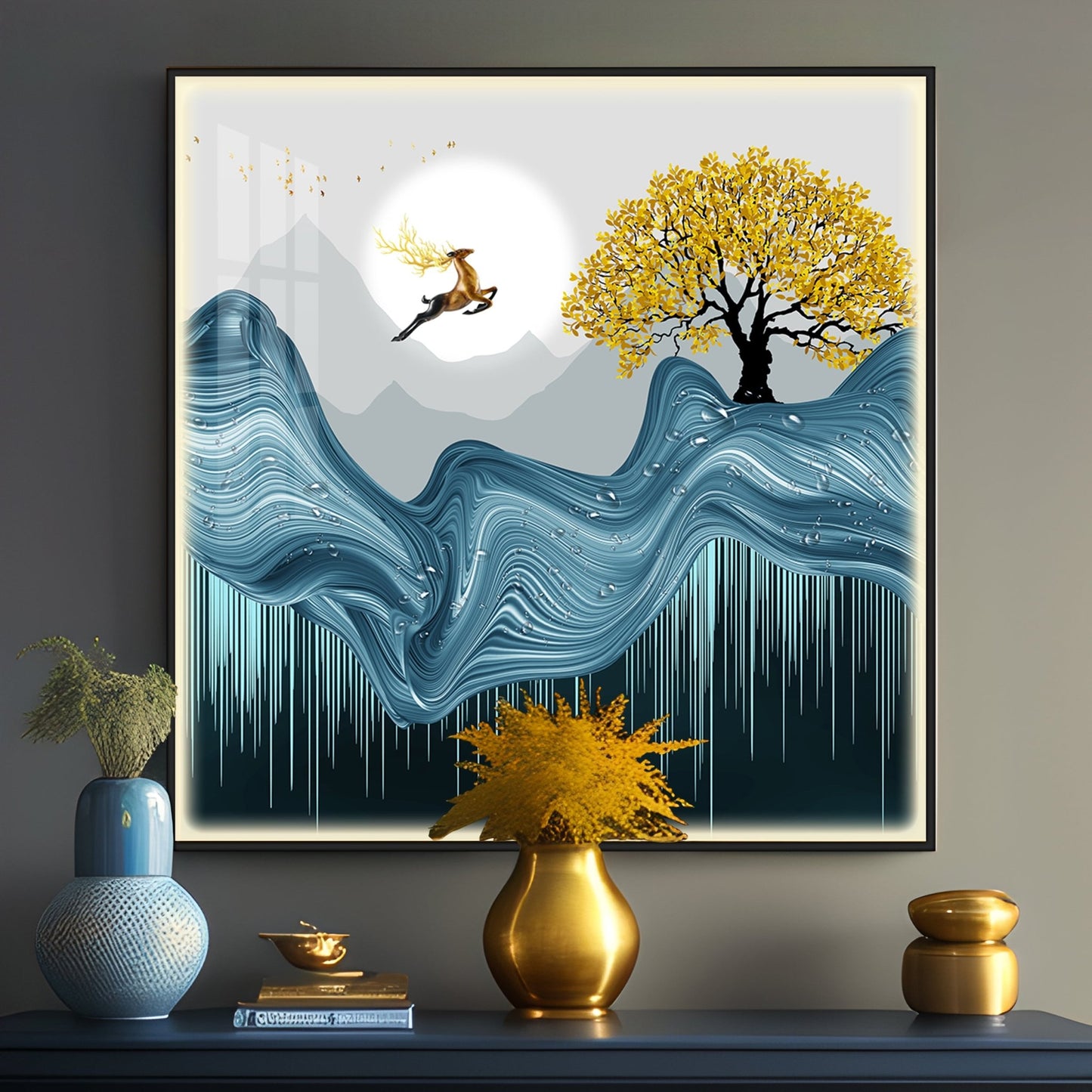 - Materials Used: Waterproof polyester canvas, luxury crystals, LED, aluminum frame, MDF