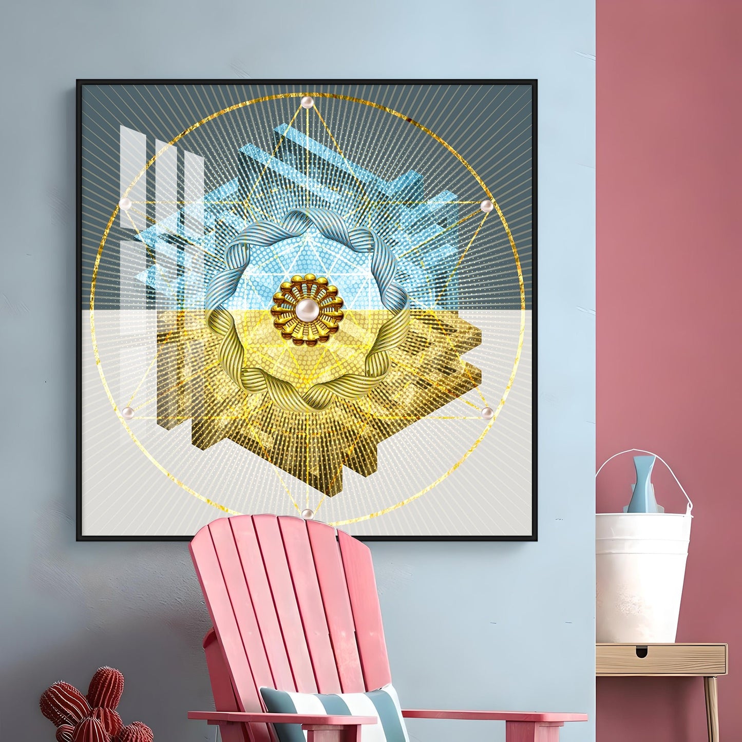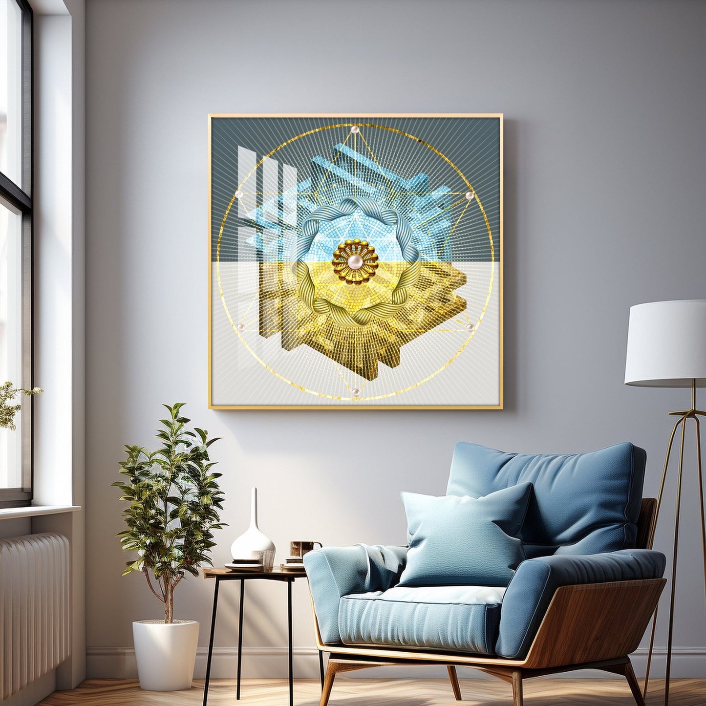 Our Framed Acrylic Wall Art is easy to hang. The metal hooks are included on the corners of your ordered wall art. You can simply mount it to your wall.