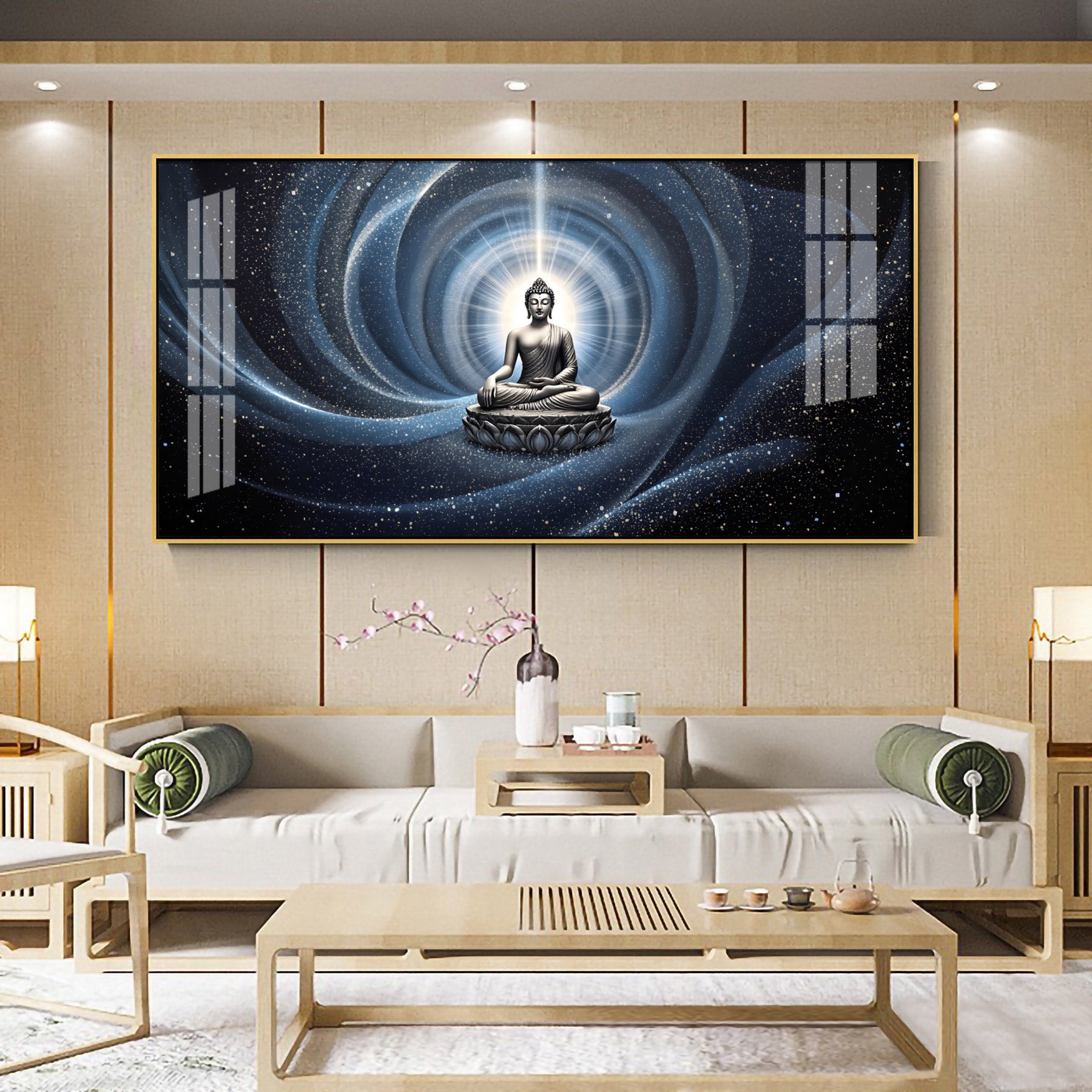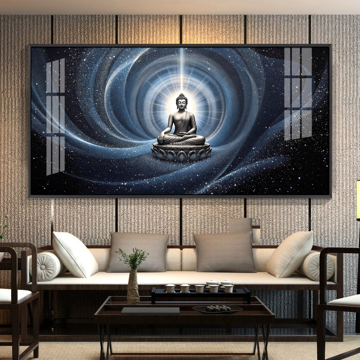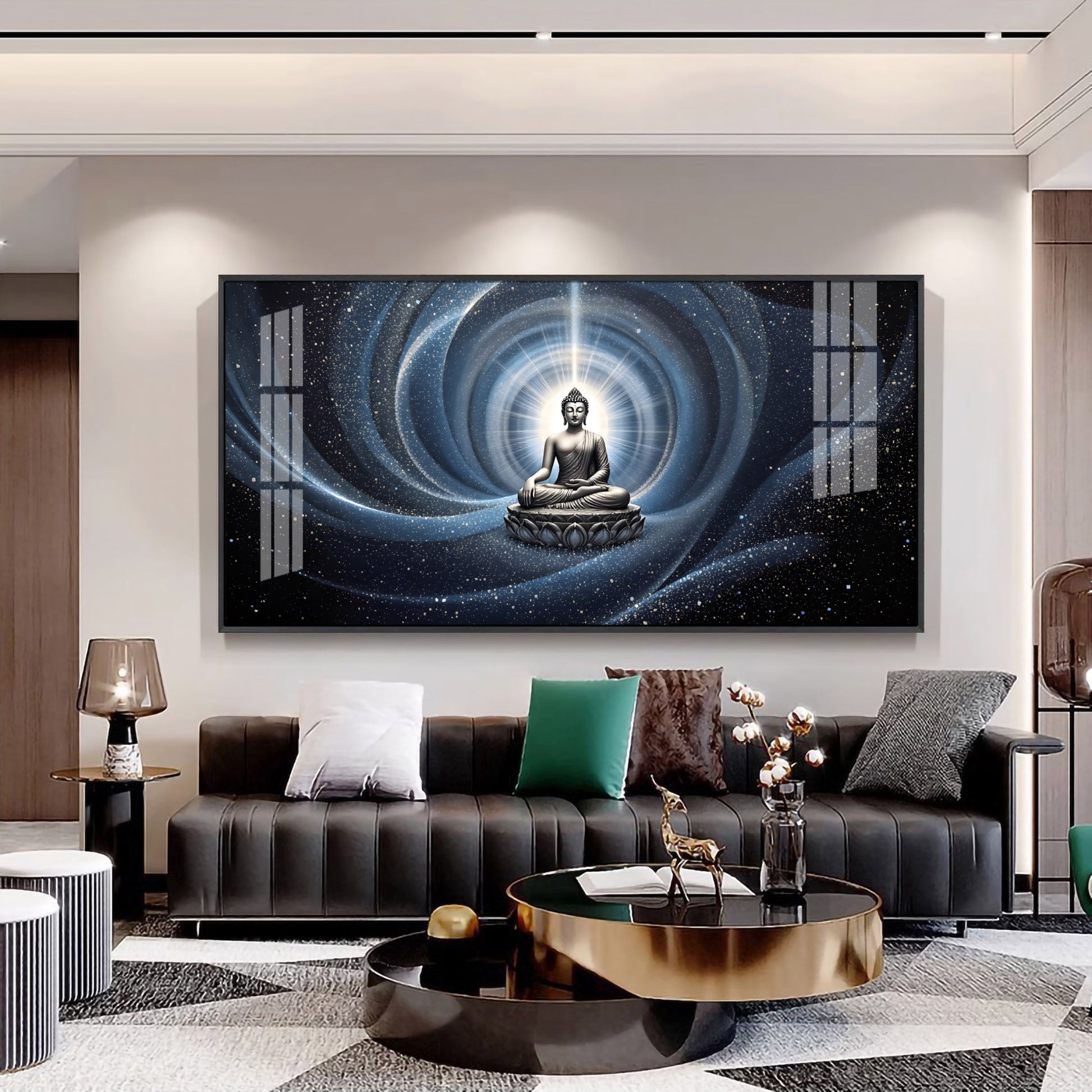 Circular Wave Buddha Reflection Premium Acrylic Horizontal Wall Art