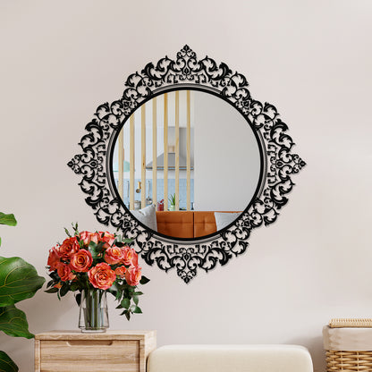 This metal wall mirror is purely an “Made in India” product which is designed and crafted by ‘The Next Décor’. This Wall Mirror is perfect for your Living Room, Dining Hall, Kitchen, Bedroom, Offices, Cafes etc. and a prefect option to gift to your loved ones, friends and family.