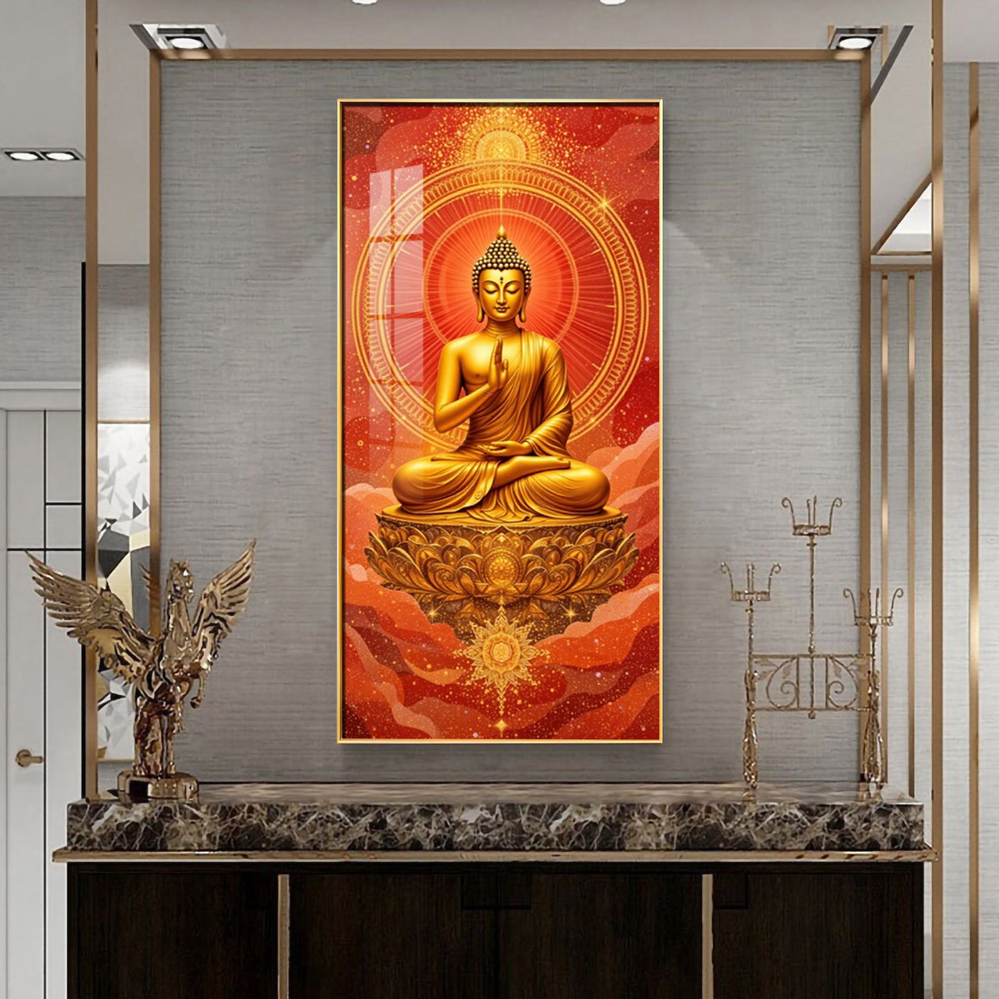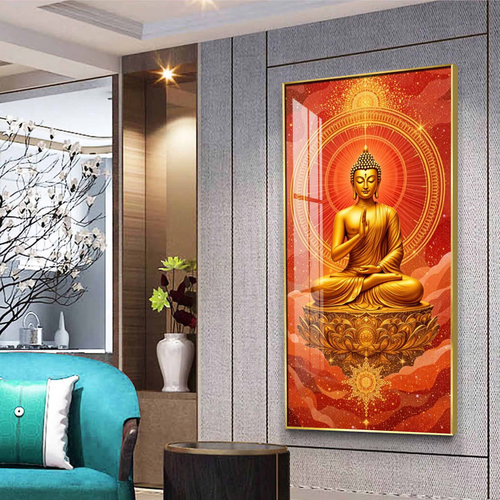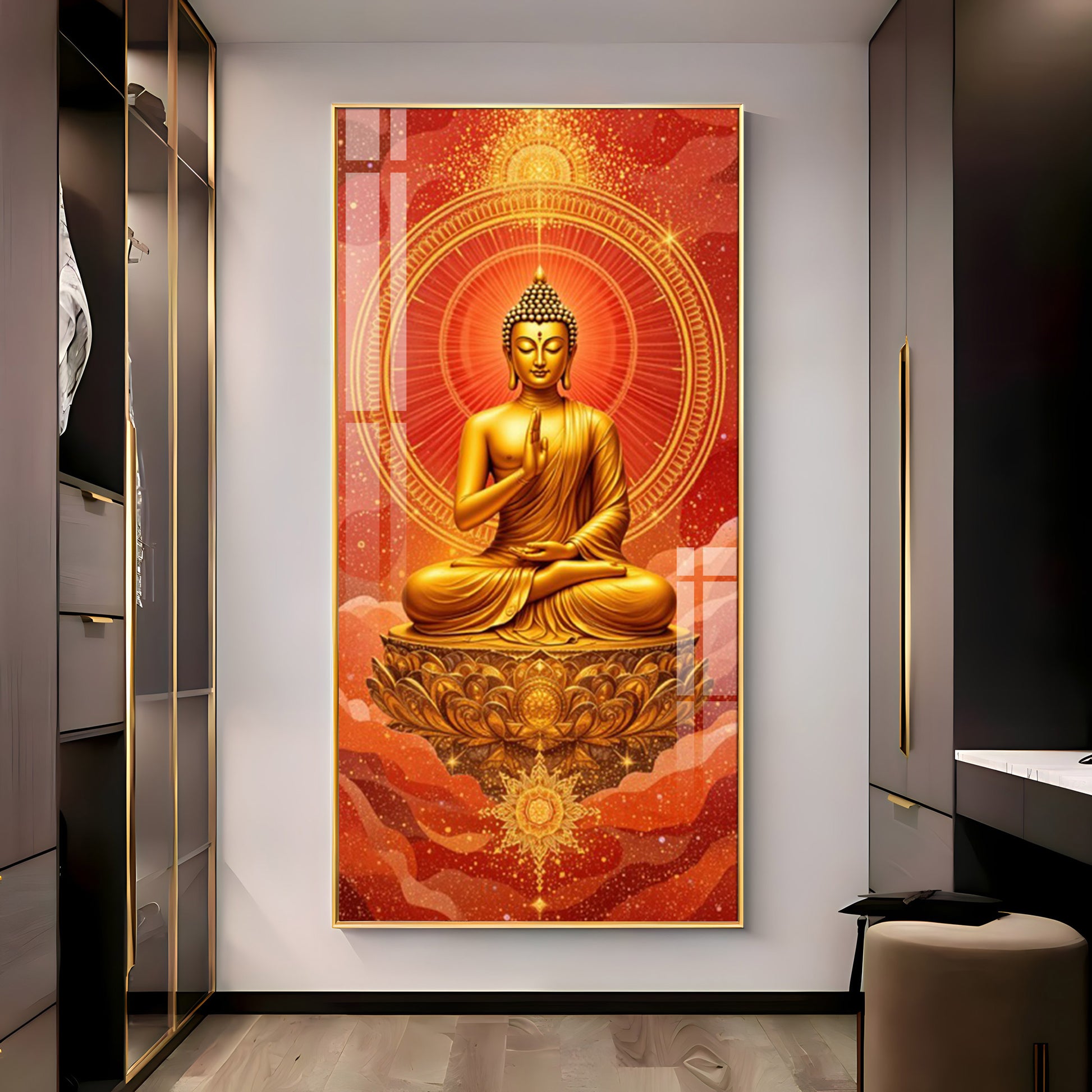 Crimson Buddha Premium Acrylic Vertical Wall Art