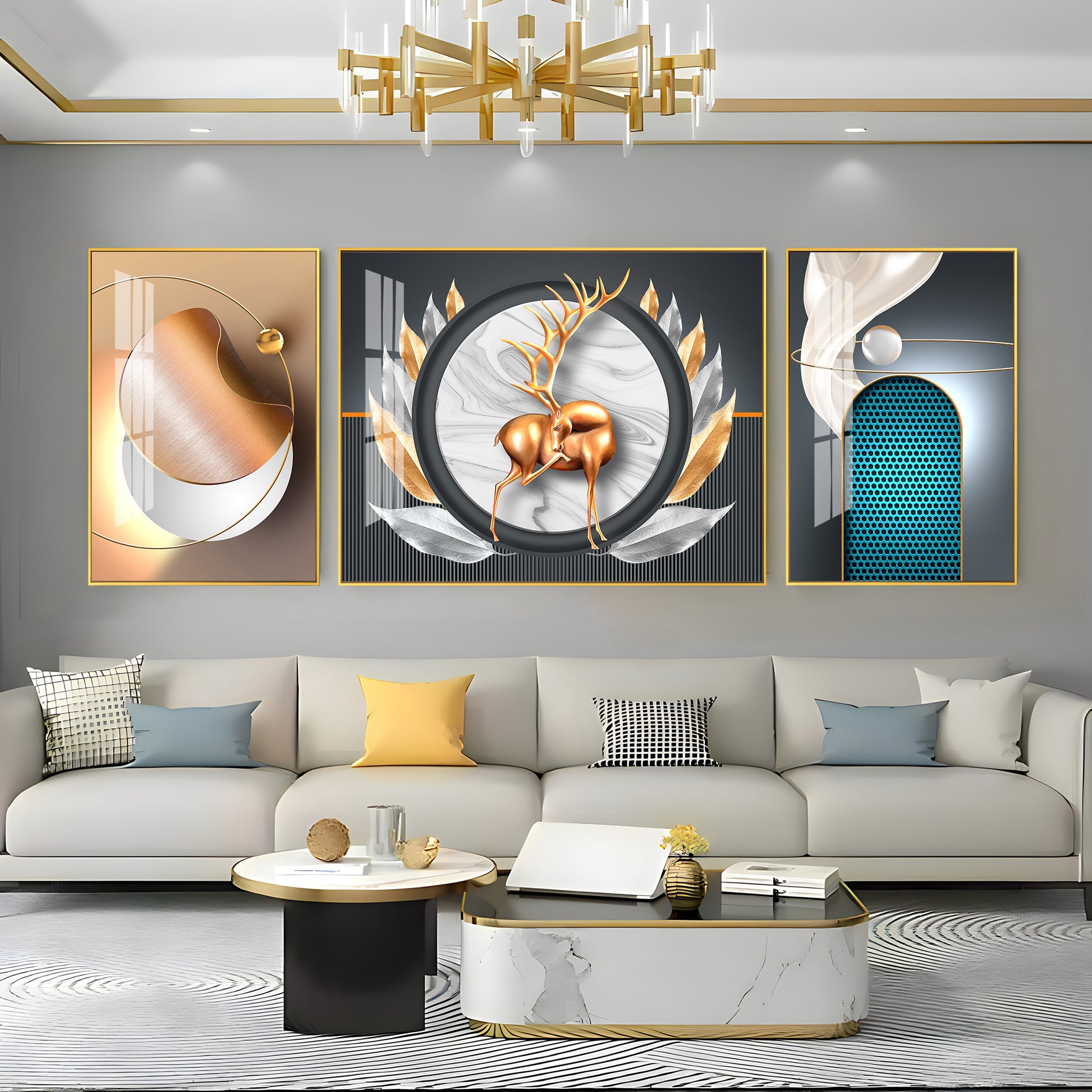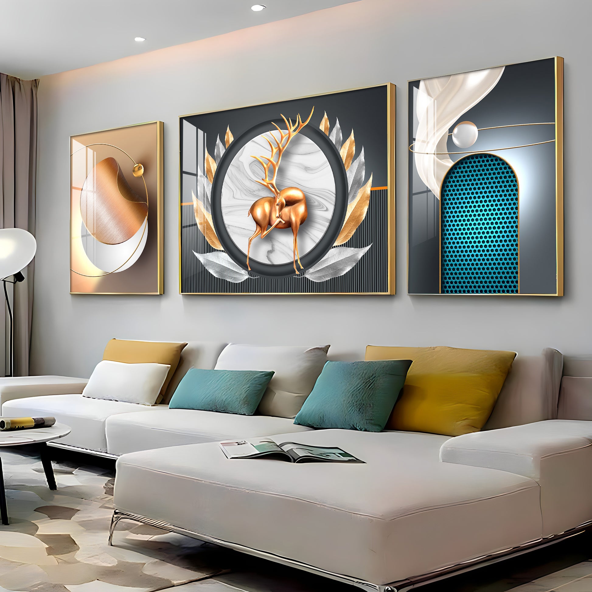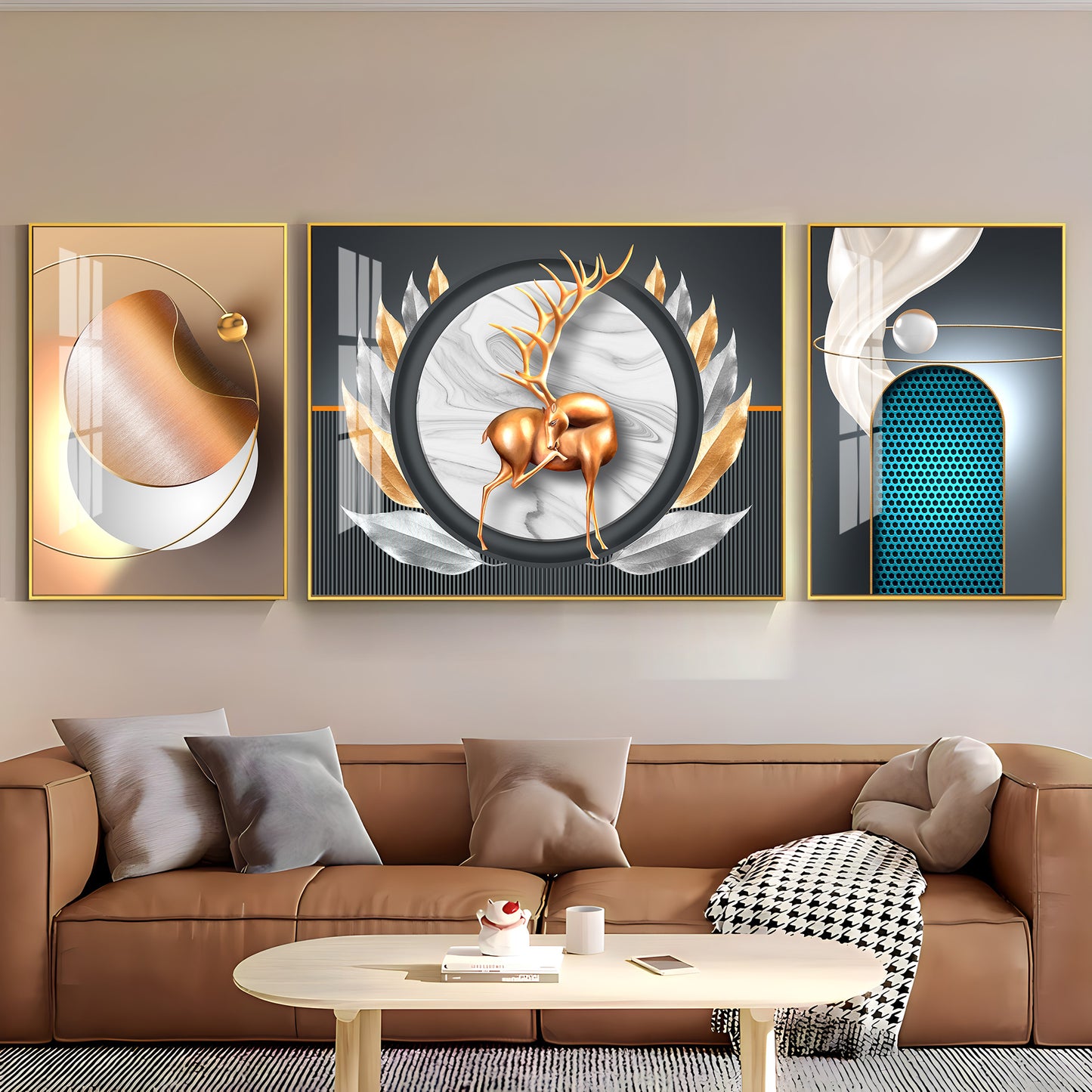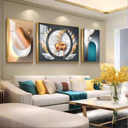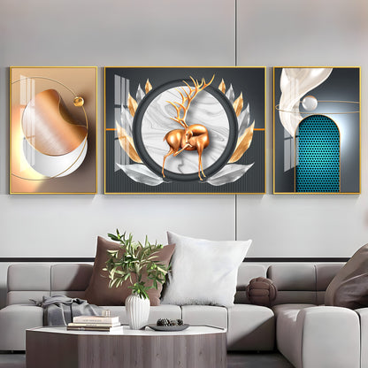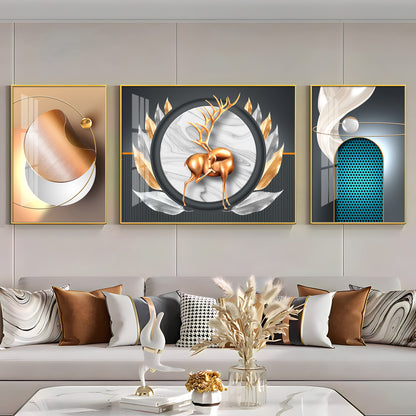 Deer and Feathers Premium Acrylic Wall Art (Set of 3)