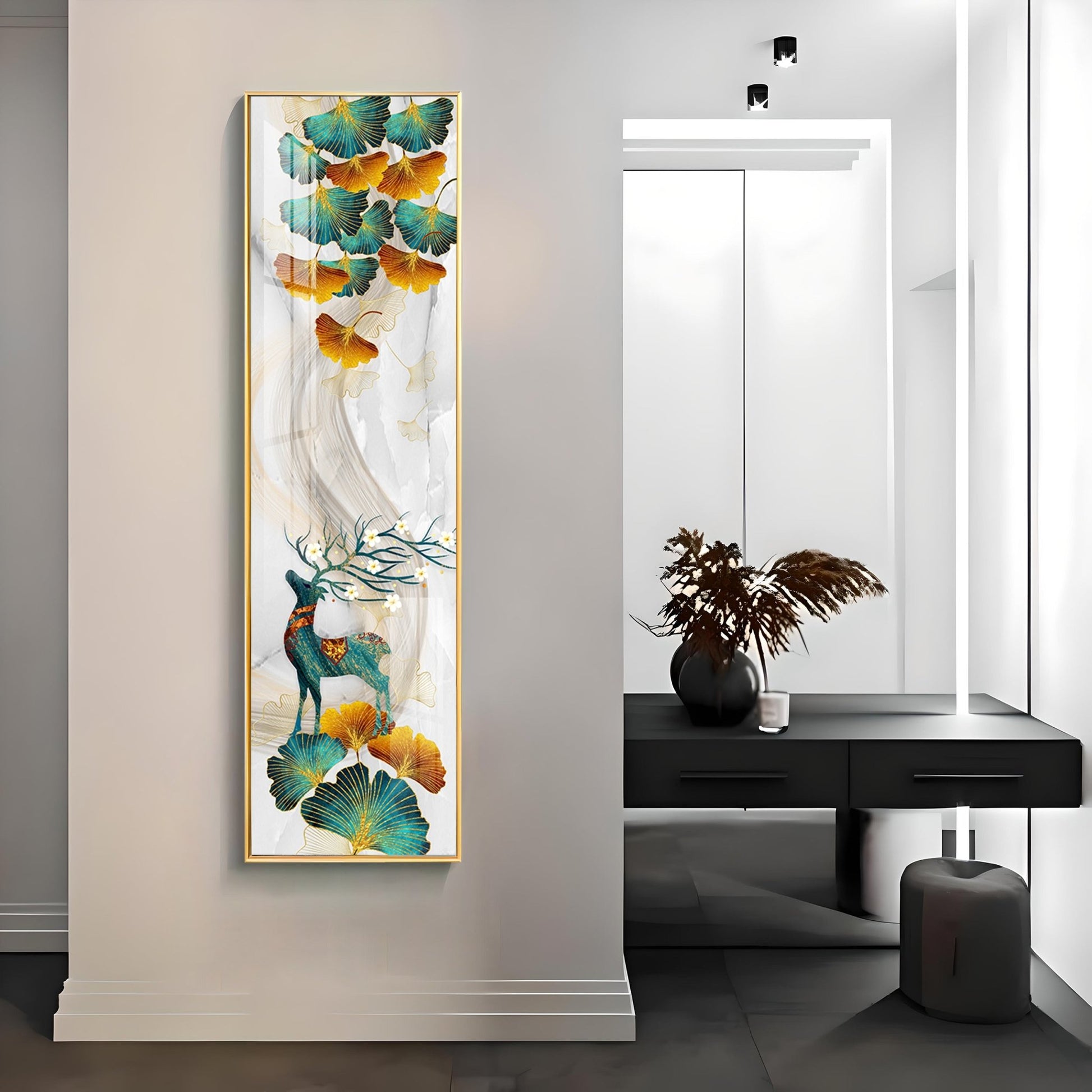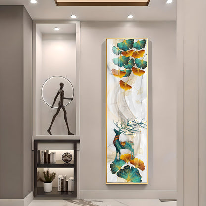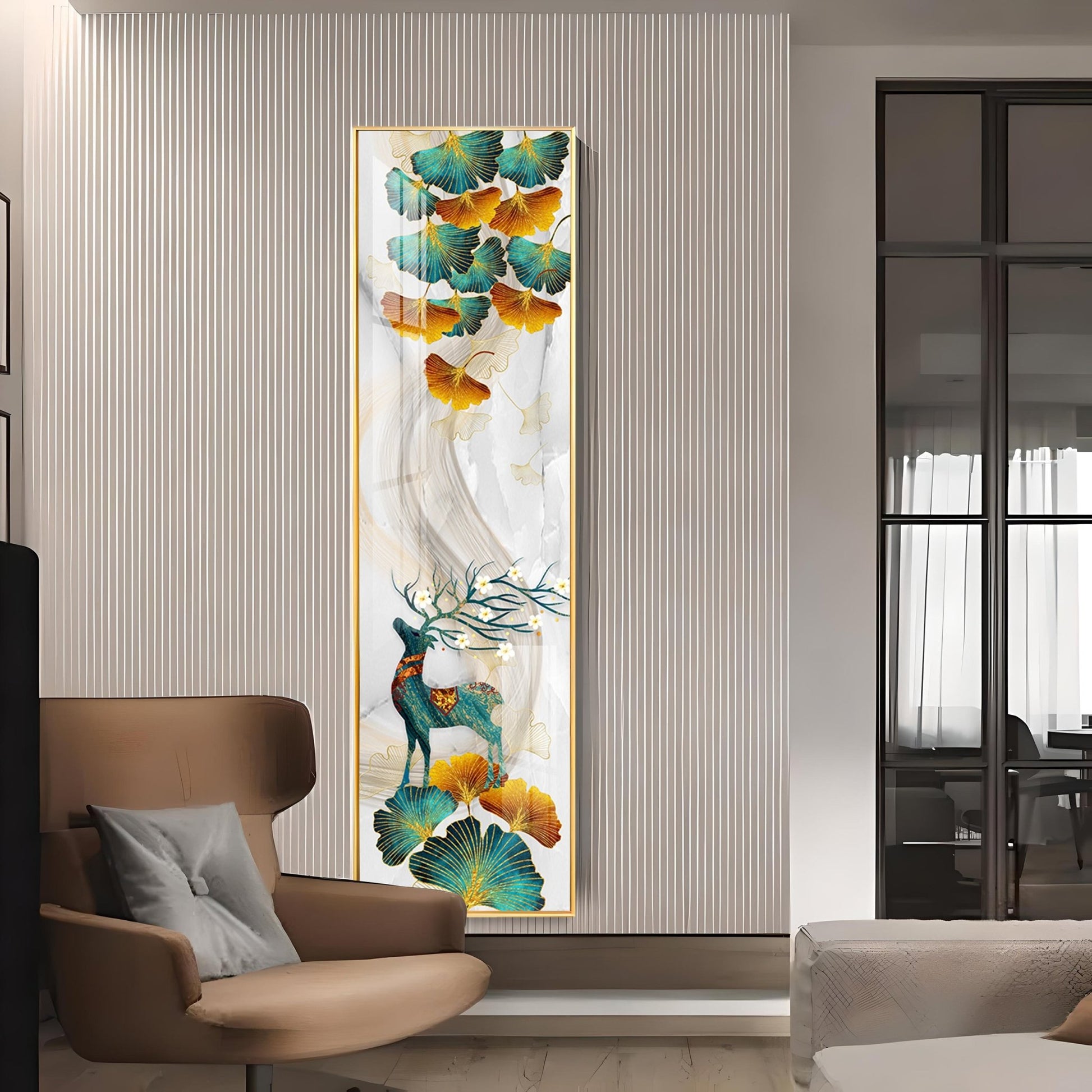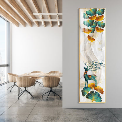 Deer On Golden Ginkgo Leaf Vertical Premium Acrylic Vertical Wall Art
