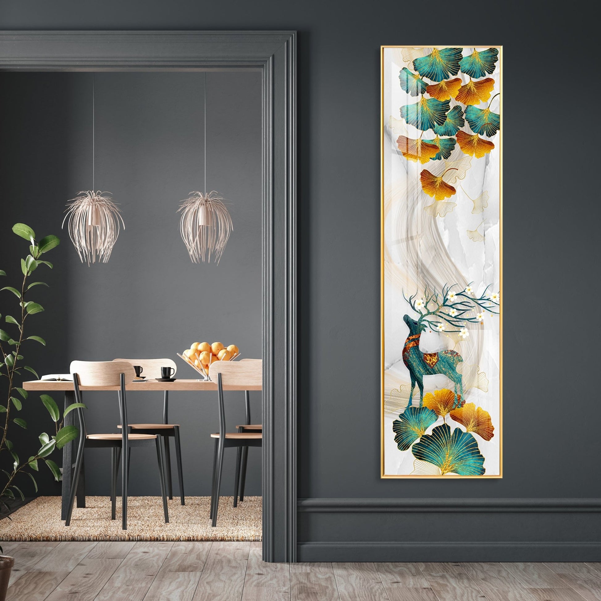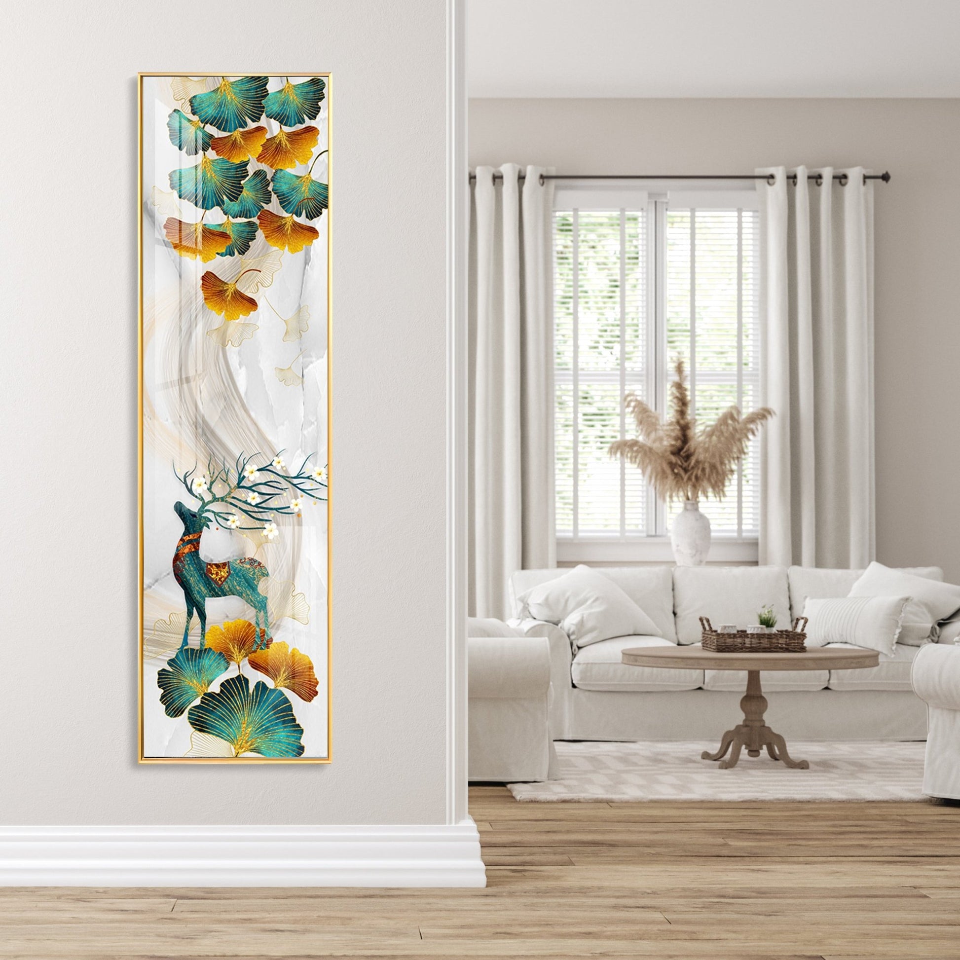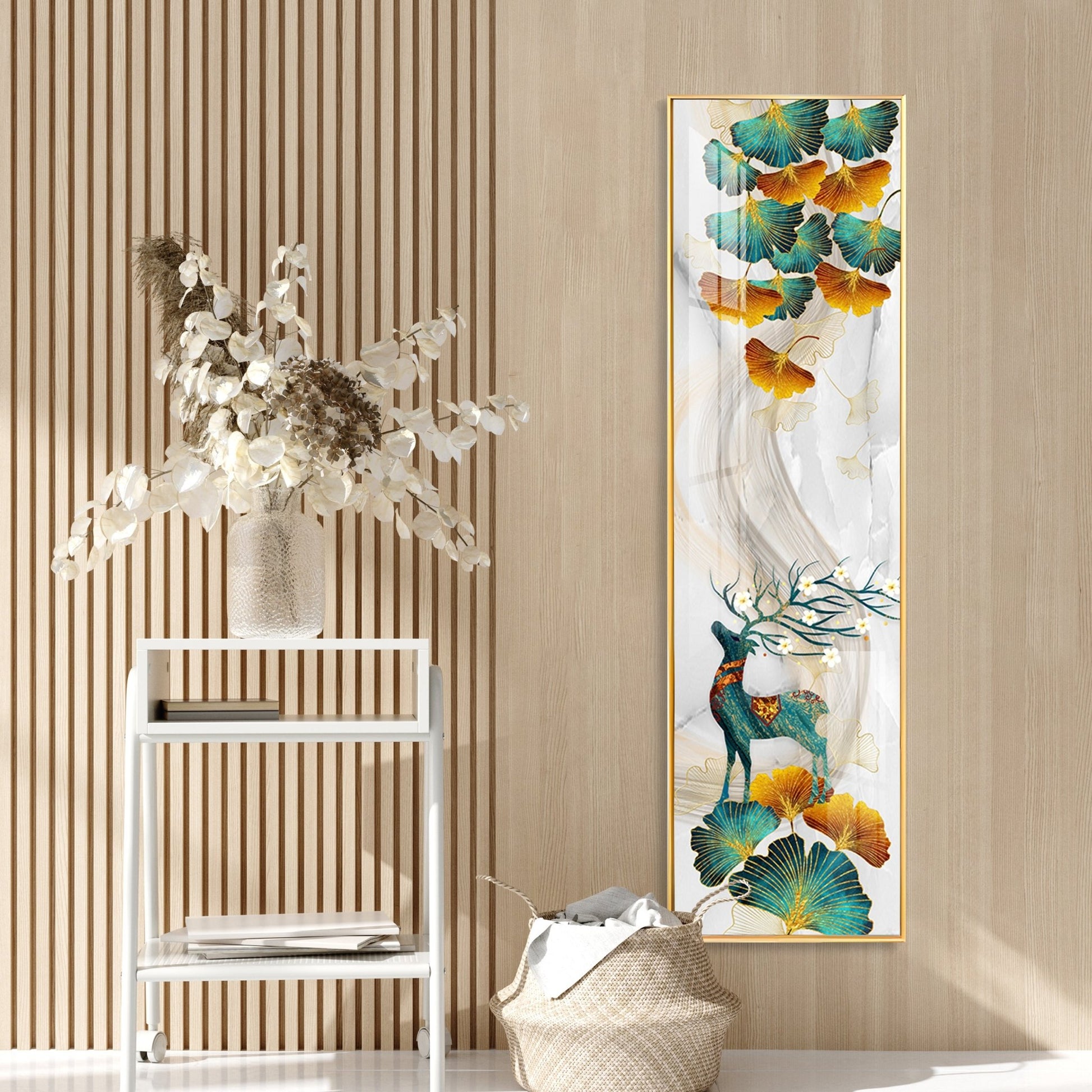 Deer On Golden Ginkgo Leaf Vertical Premium Acrylic Vertical Wall Art