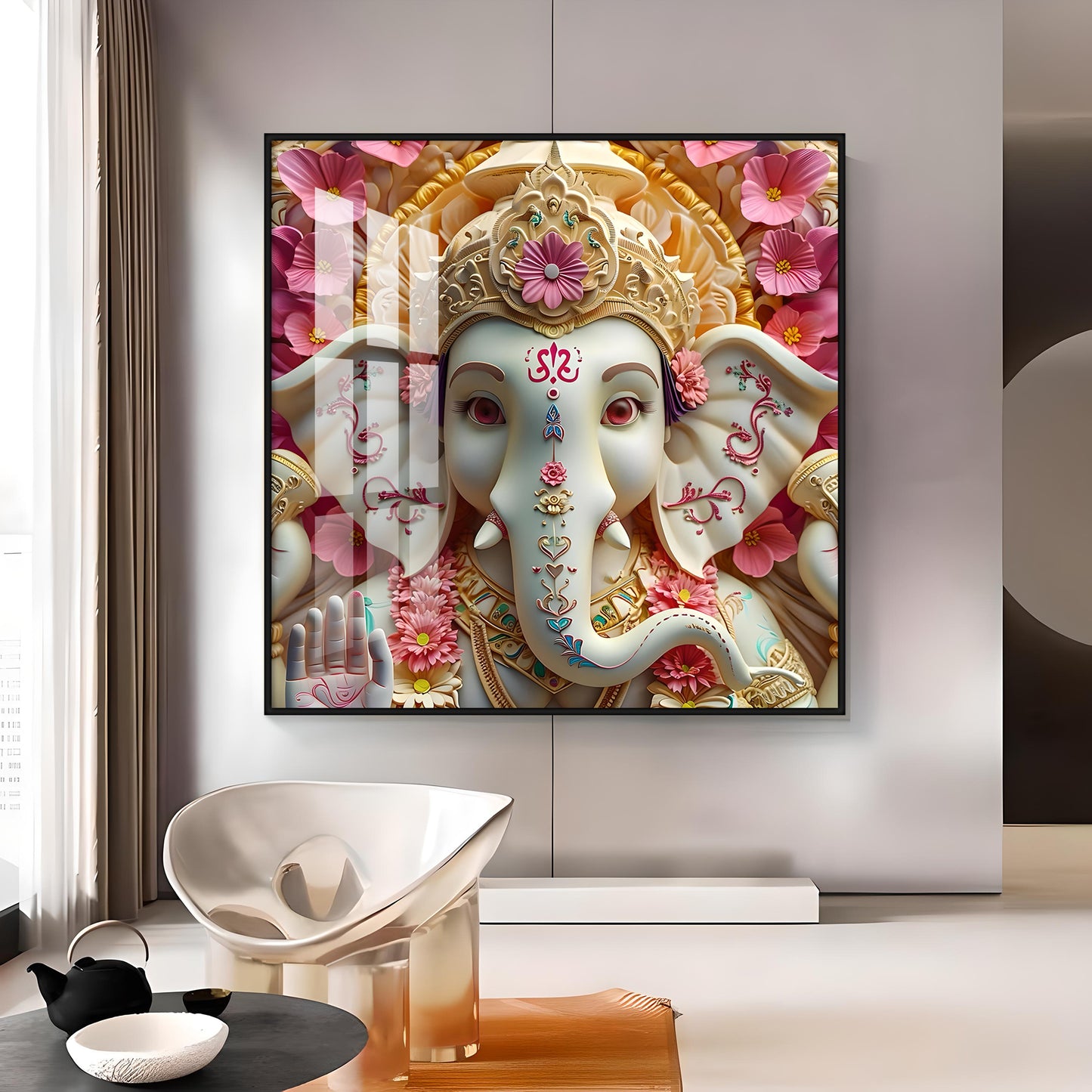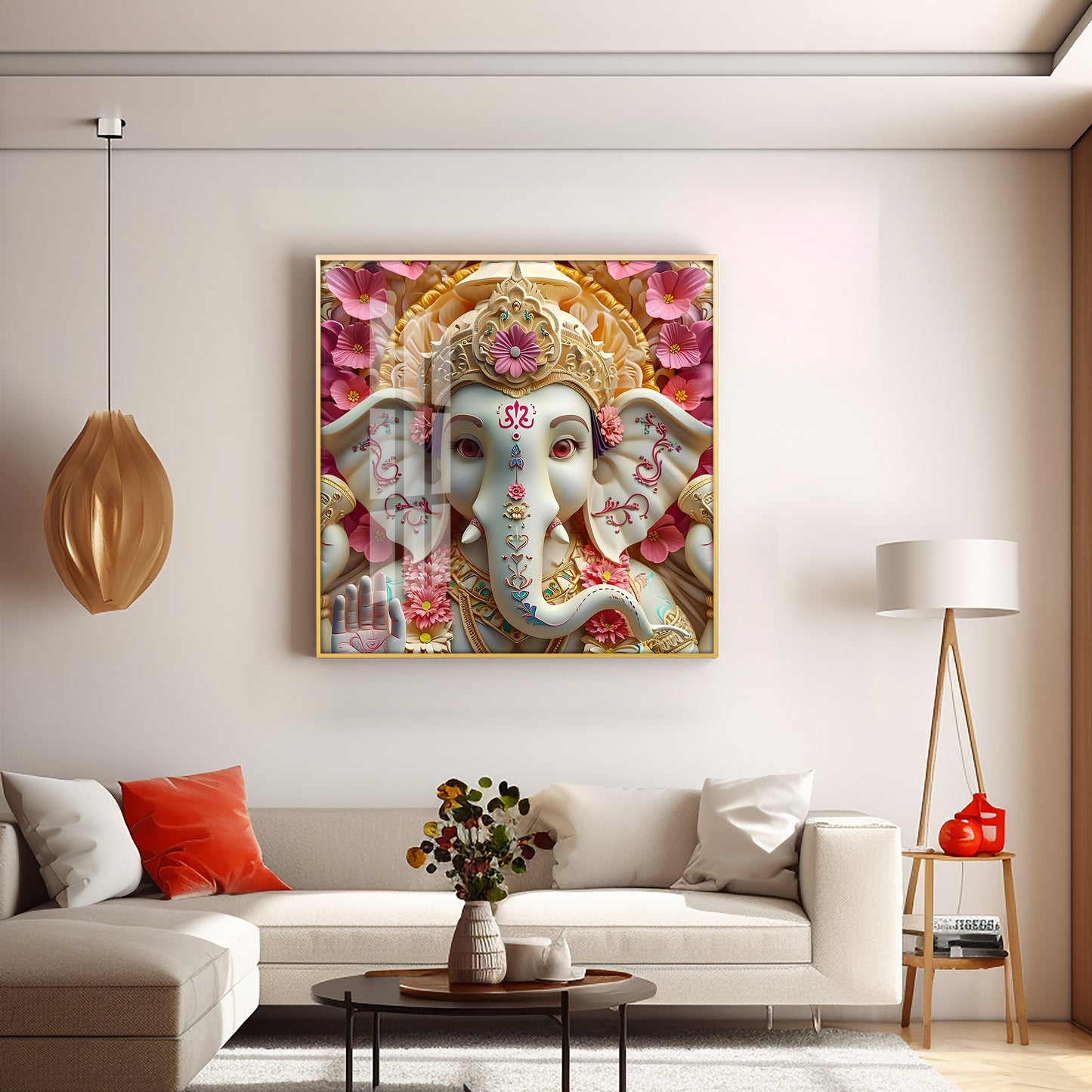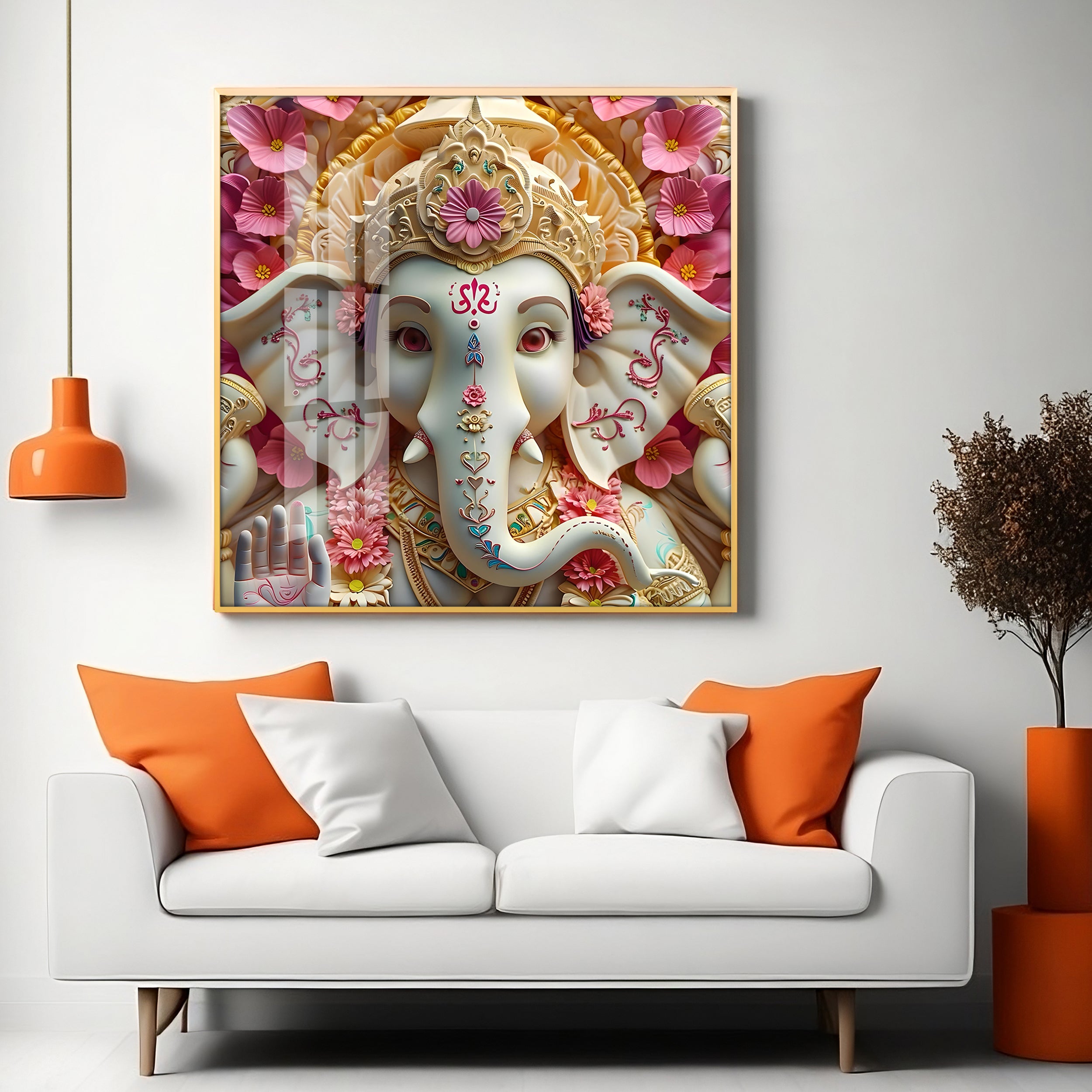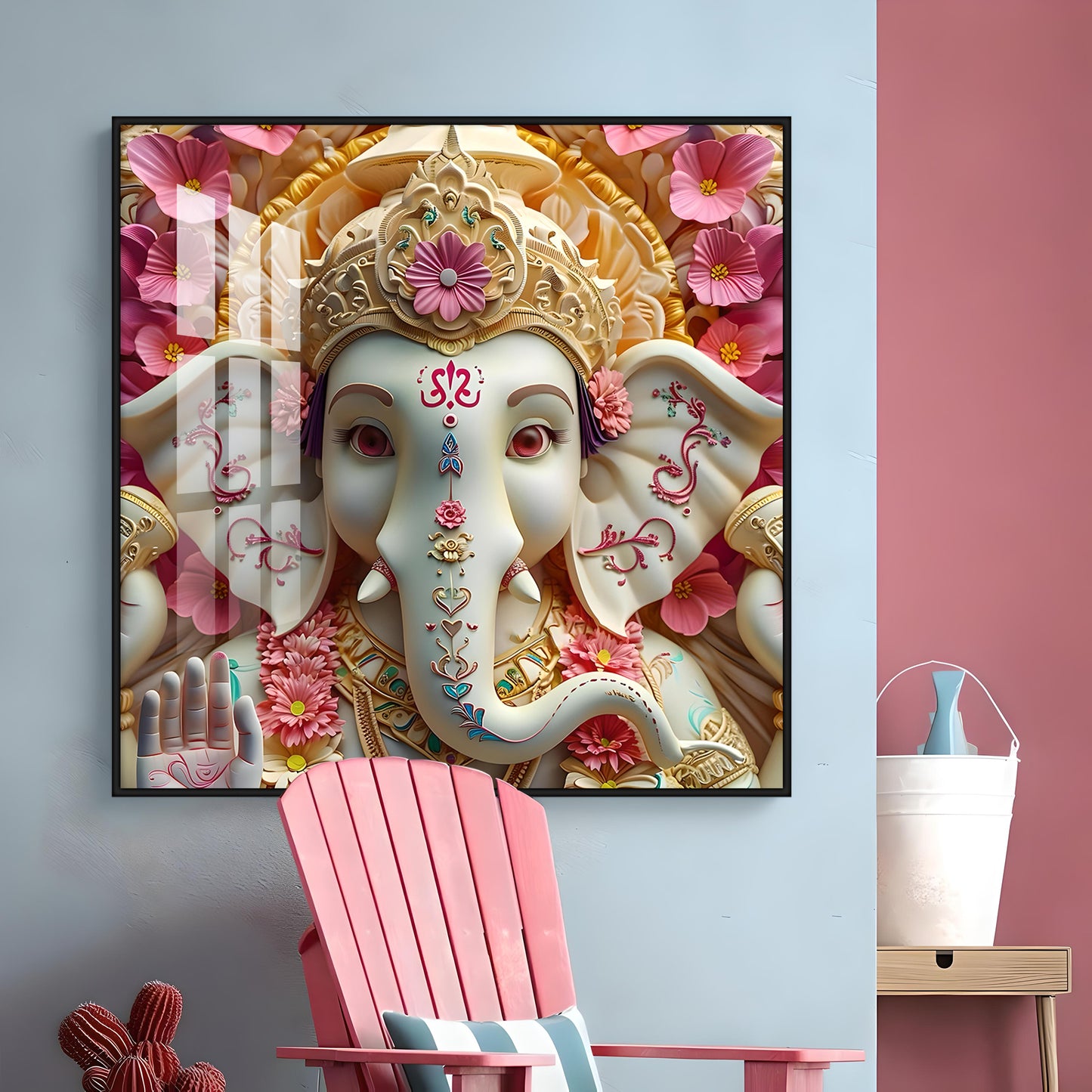 Devotional Lord Ganesh Premium Acrylic Square Wall Art