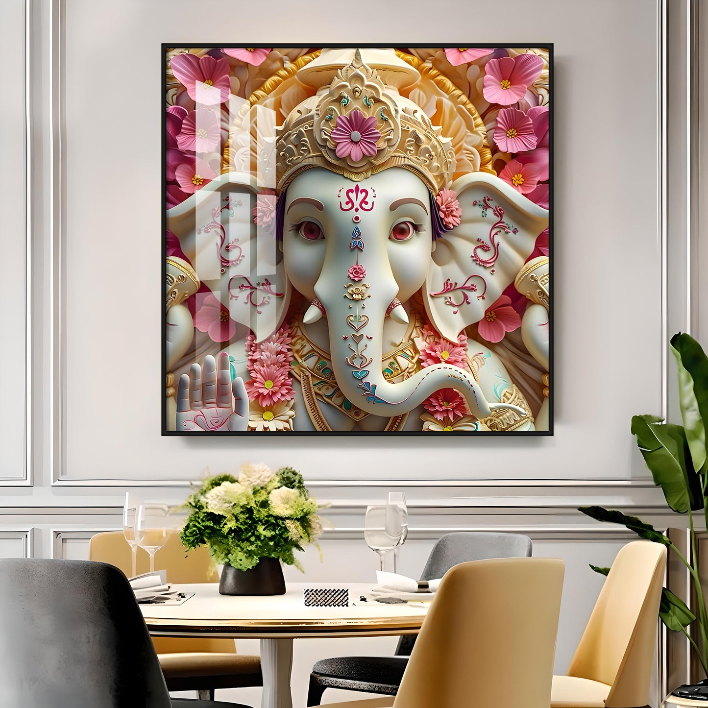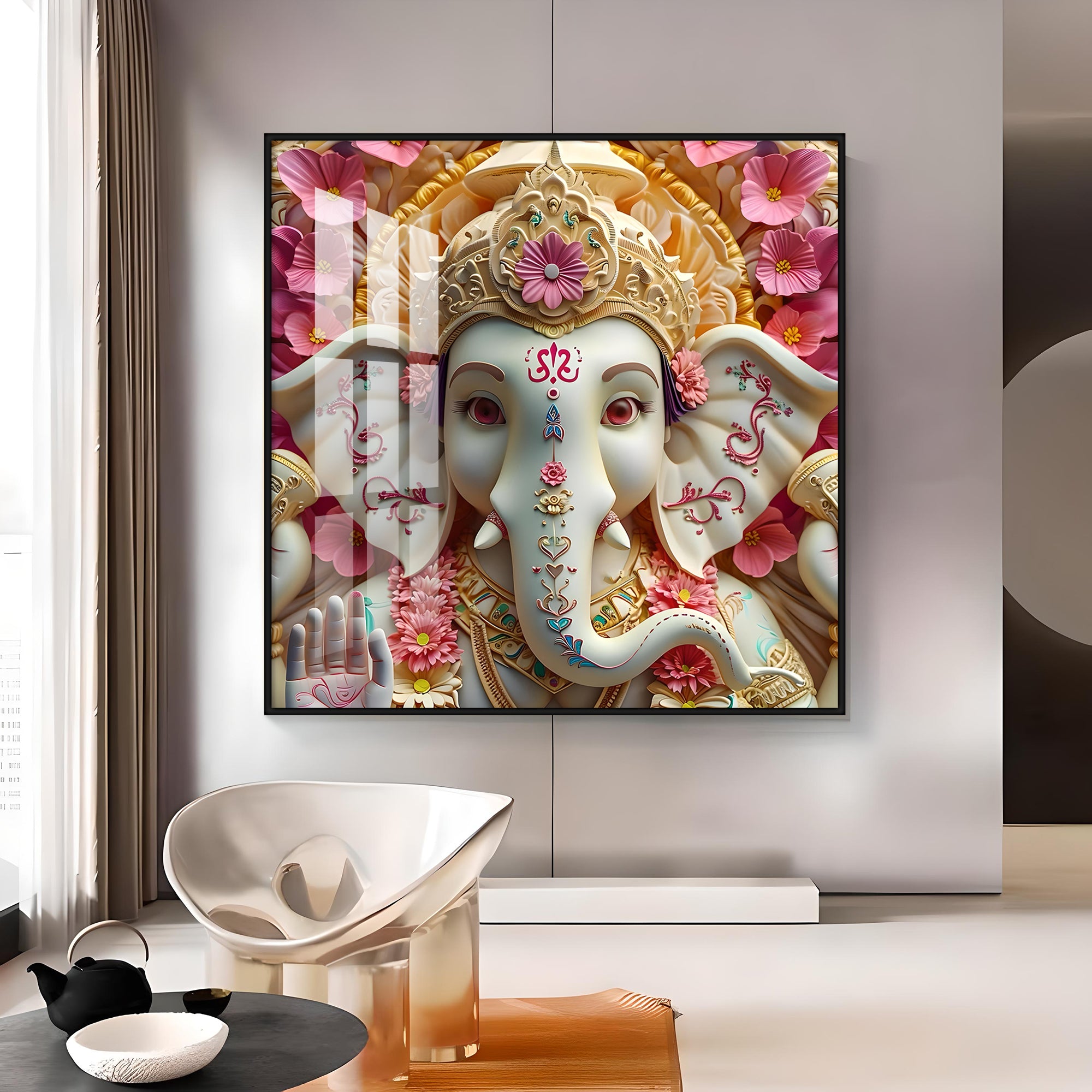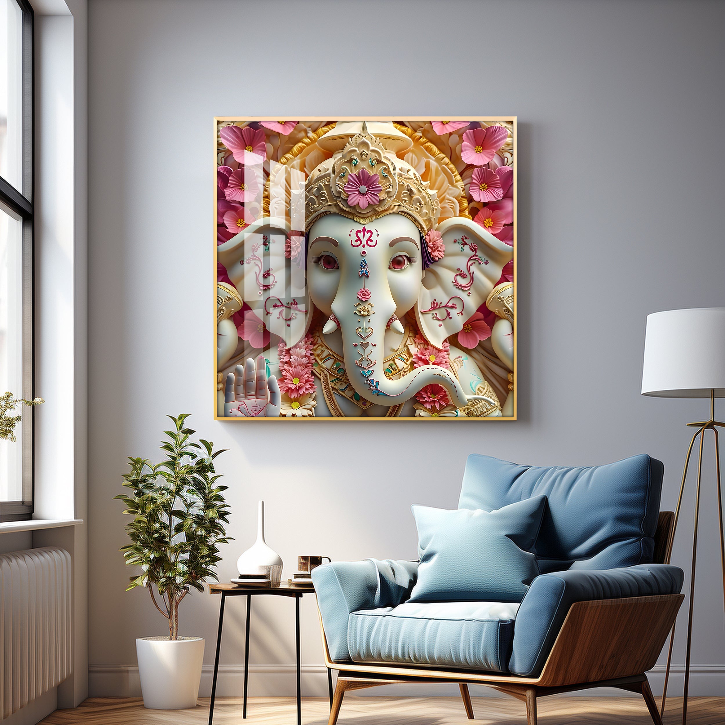 Devotional Lord Ganesh Premium Acrylic Square Wall Art
