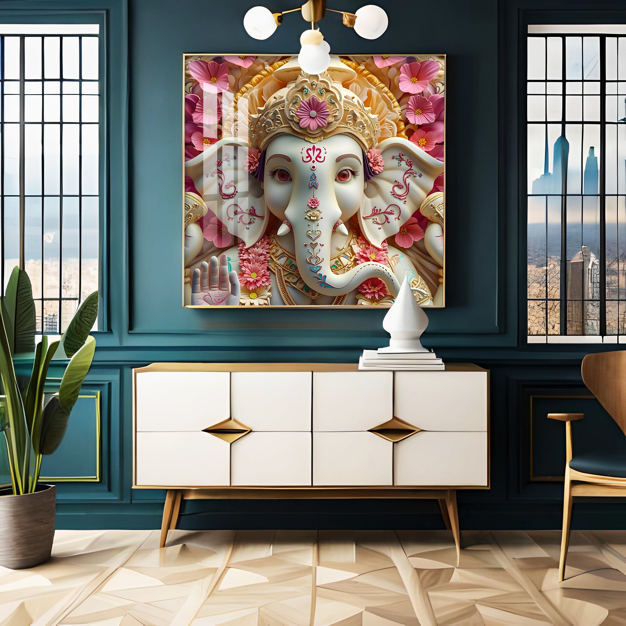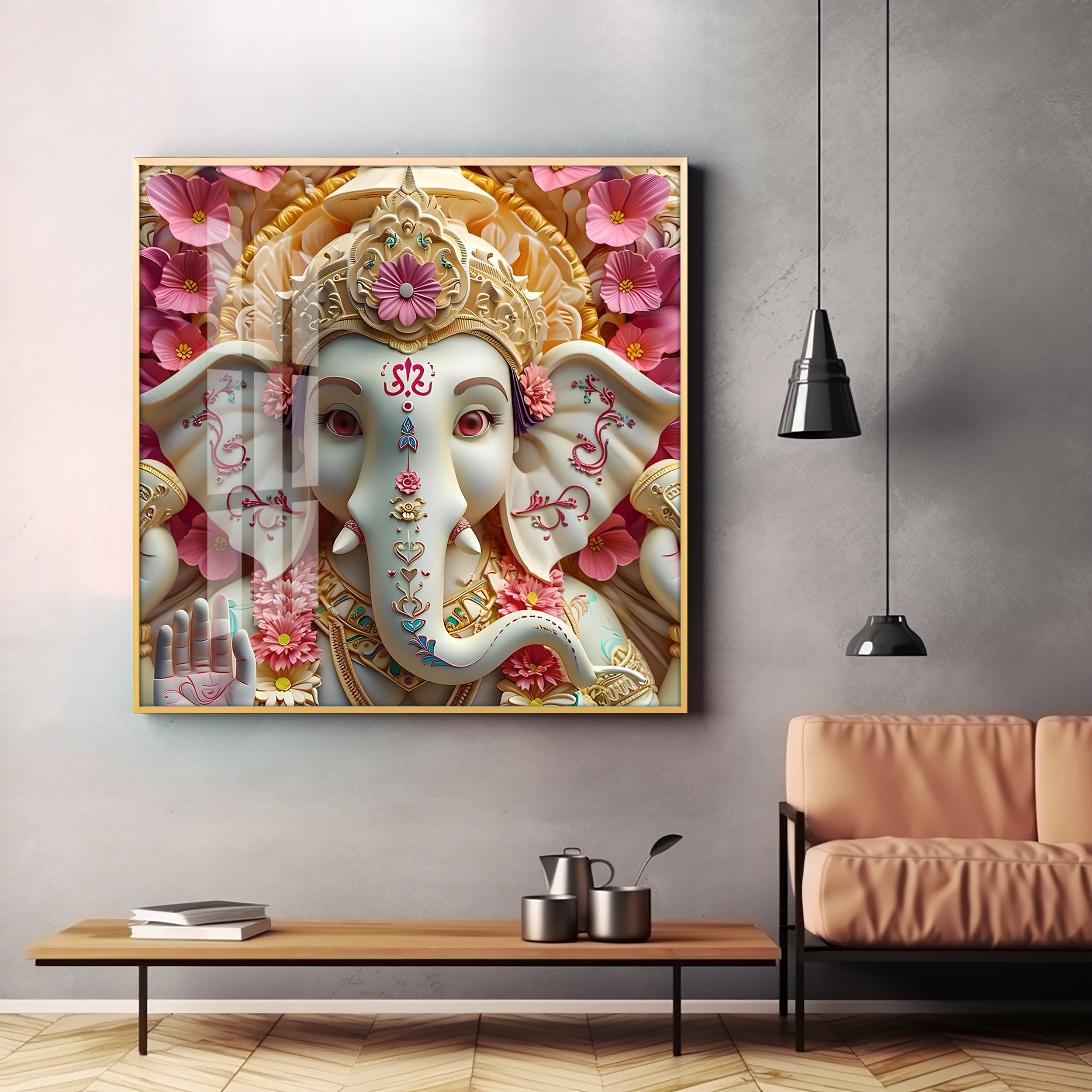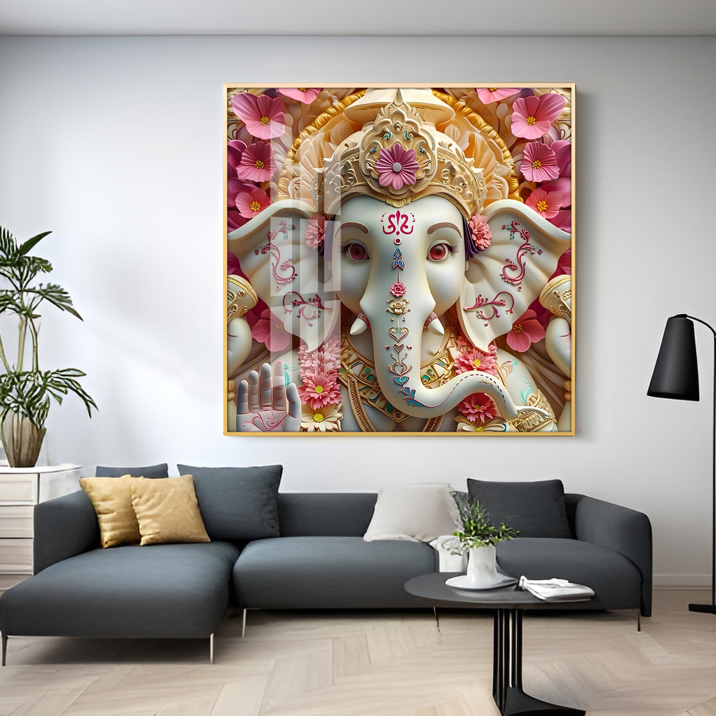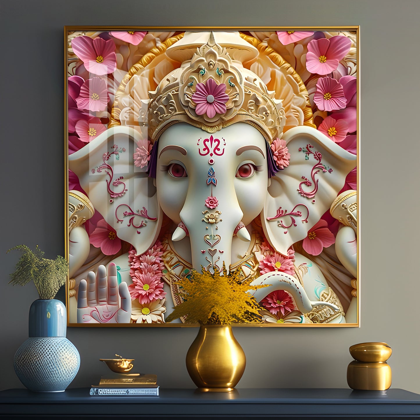 Devotional Lord Ganesh Premium Acrylic Square Wall Art
