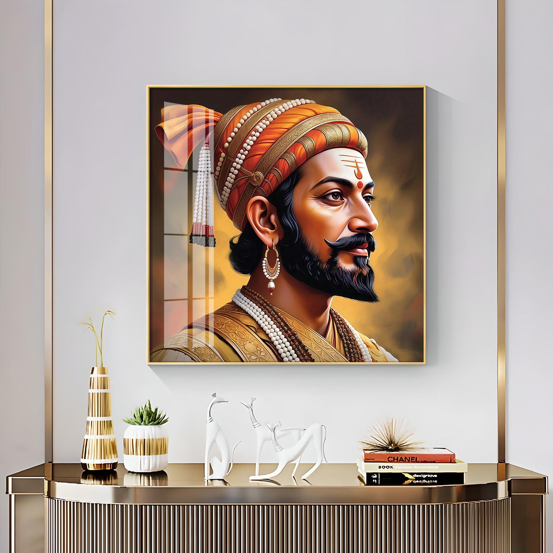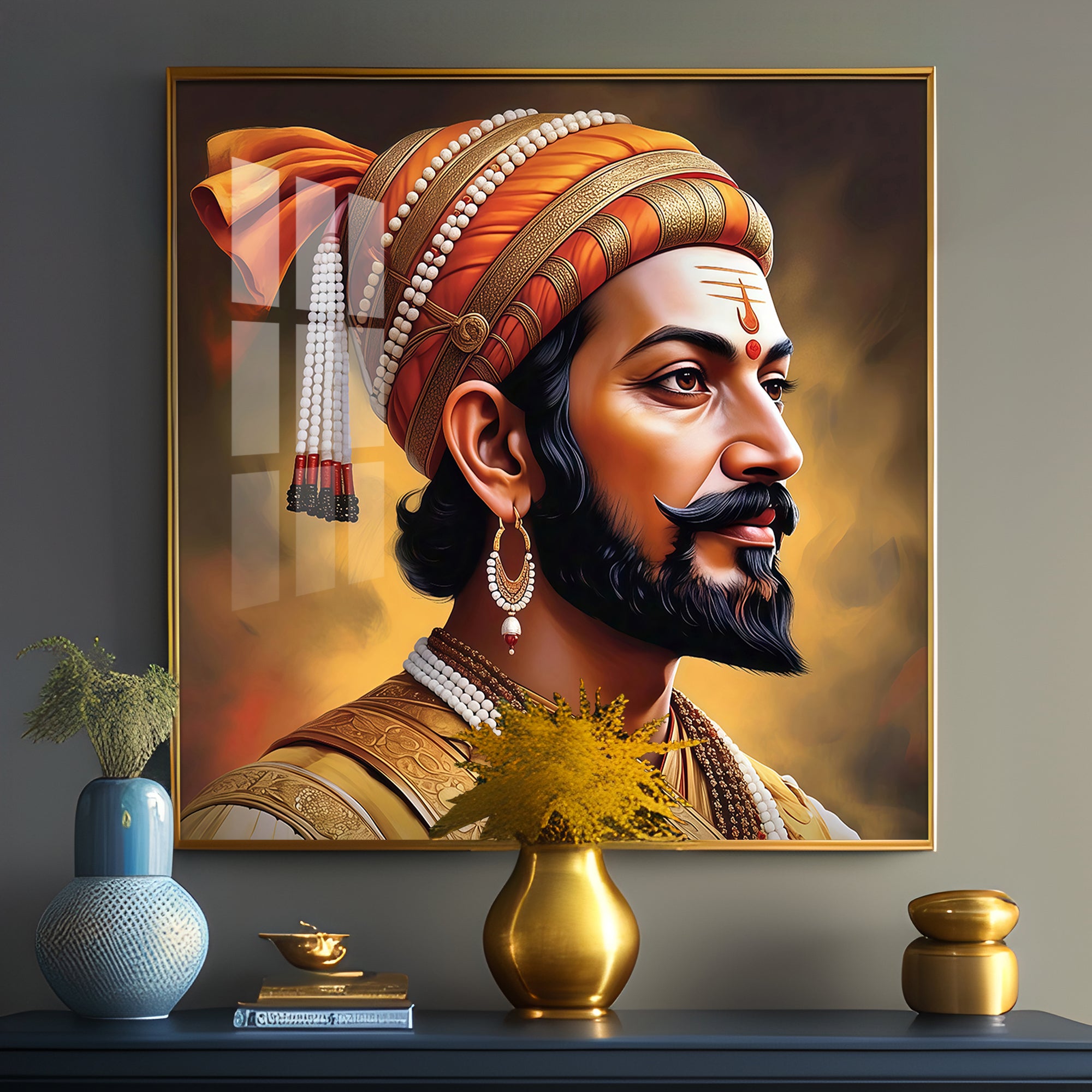 Divine Chhatrapati Shivaji Maharaj Ji Premium Acrylic Square Wall Art