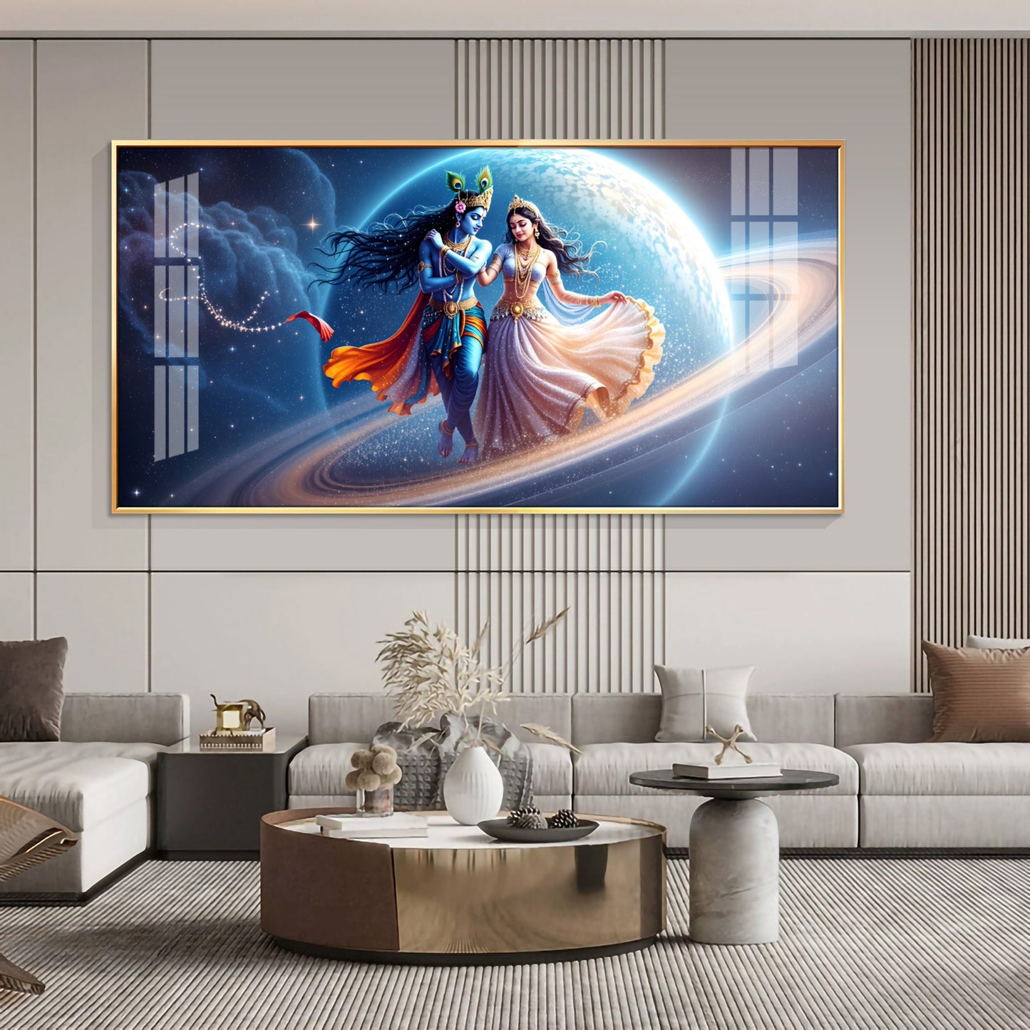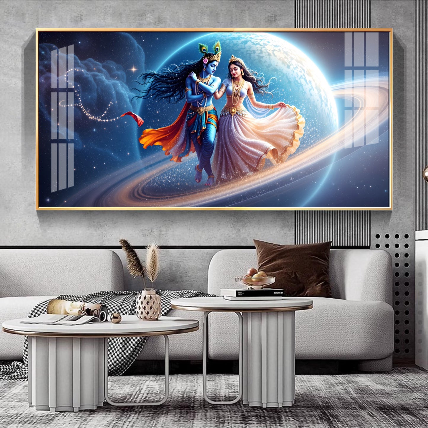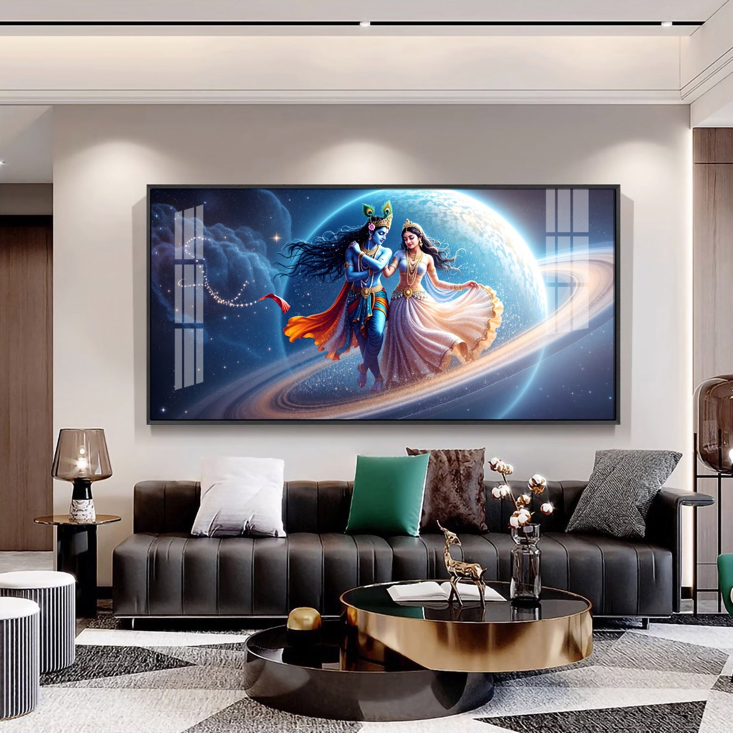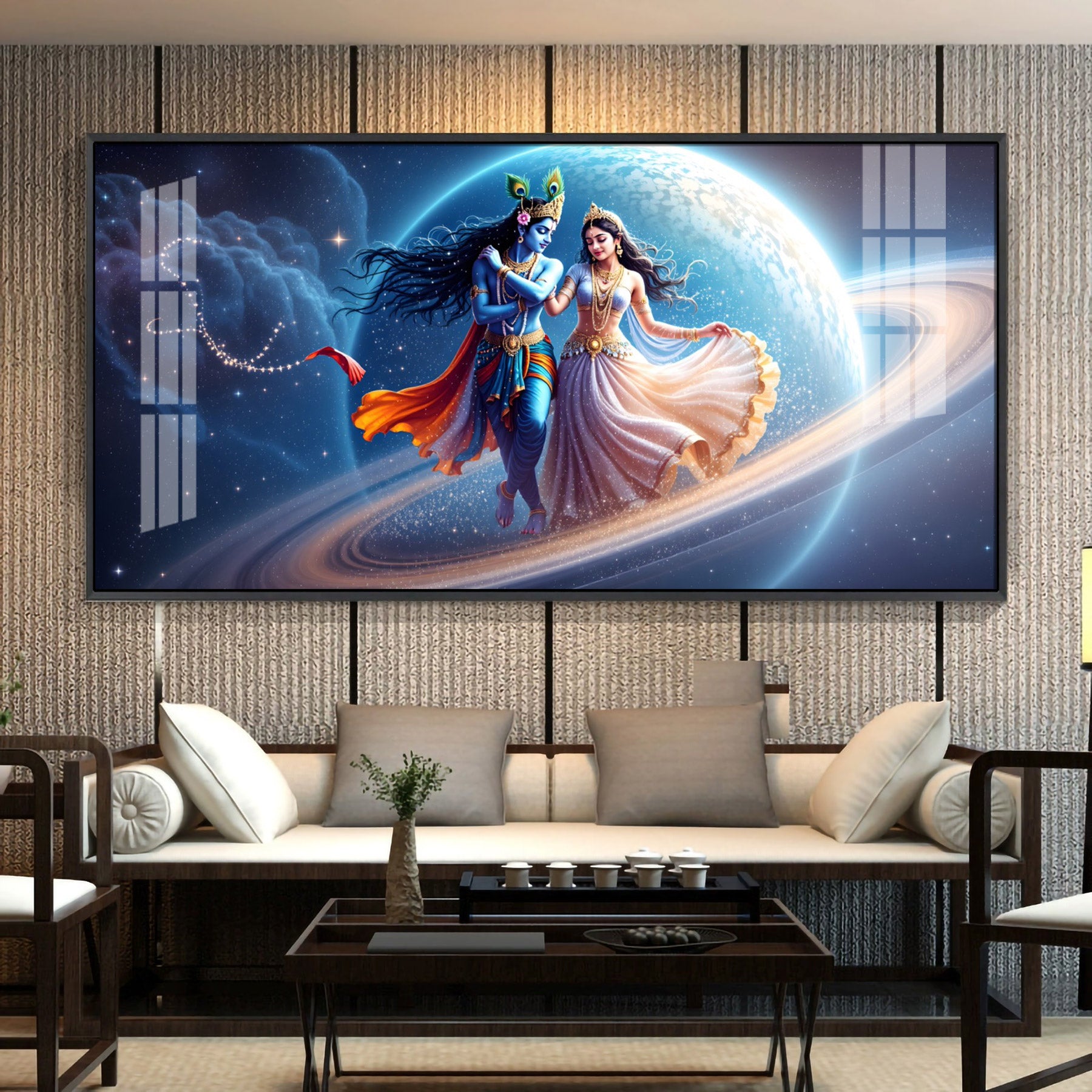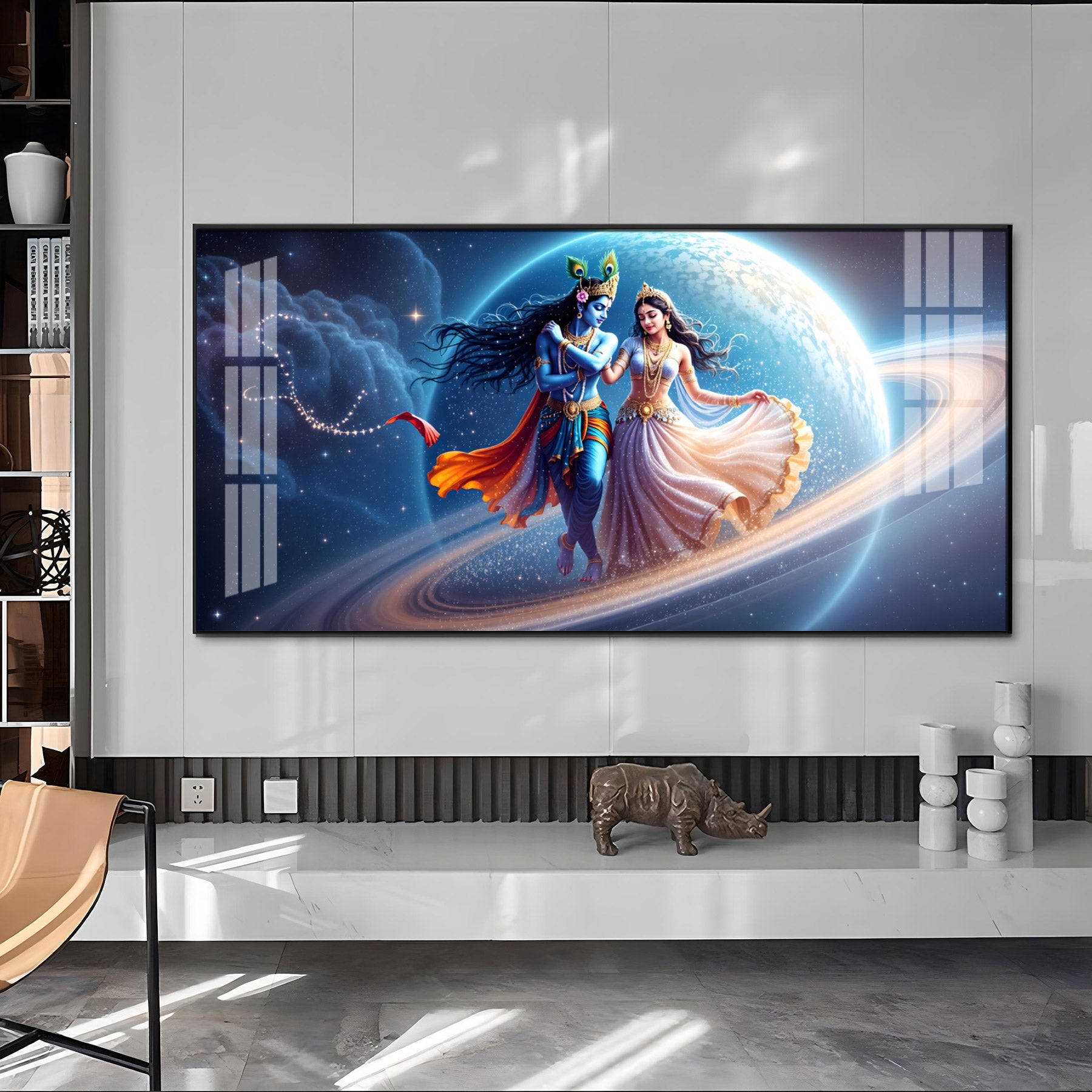Divine Dance Of Shri Krishna And Radha Premium Acrylic Horizontal Wall Art